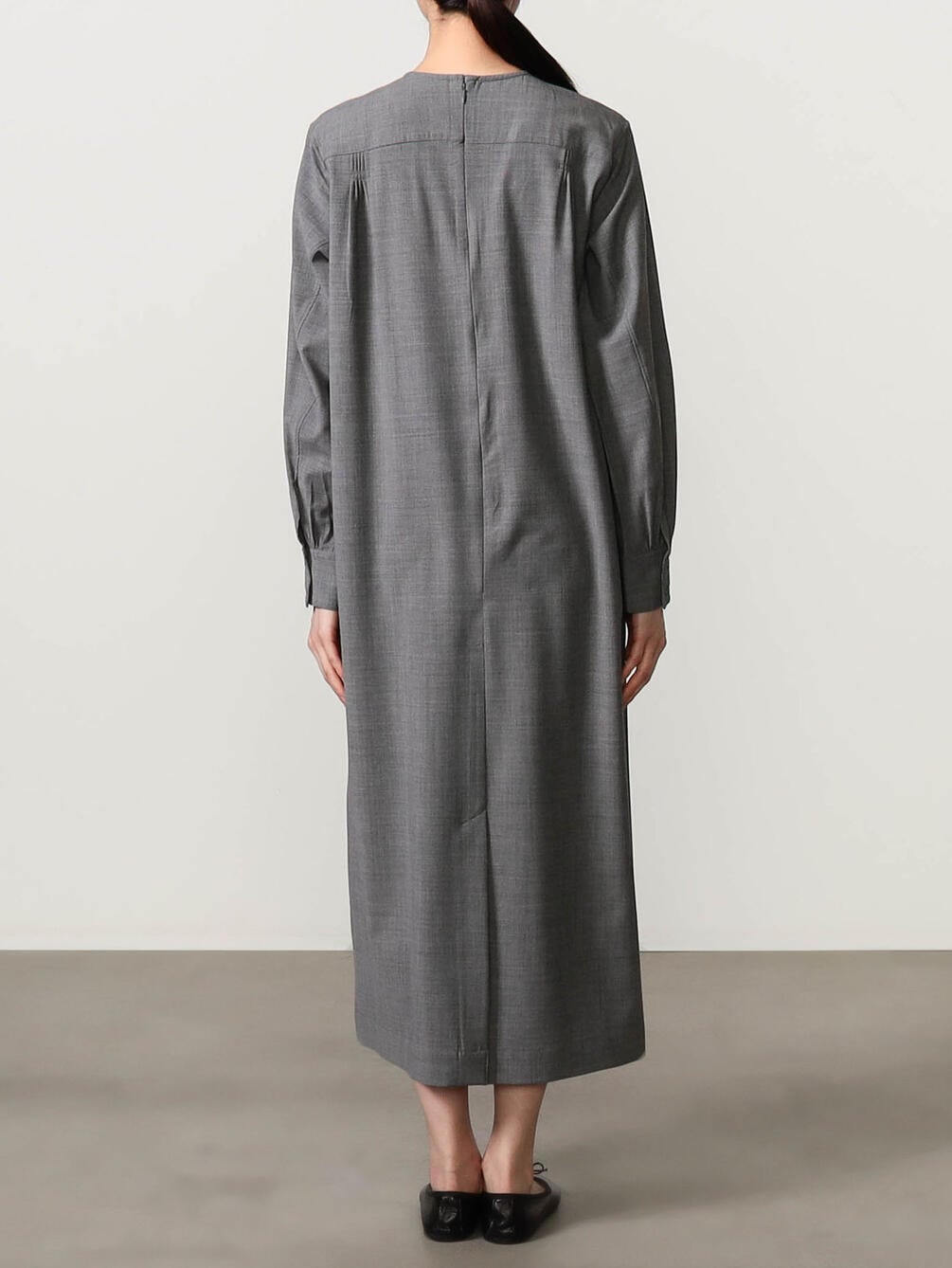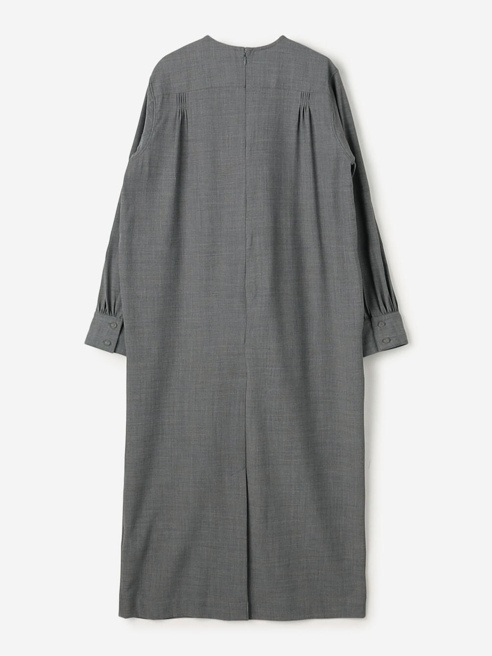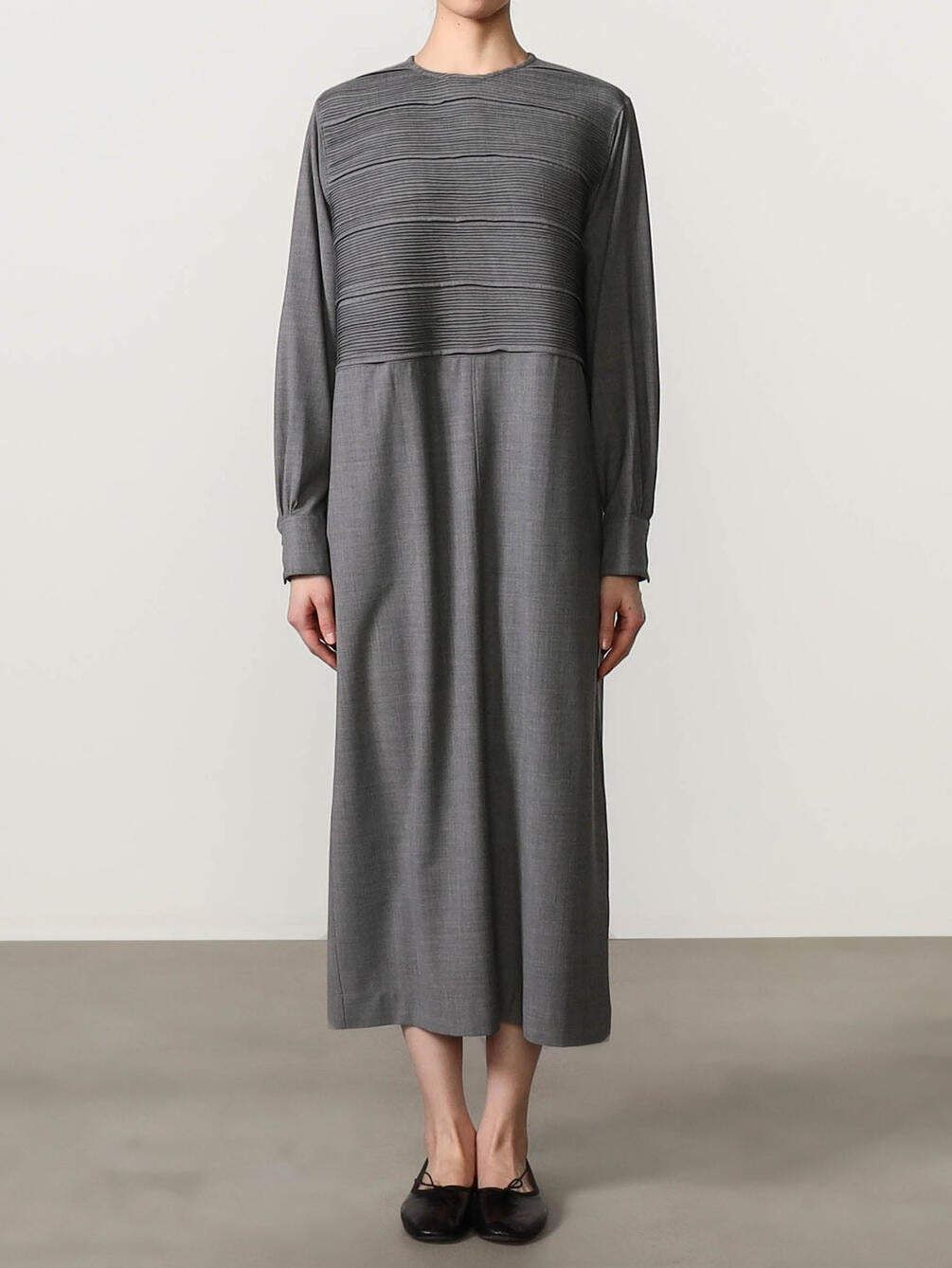 - 胸ヨークに繊細なピンタックを配した長袖ワンピース