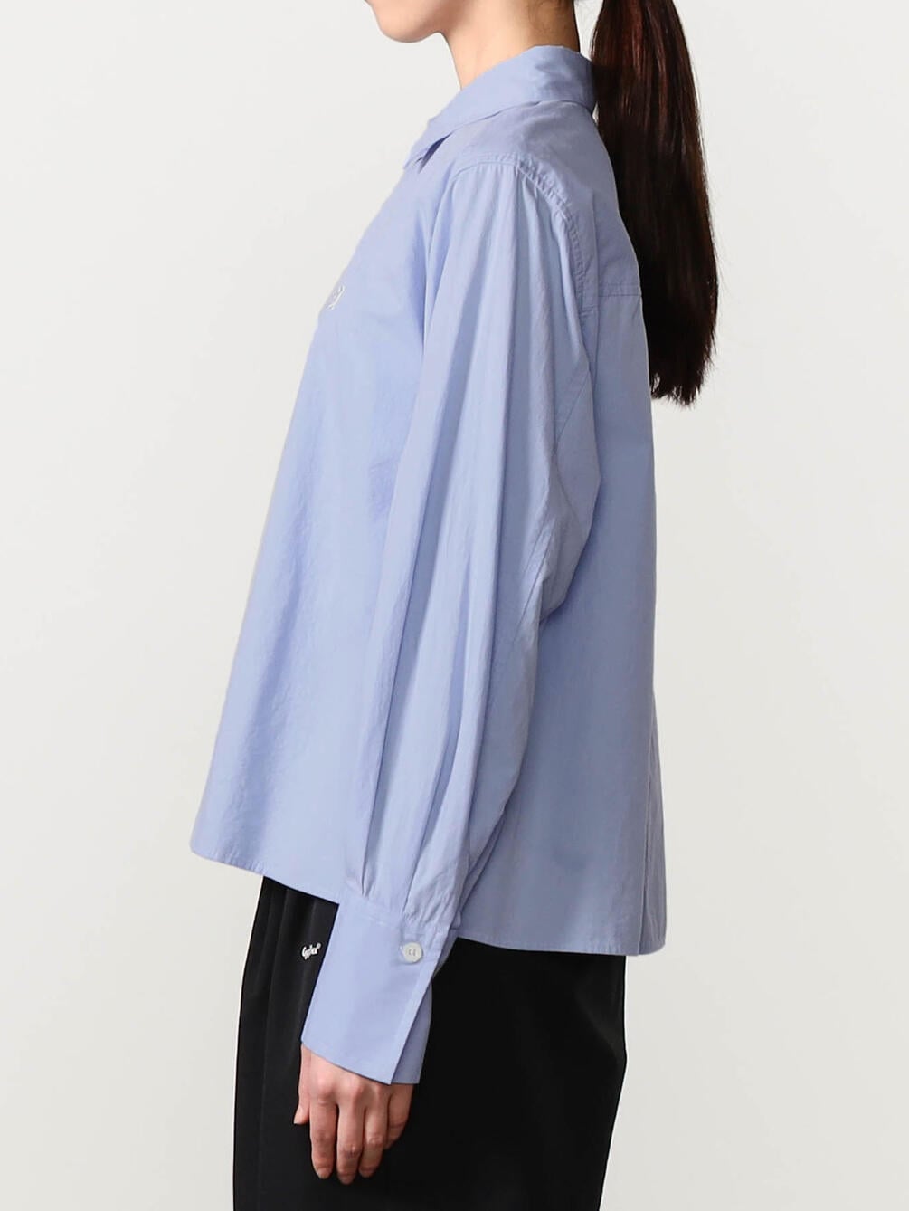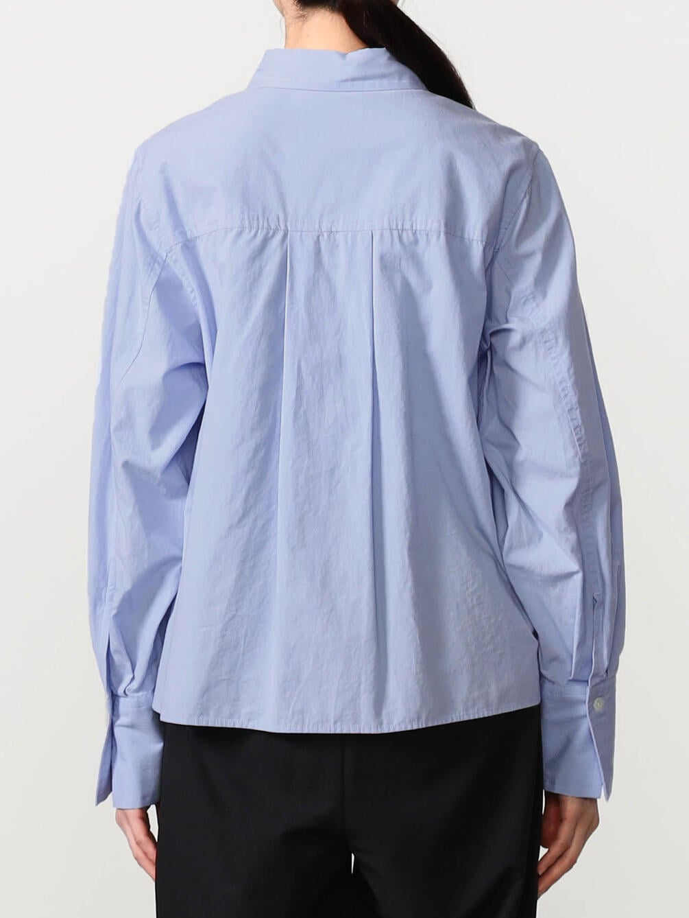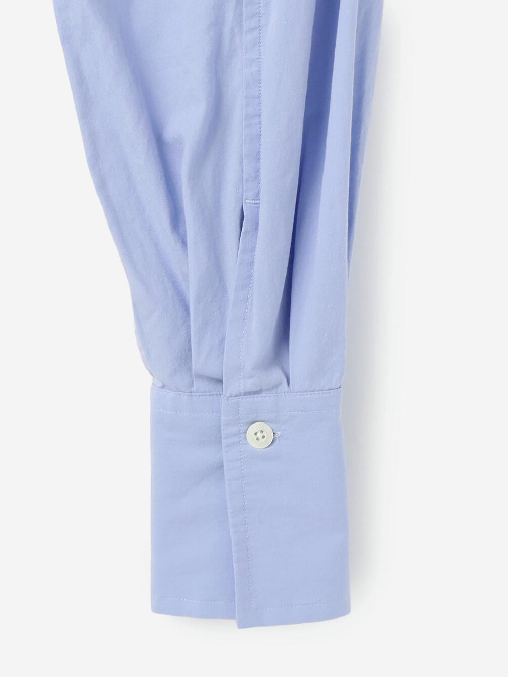 - 長めのカフスにタックを入れたゆとりのあるスリーブ