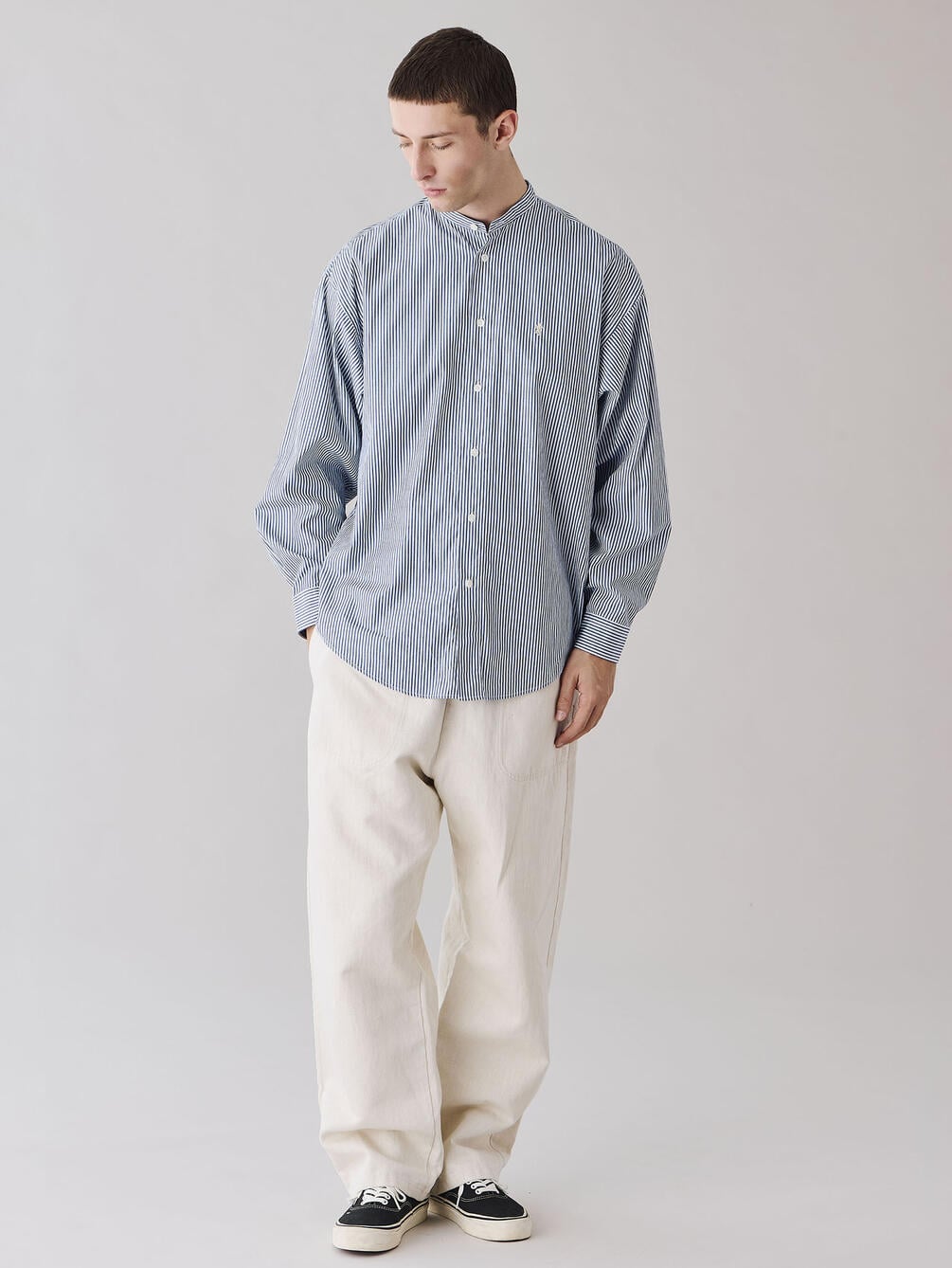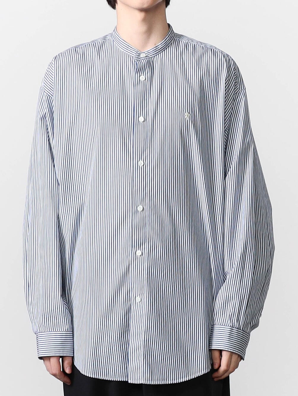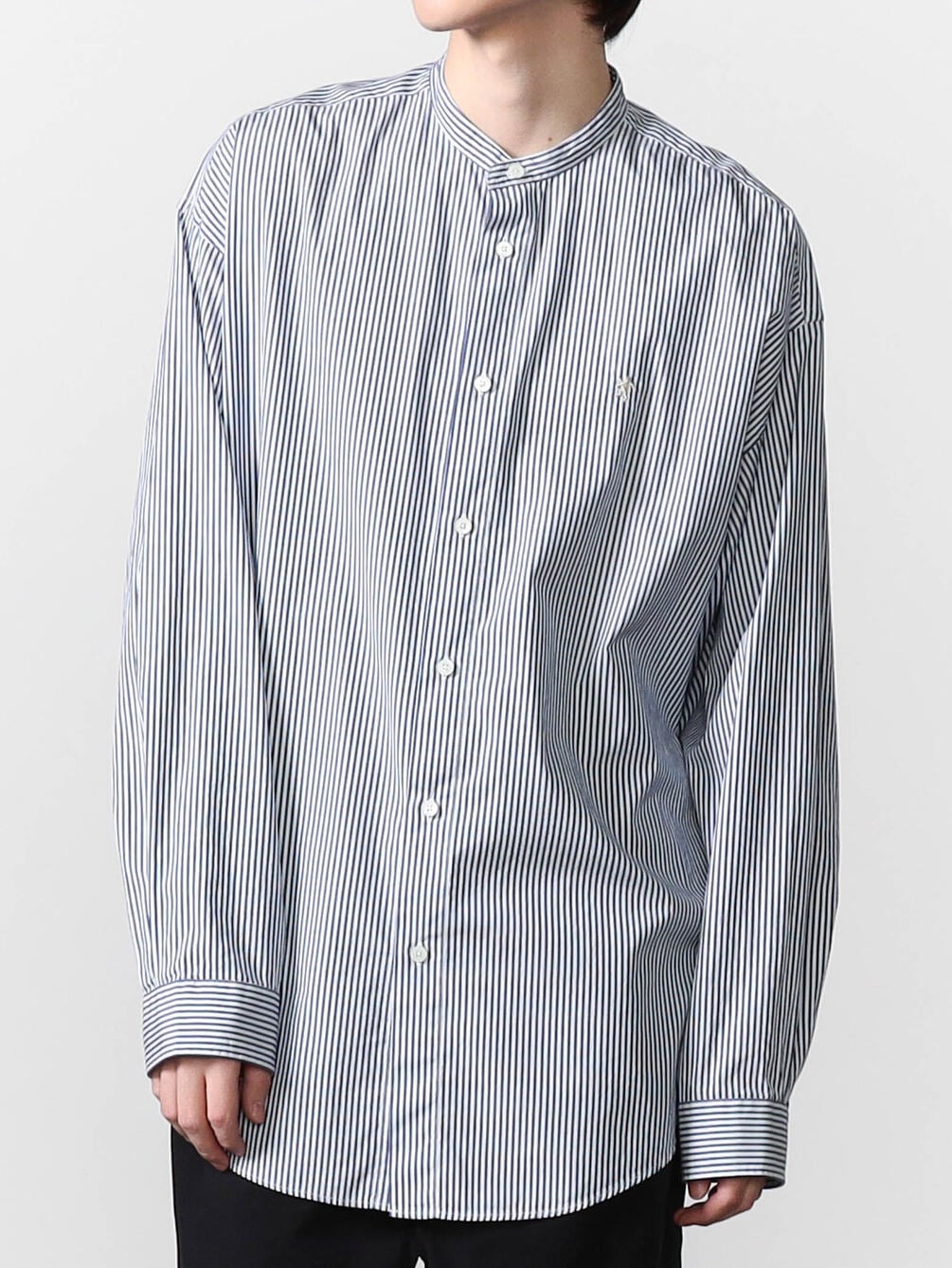 - シンプルなバンドカラーシャツ