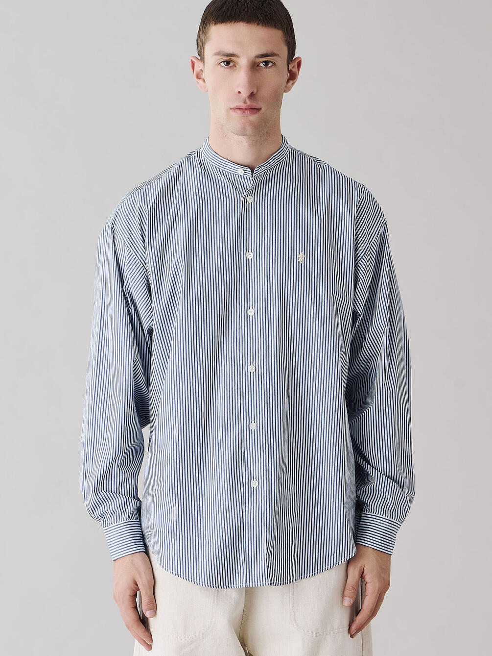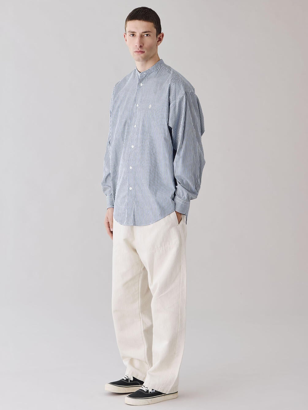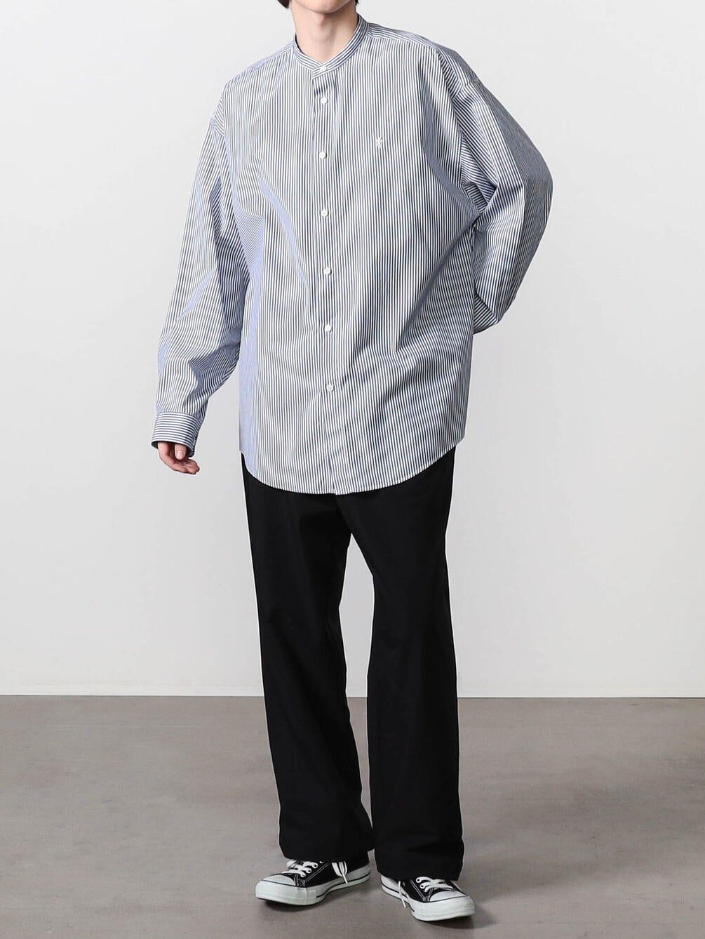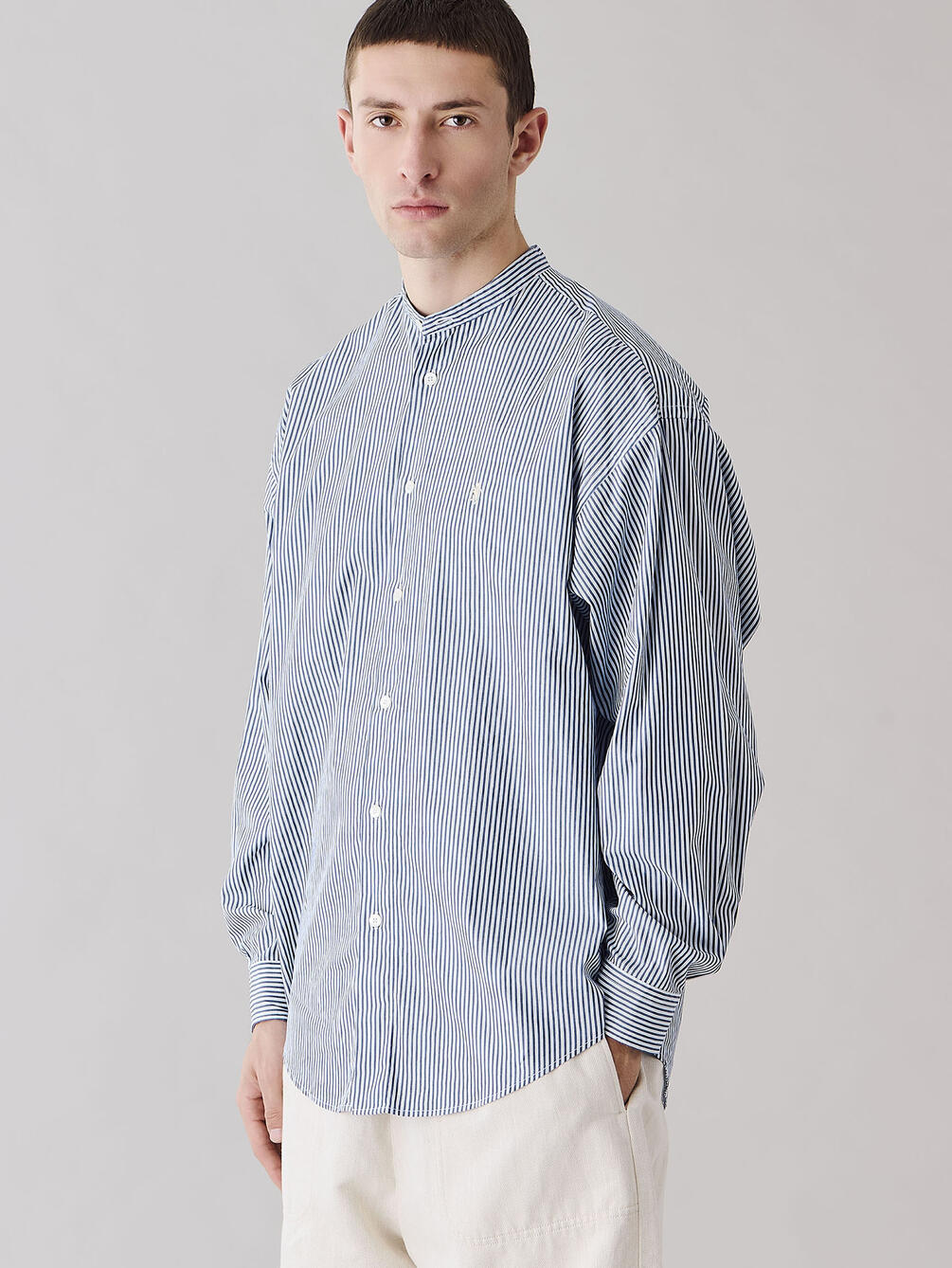 - シンプルなバンドカラーシャツ