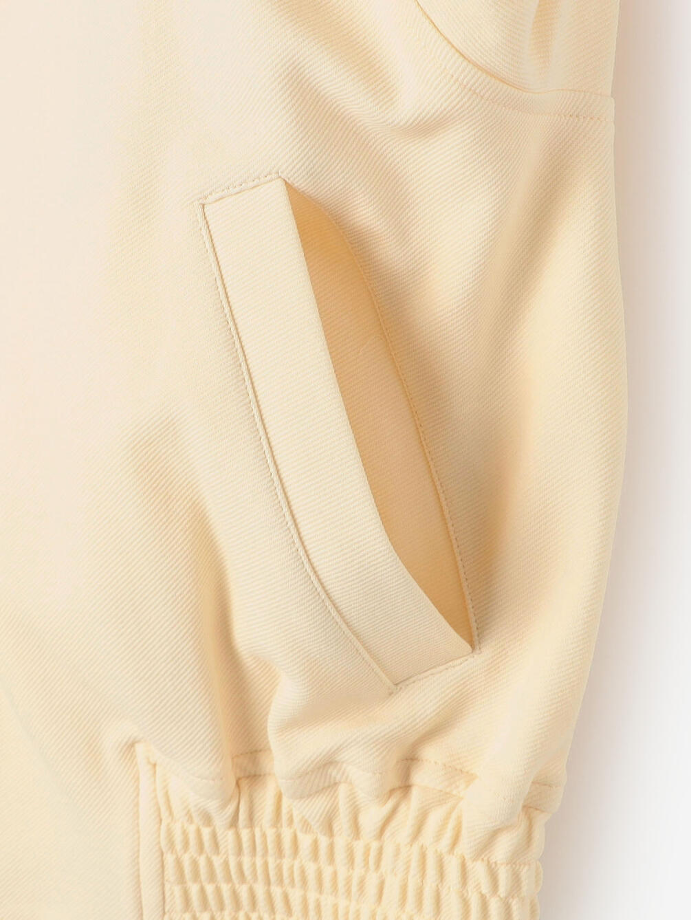 - シャーリング使用の袖口と裾
