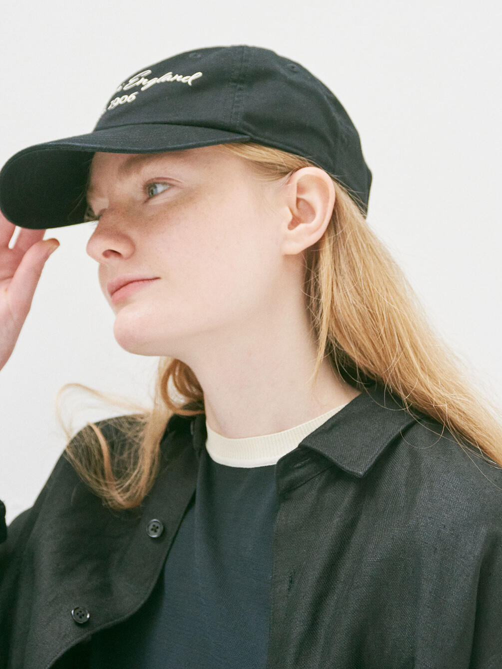 - フロントに筆記体のロゴ刺繍
