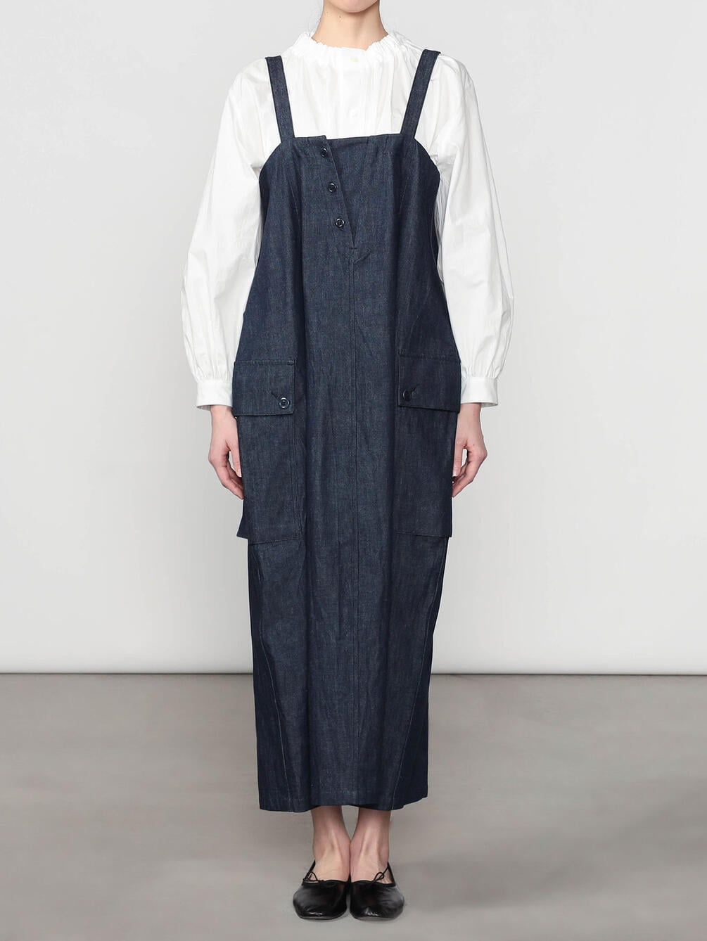 - シンプルなロングサロペットスカート