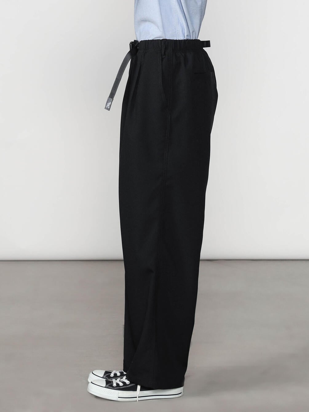 - 片手でサイズ調整ができるウェビングベルト付きのゴムウエスト