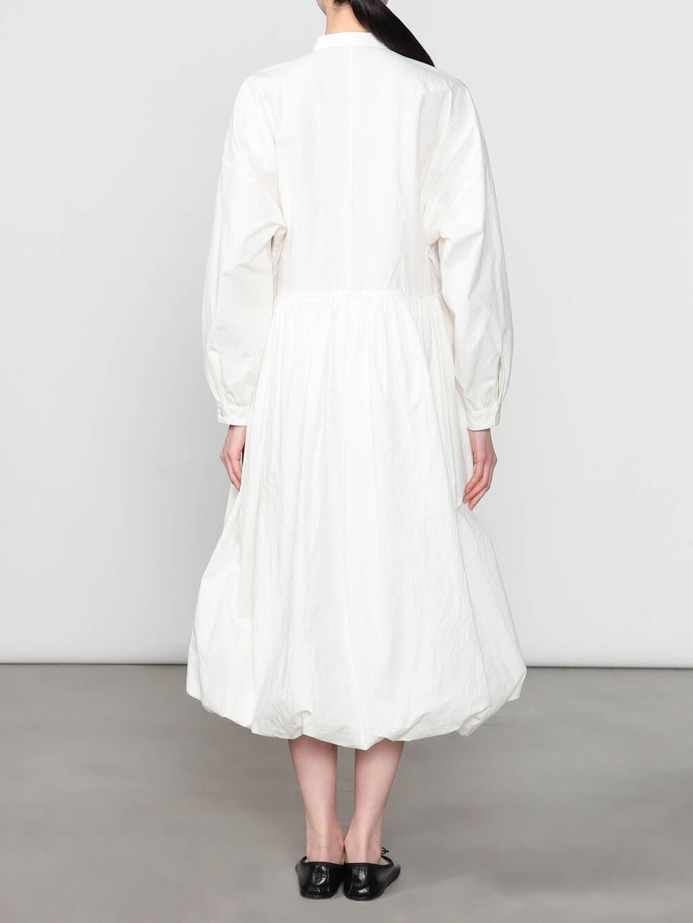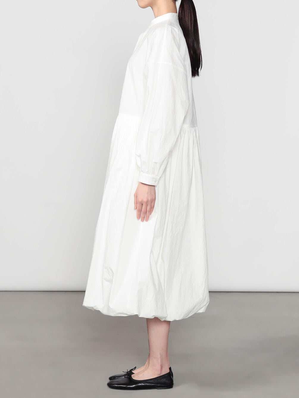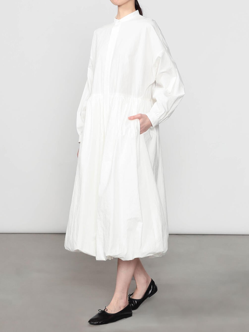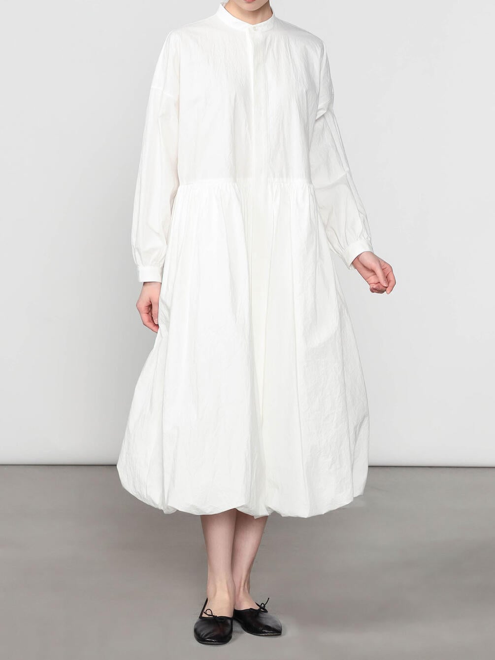 - バンドカラー長袖ロングワンピース