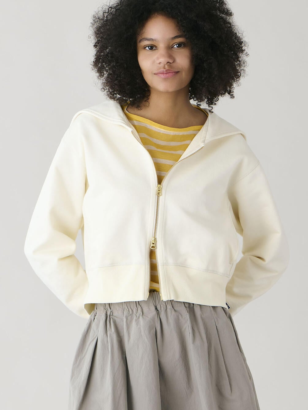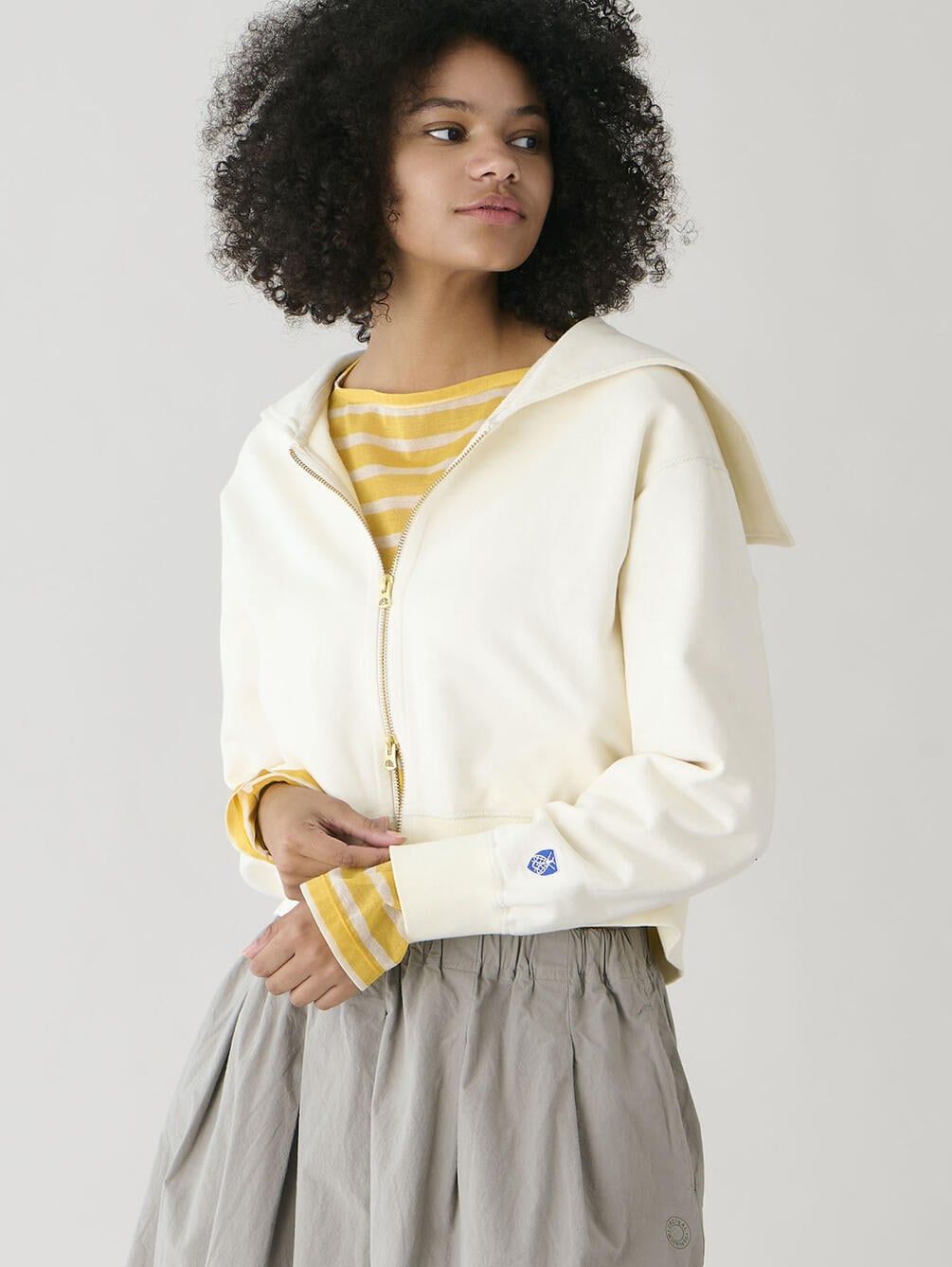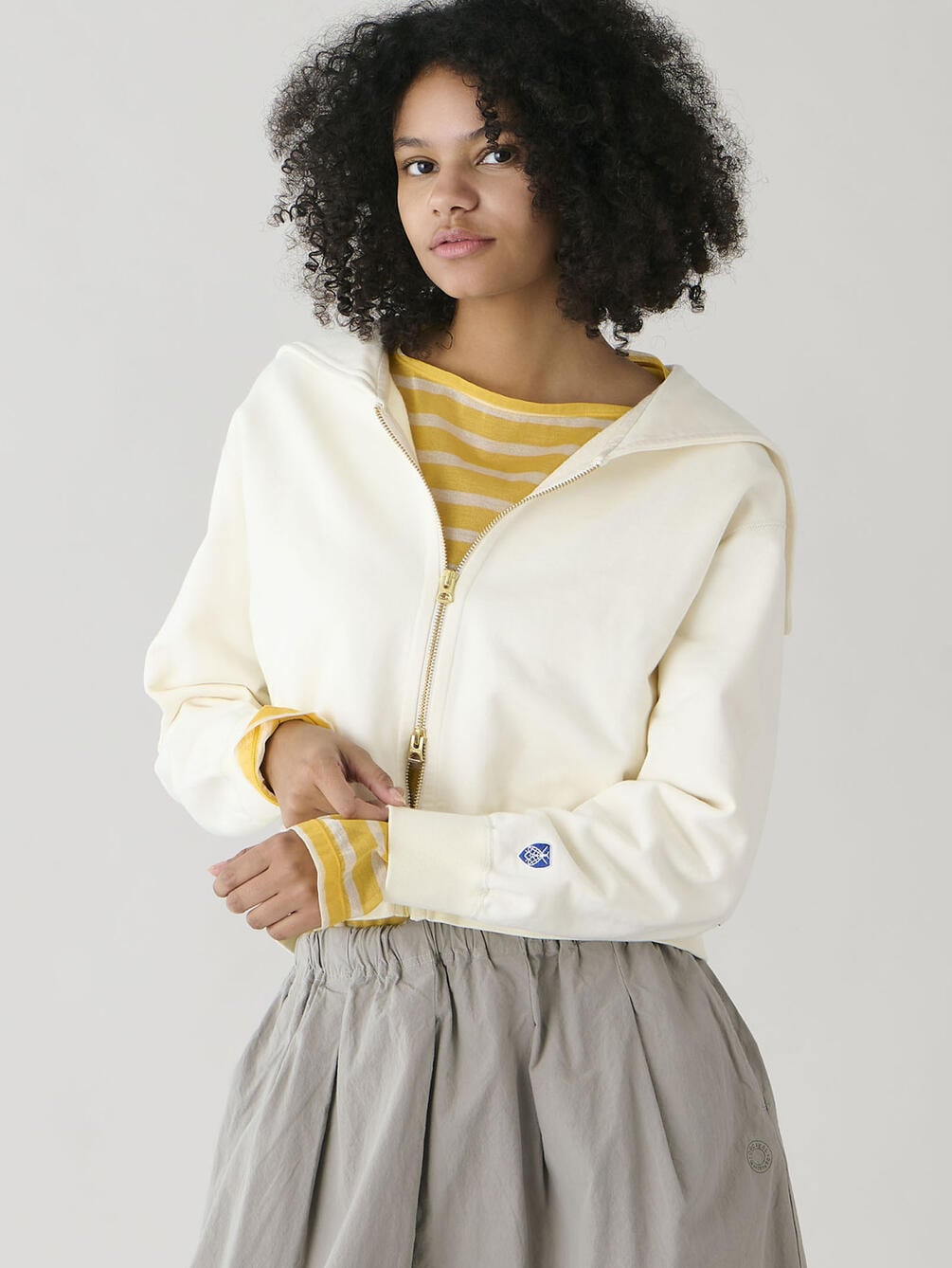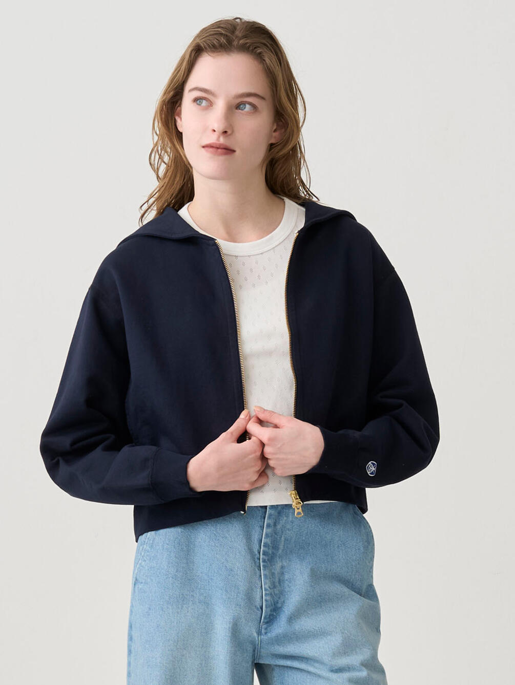 - セーラーカラーのダブルジップパーカー