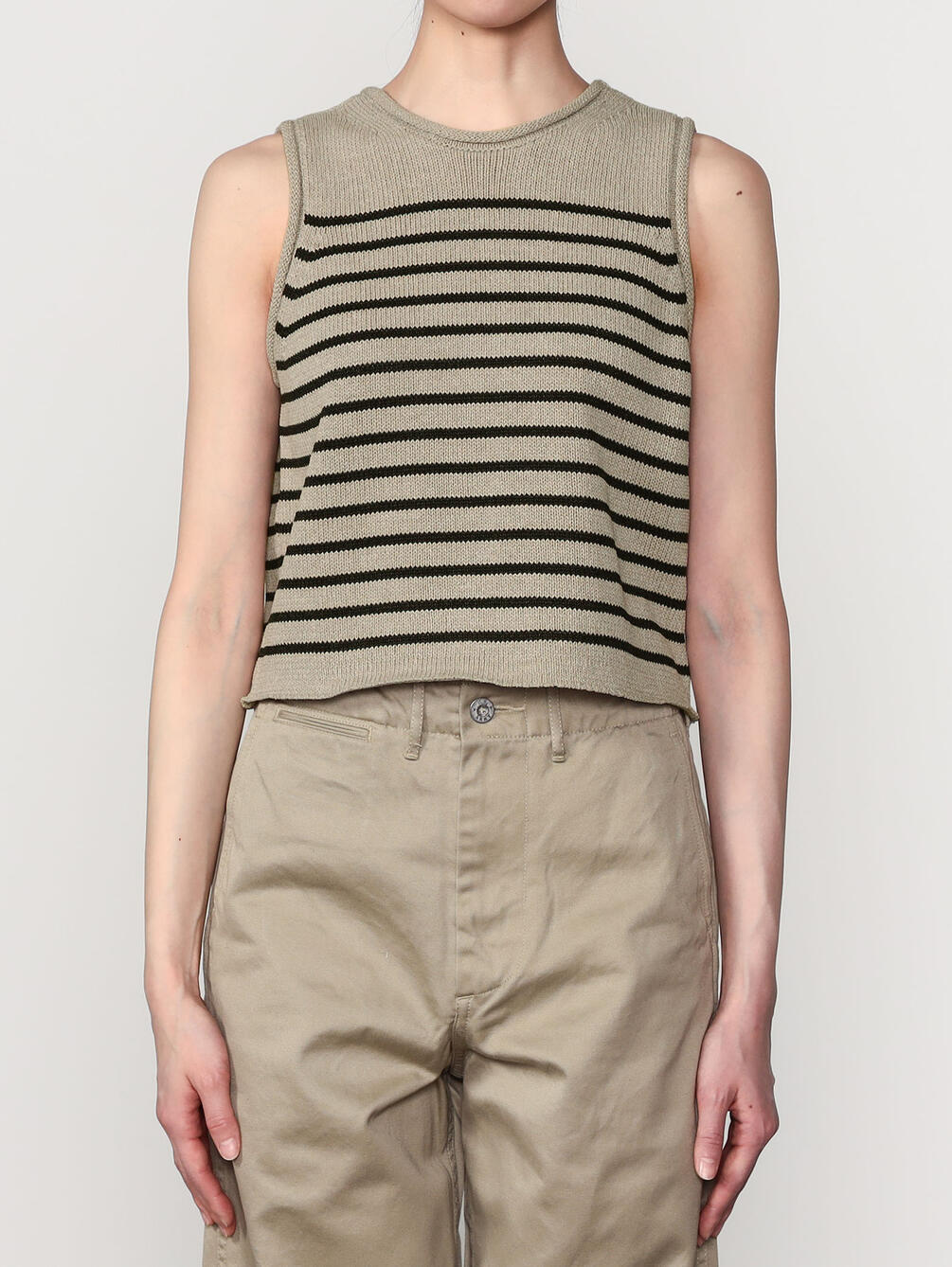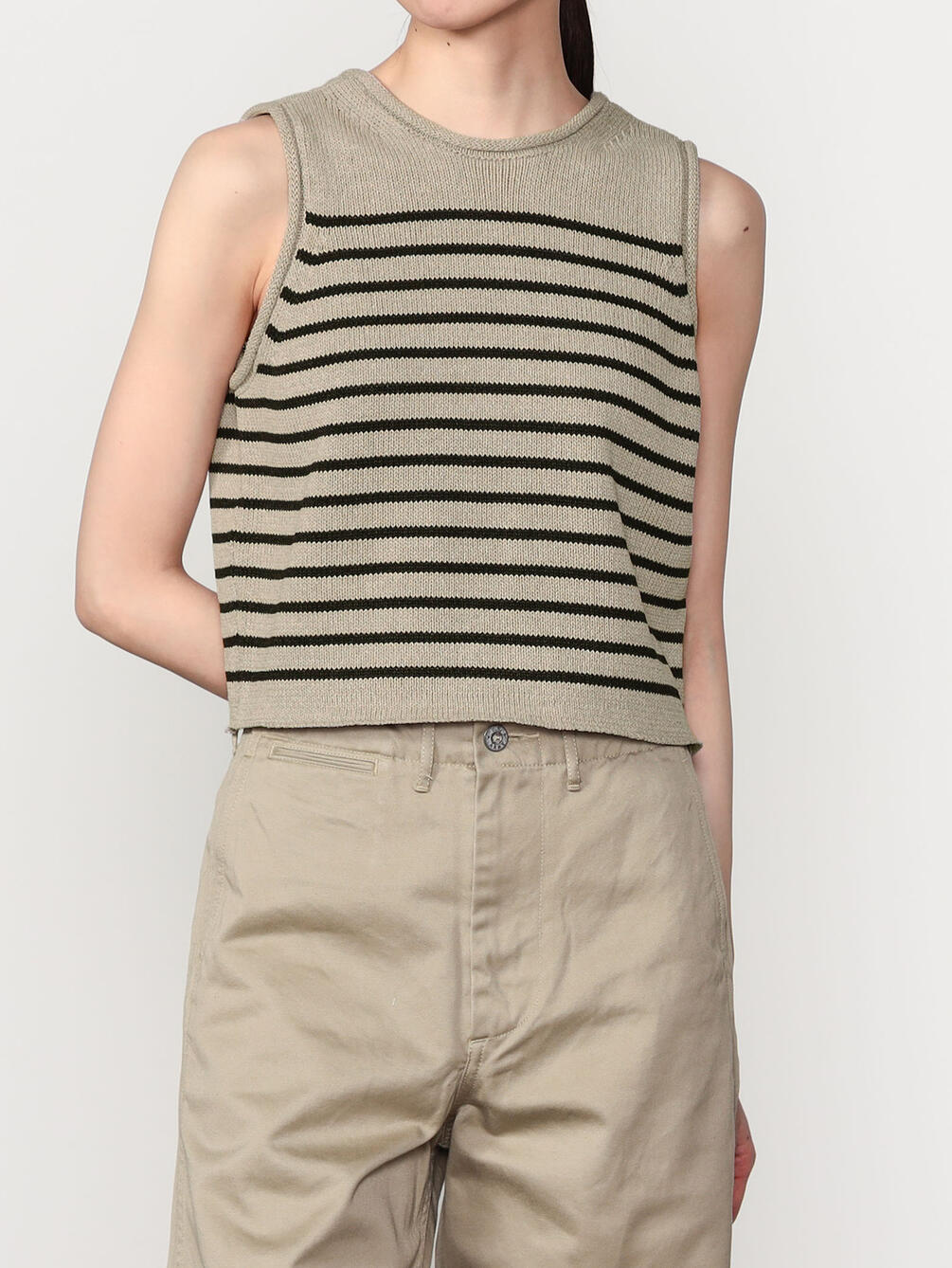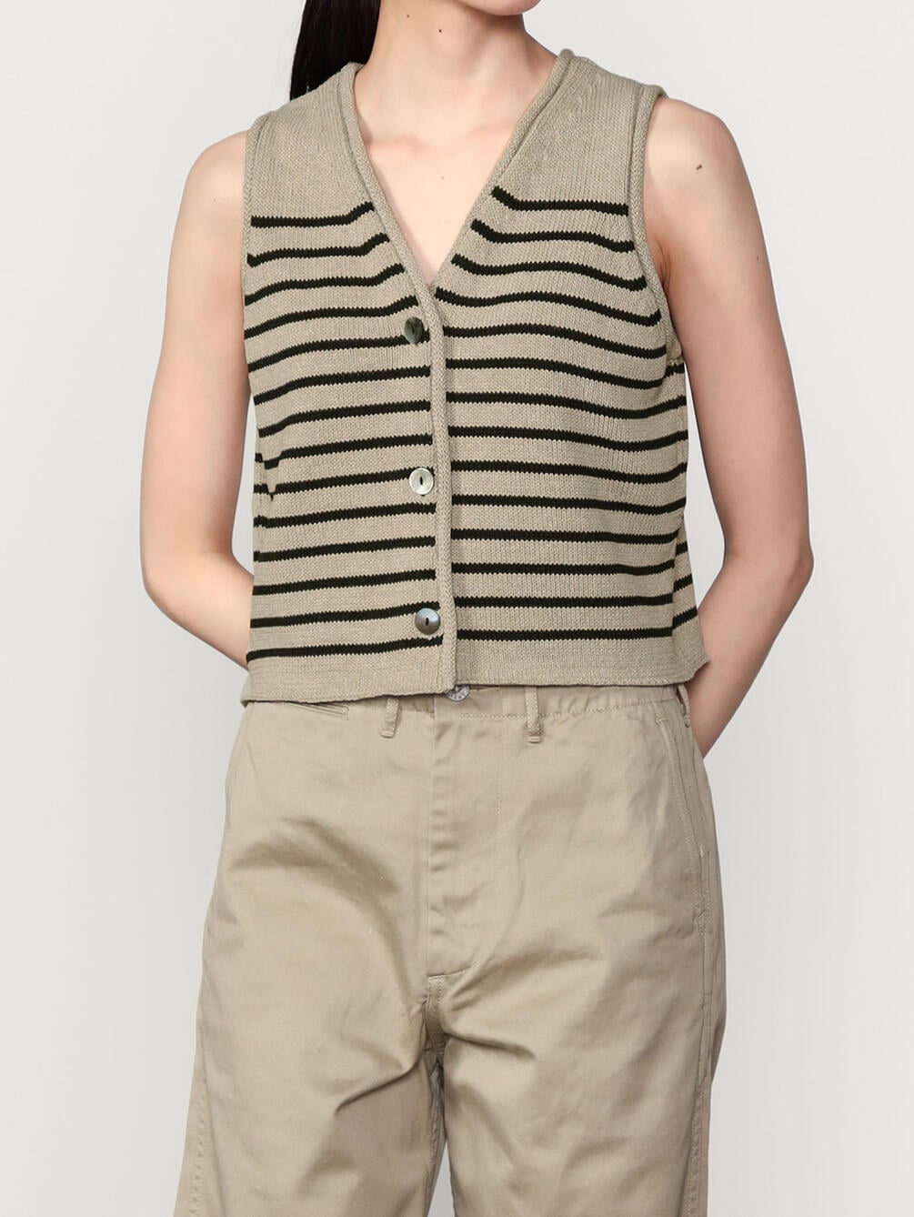 - ミニマルなデザインのニットベスト