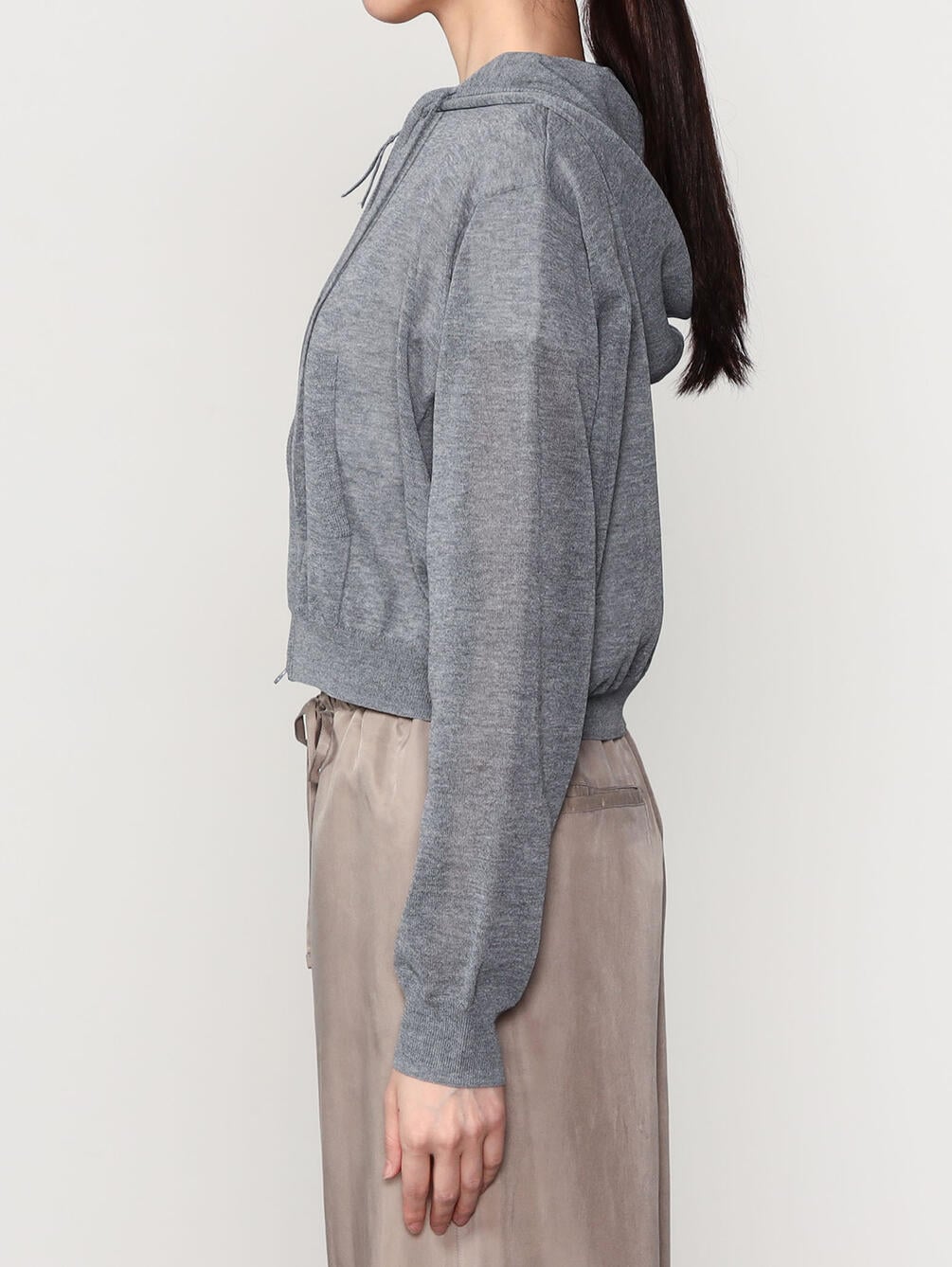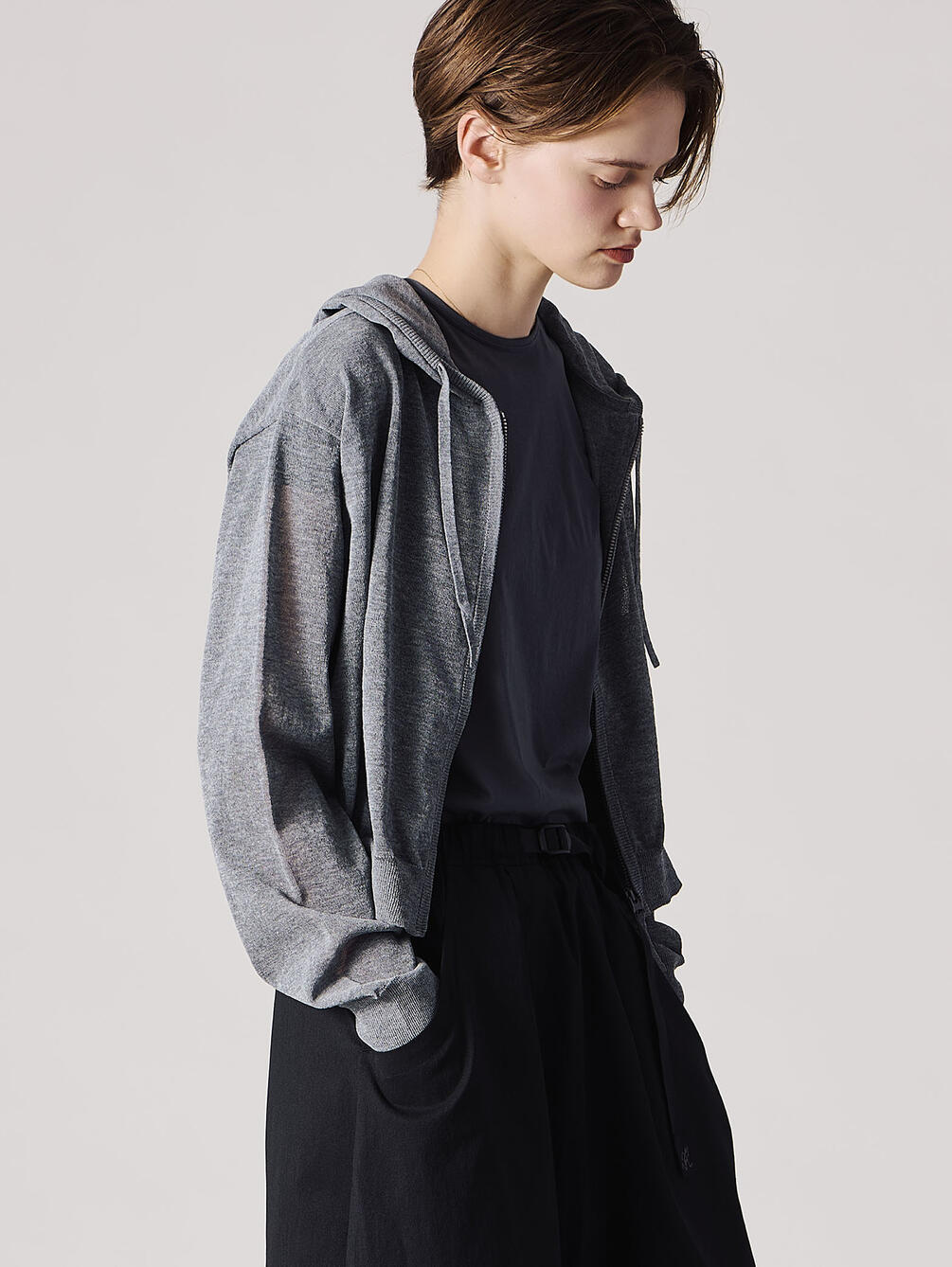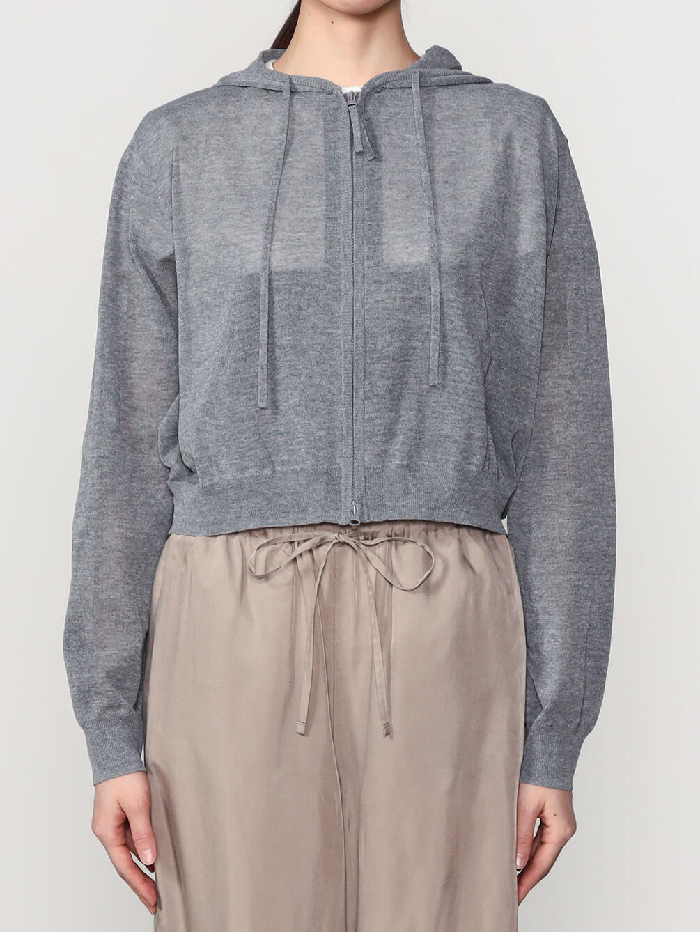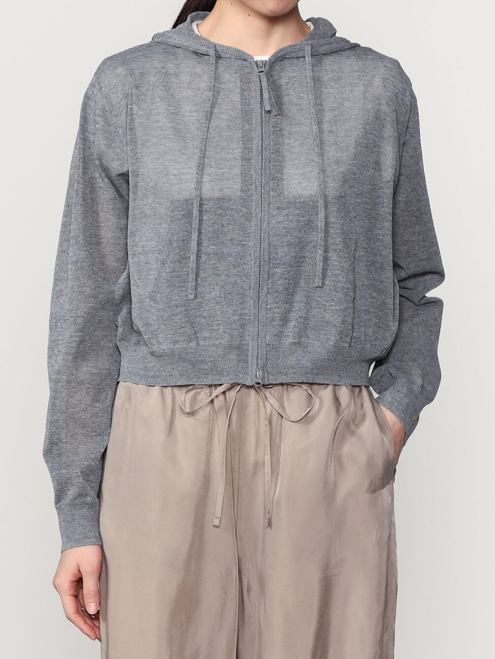 - ナチュラルでシアー感のある長袖ニットパーカー