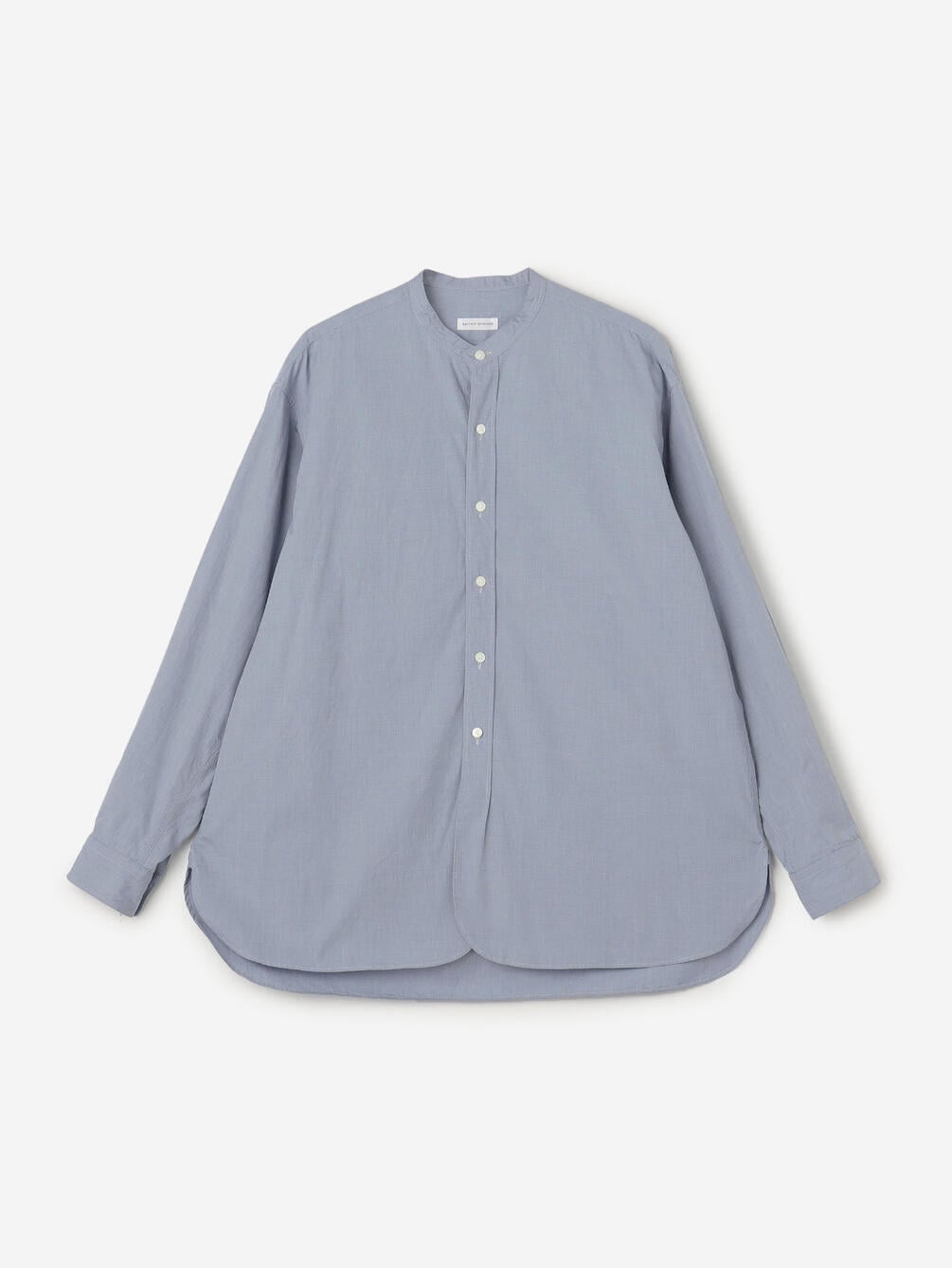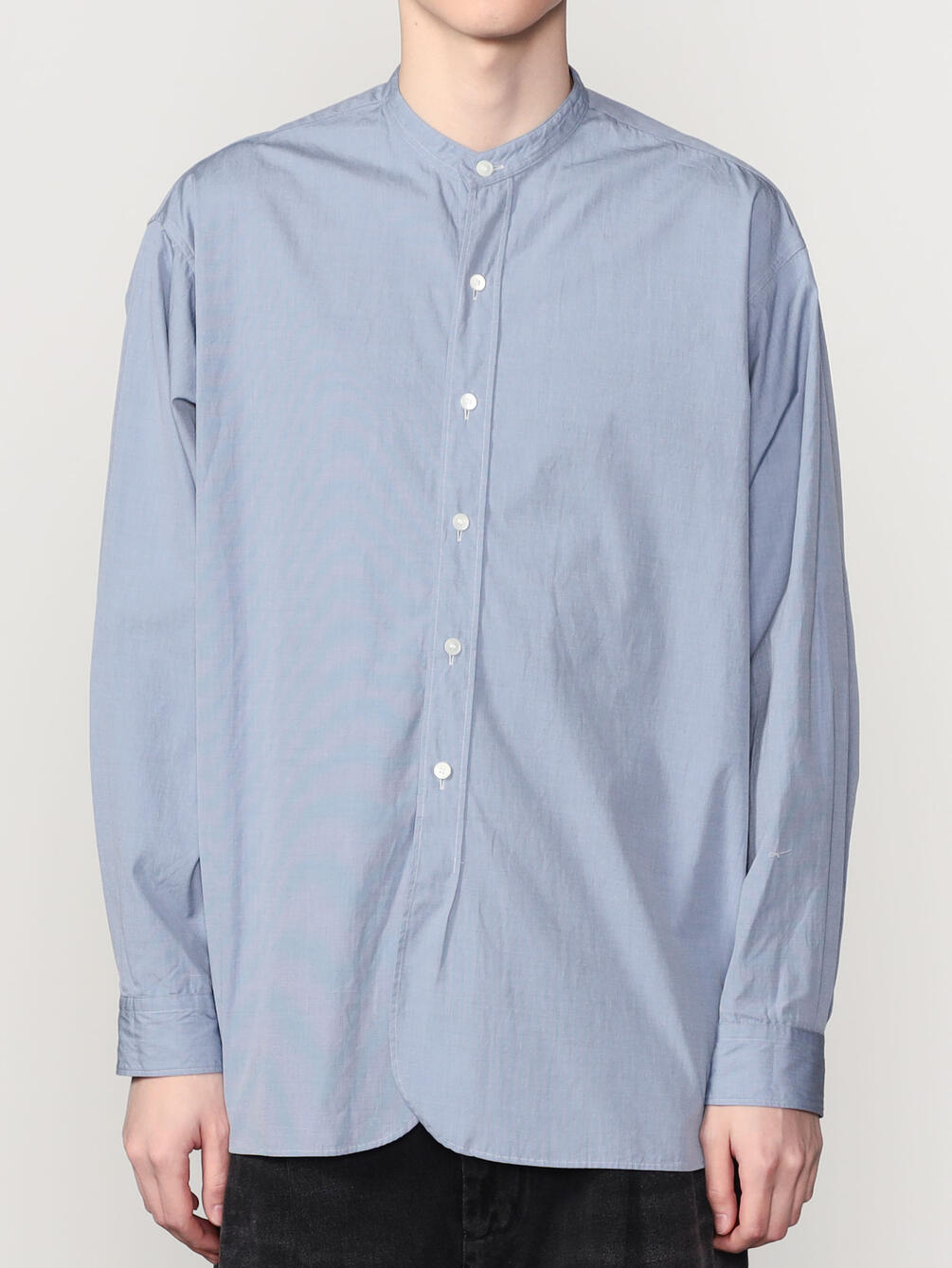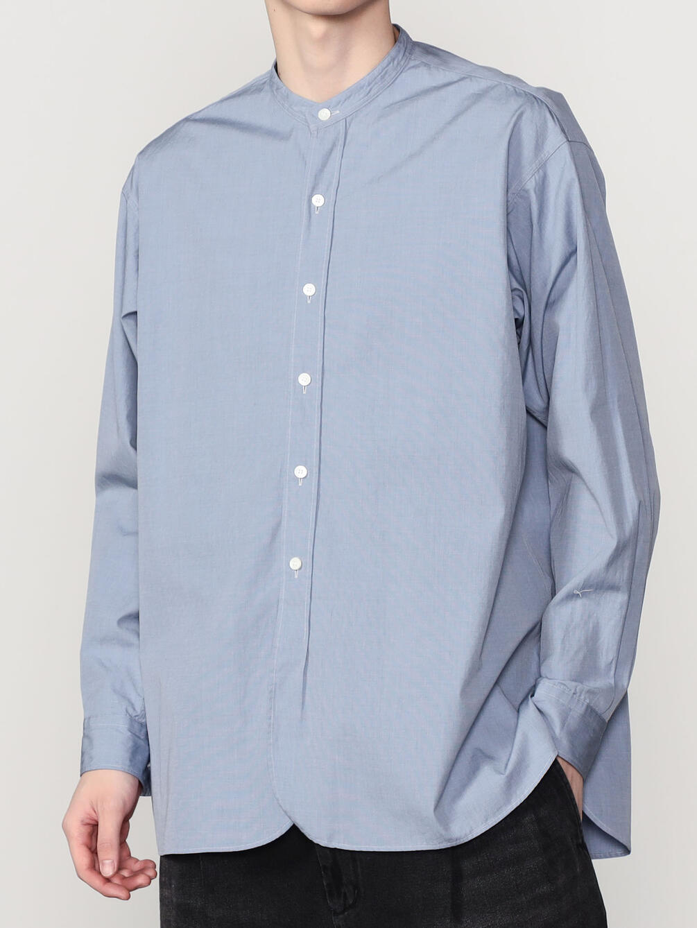 - ミニマルなスタンドカラー長袖シャツ