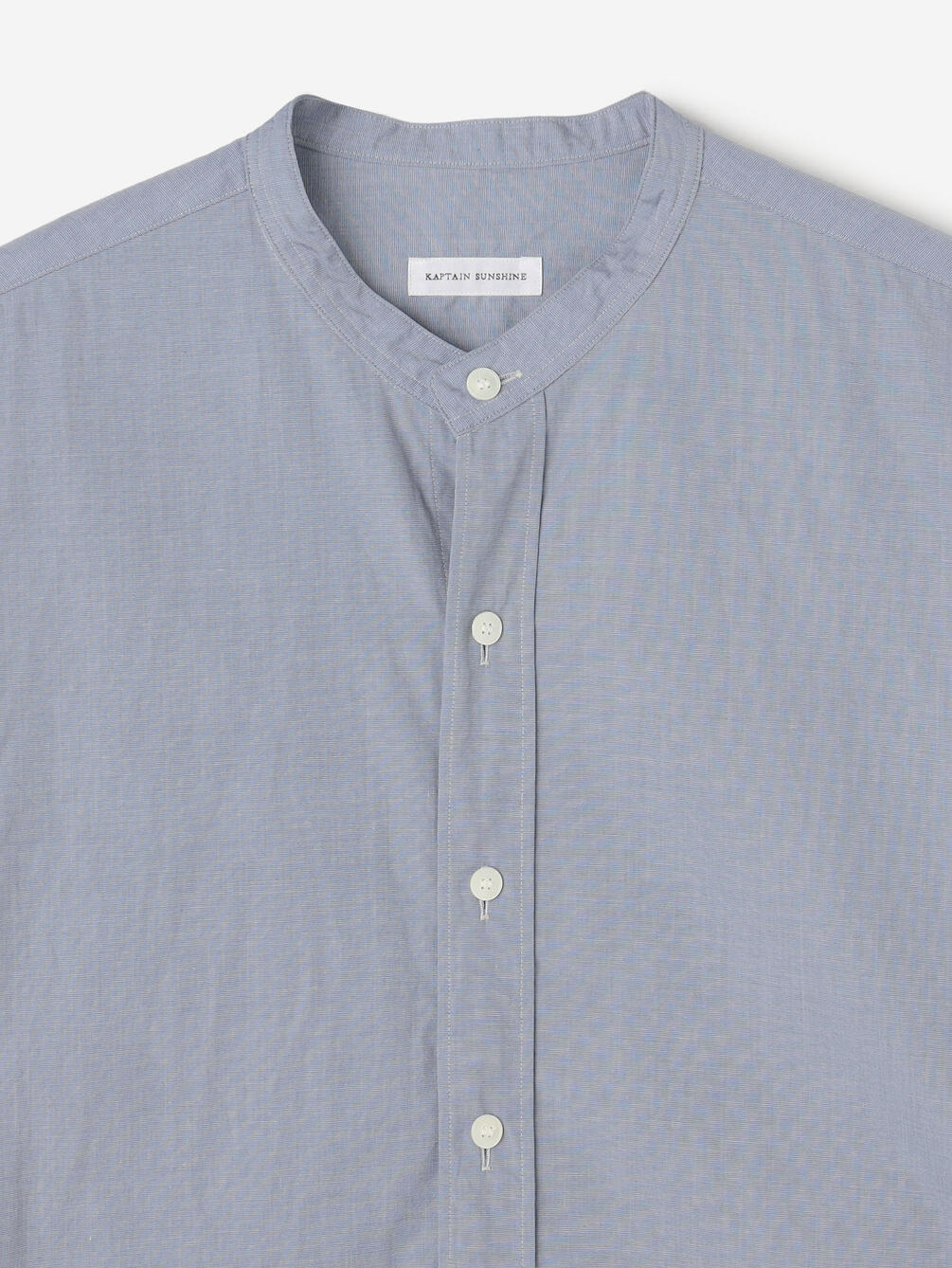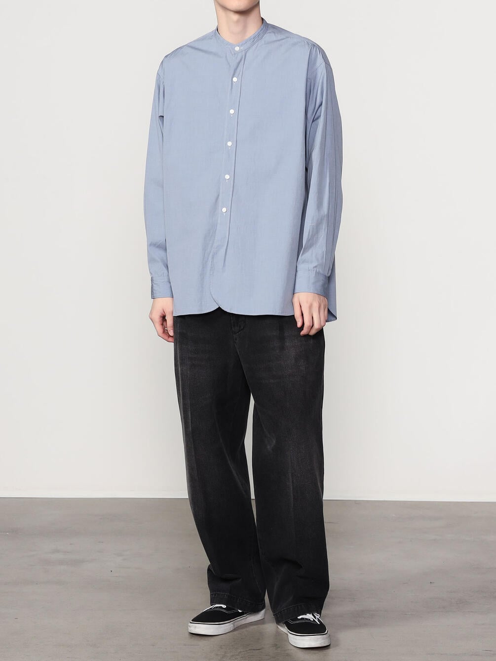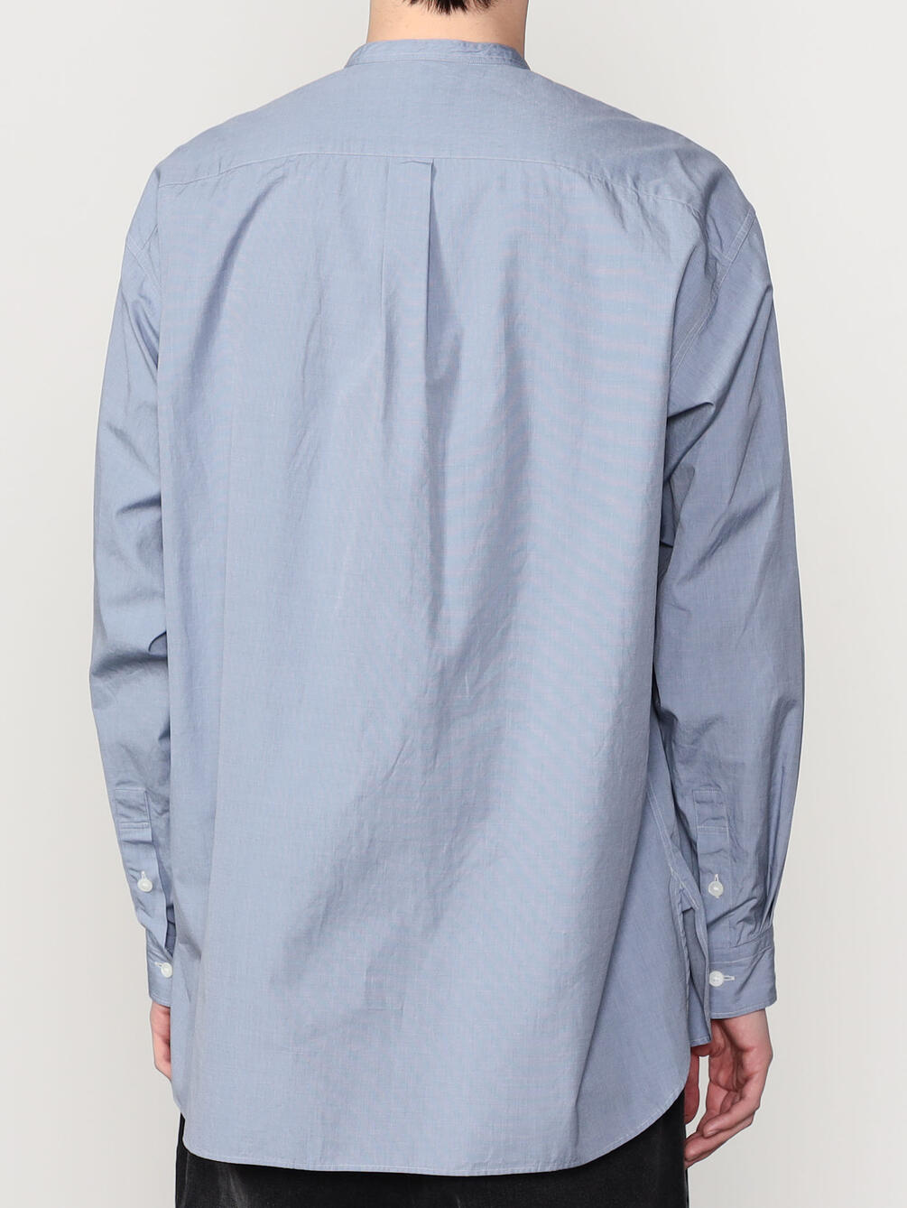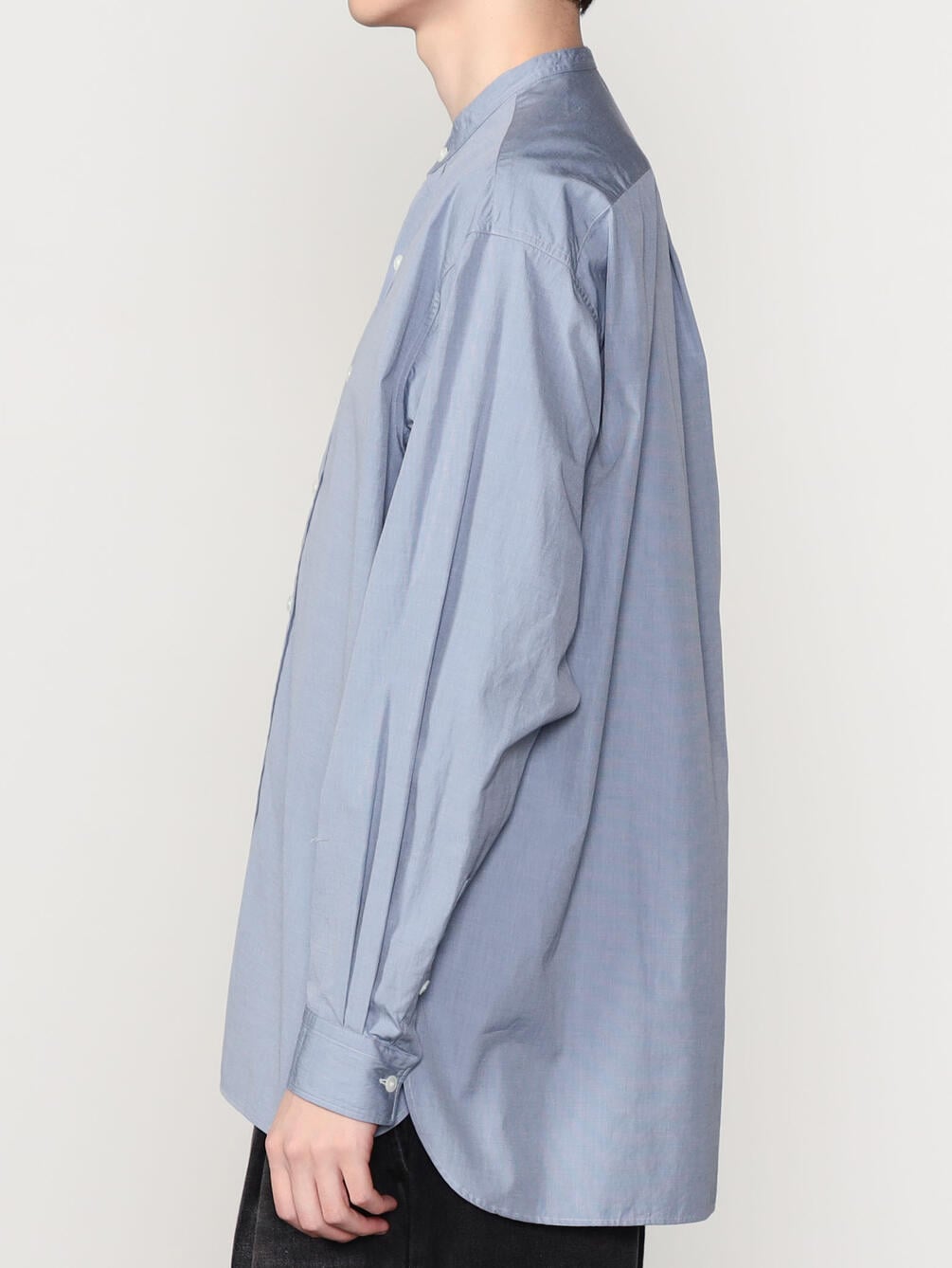 - ミニマルなスタンドカラー長袖シャツ