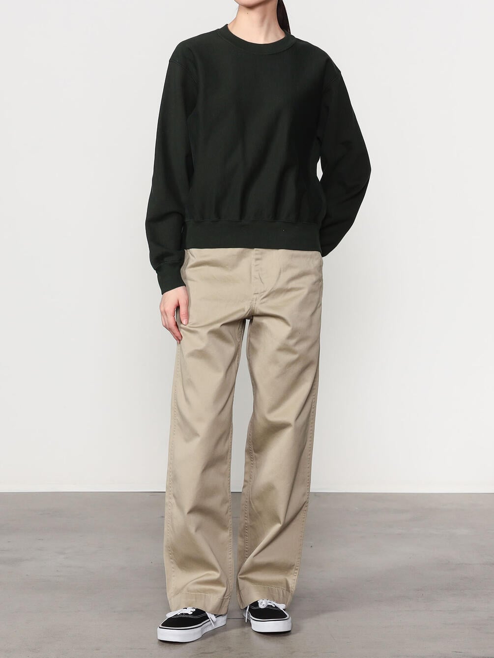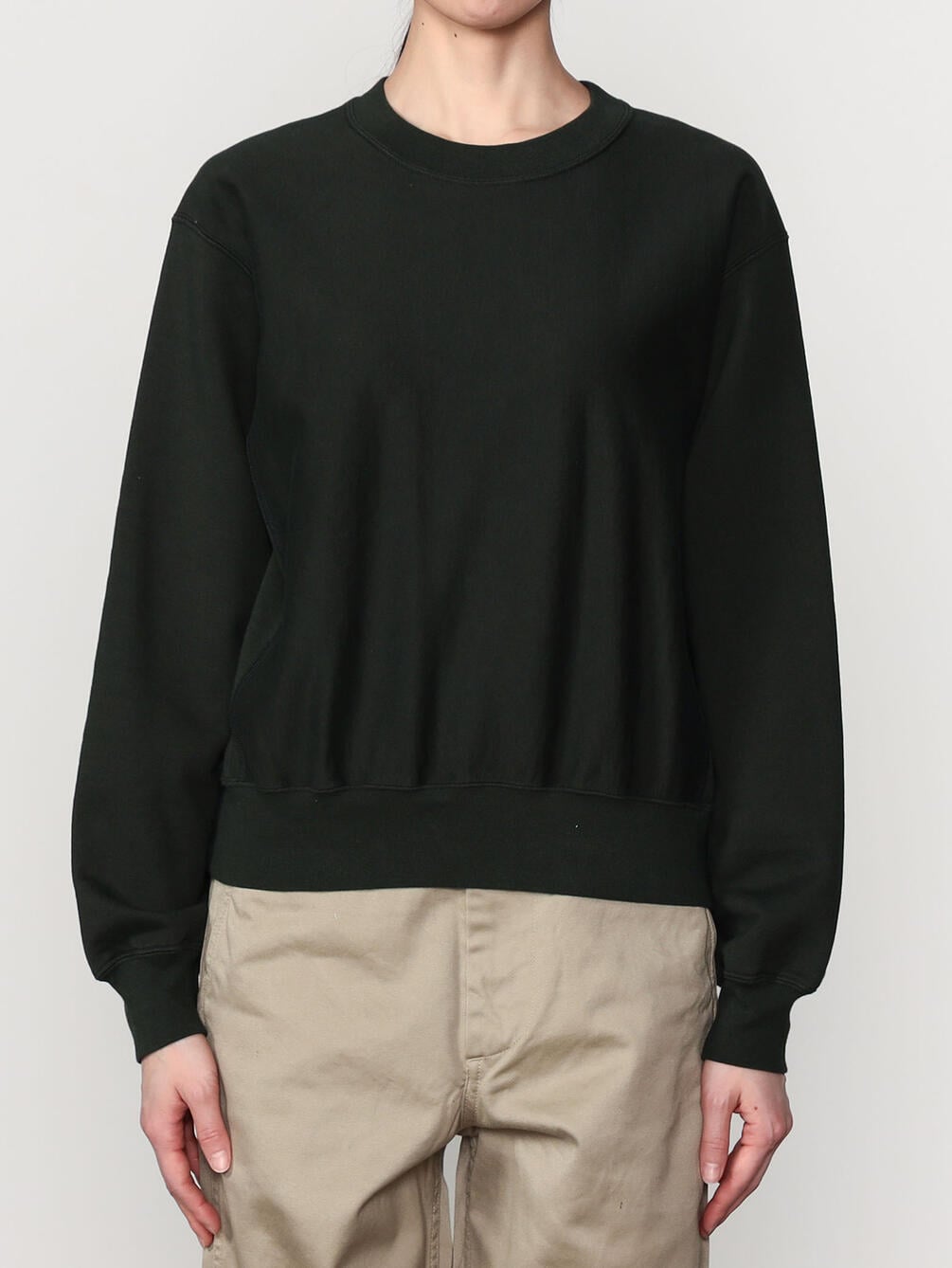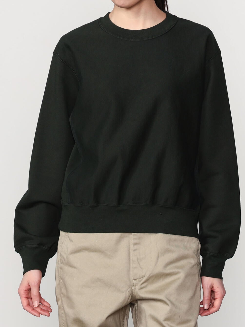 - クルーネックの長袖スウェットプルオーバー