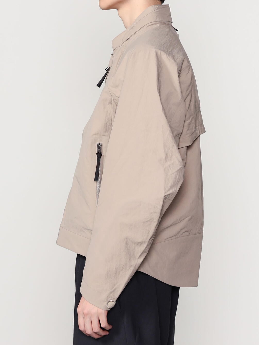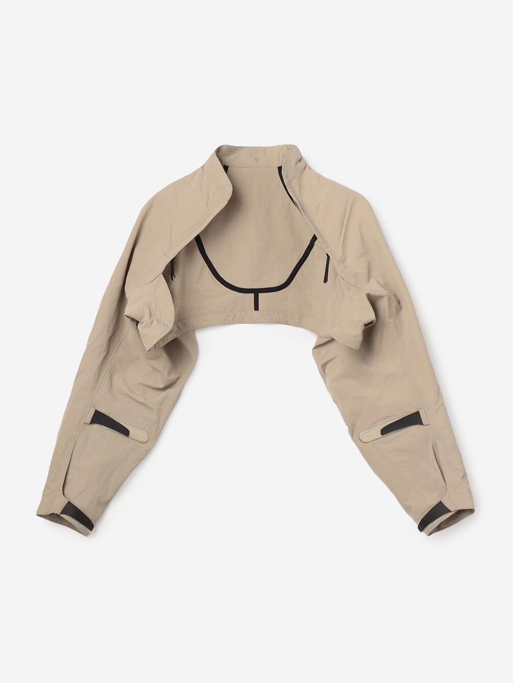 - 構築的なシルエットが特徴的なショート丈のジャケット