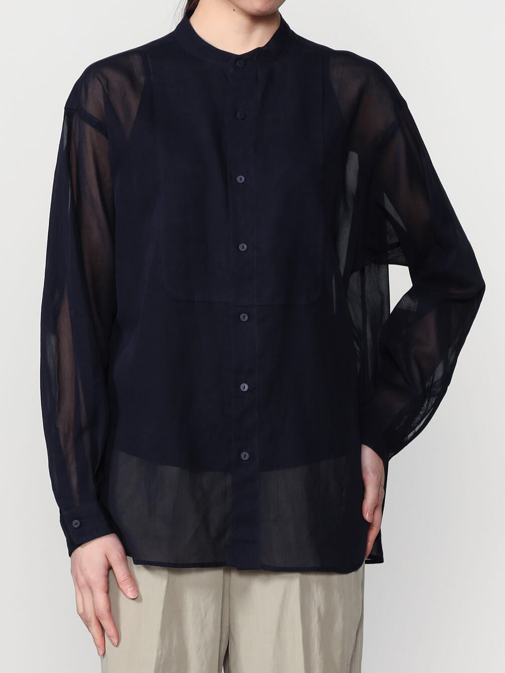 - バンドカラーのブザムシャツ