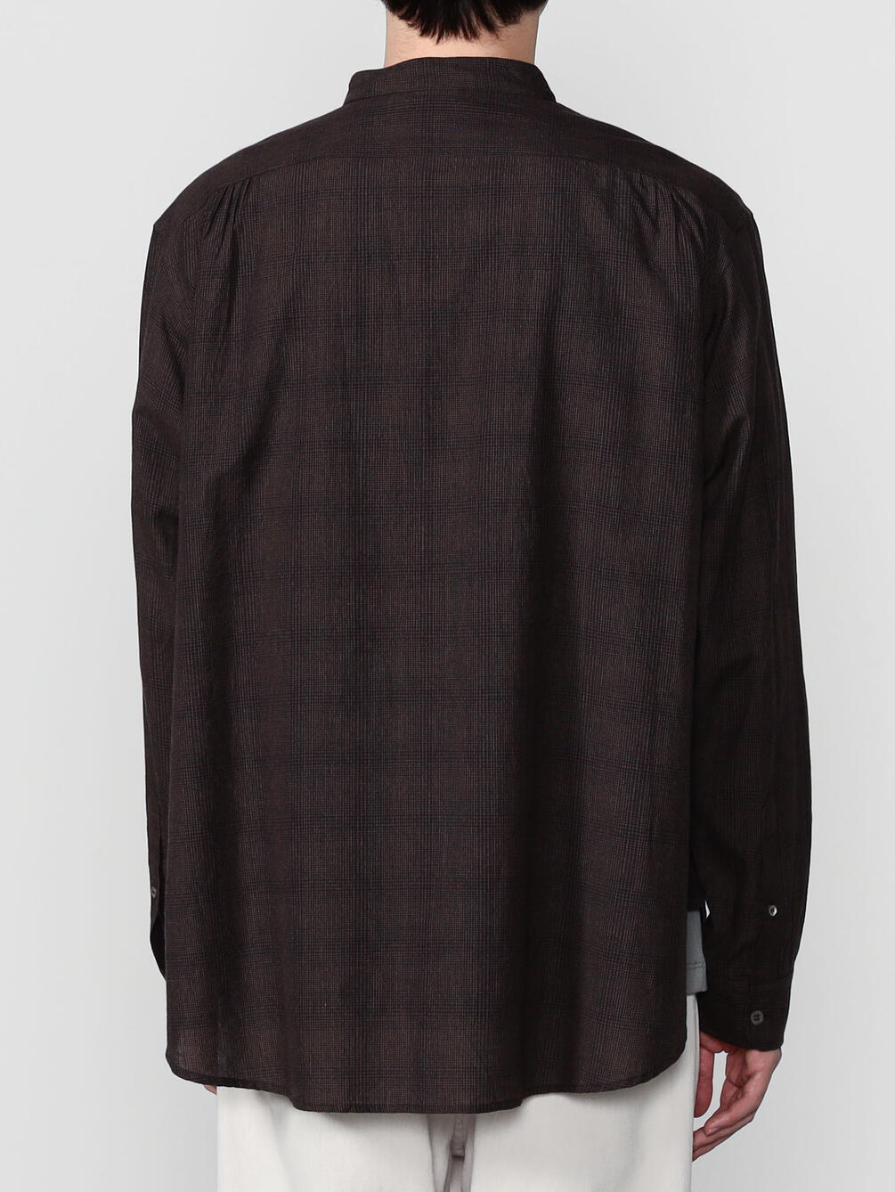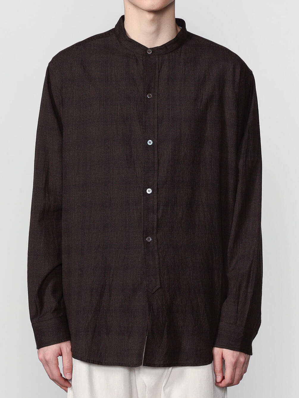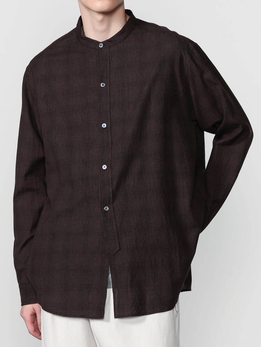 - 長袖のバンドカラーシャツ