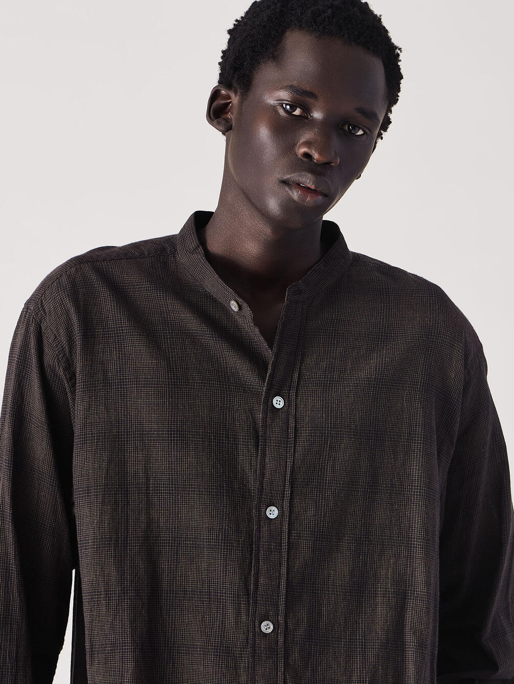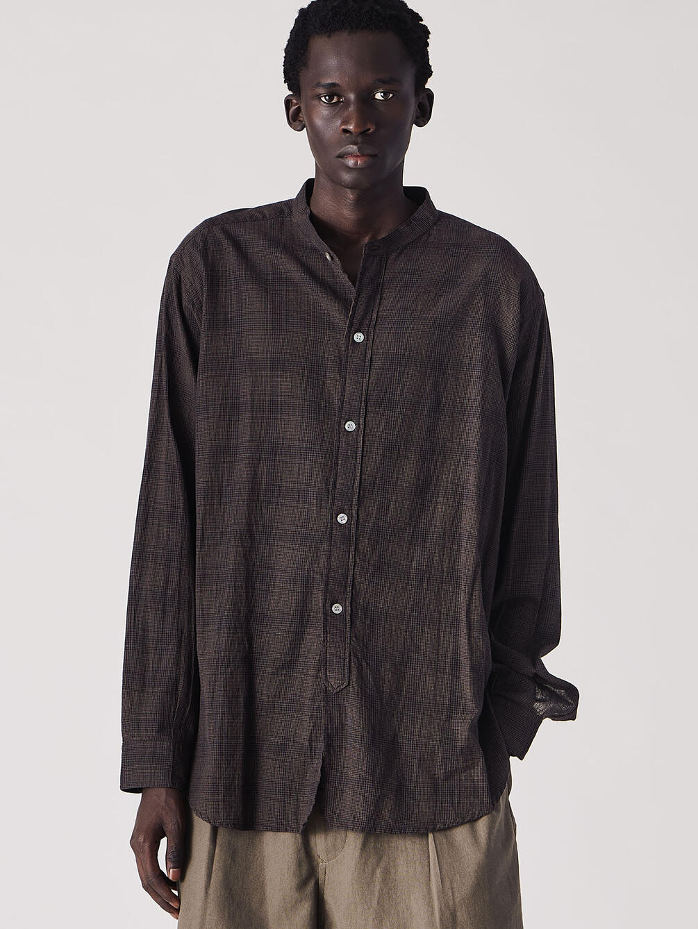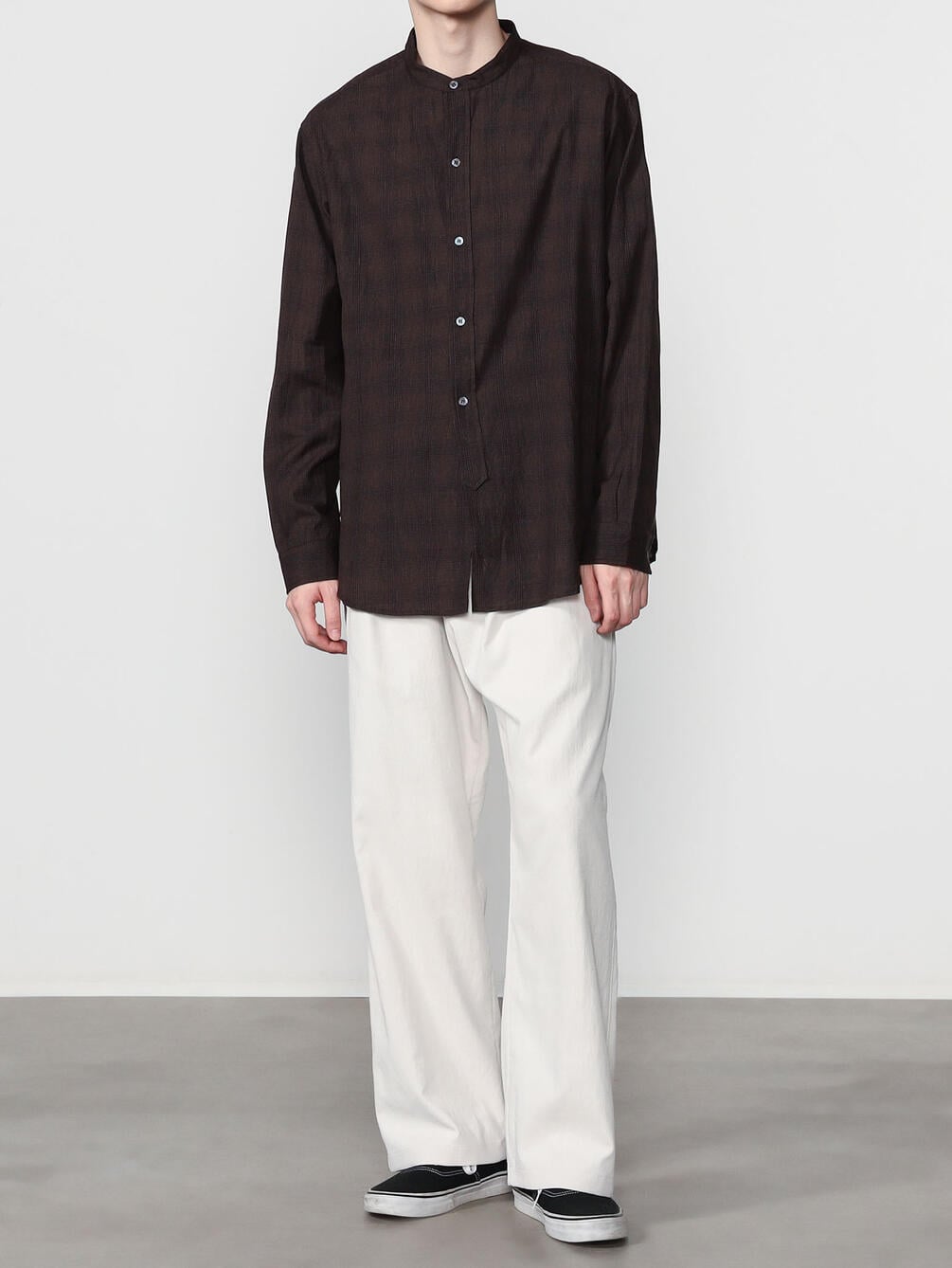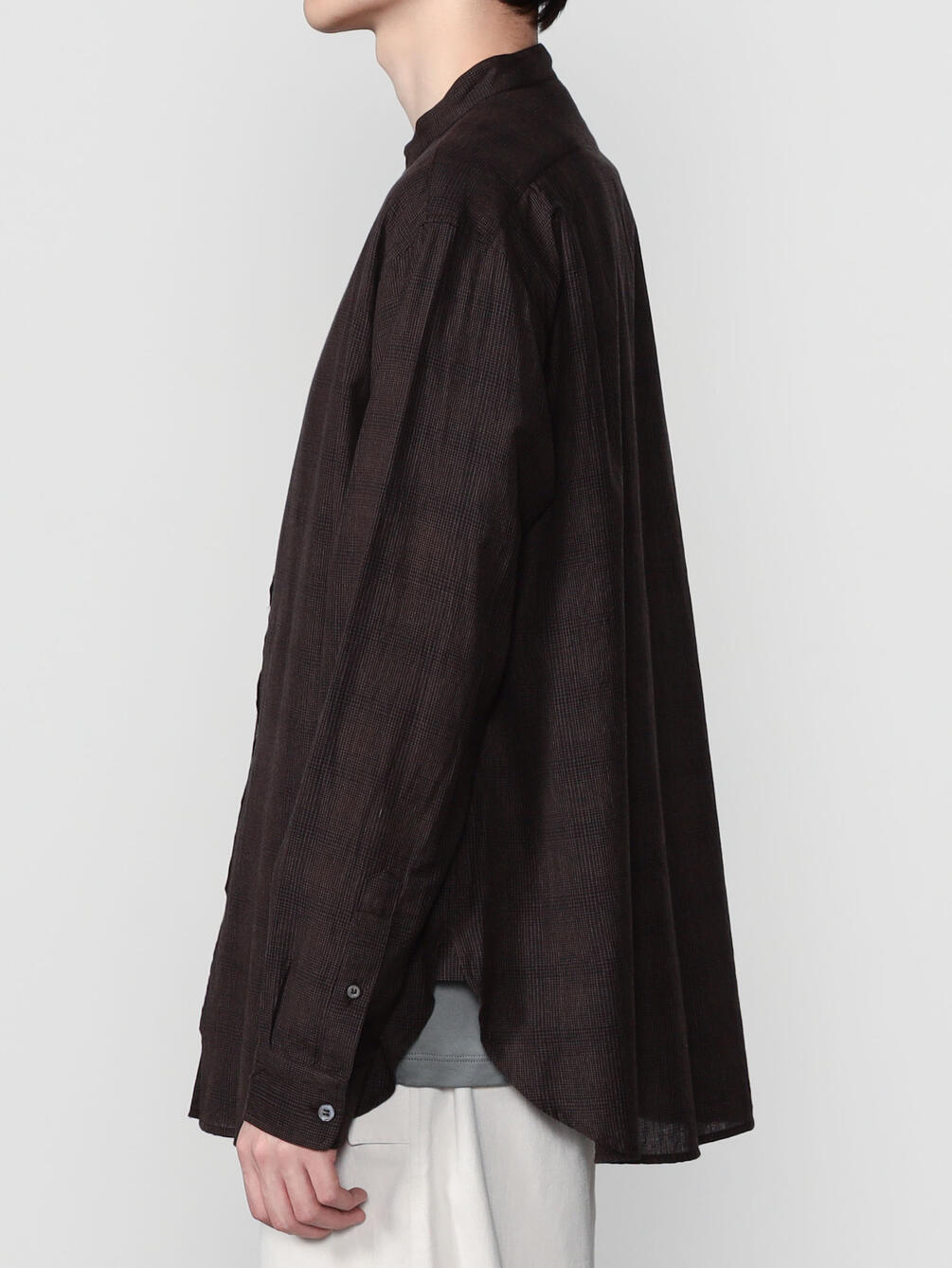 - 長袖のバンドカラーシャツ