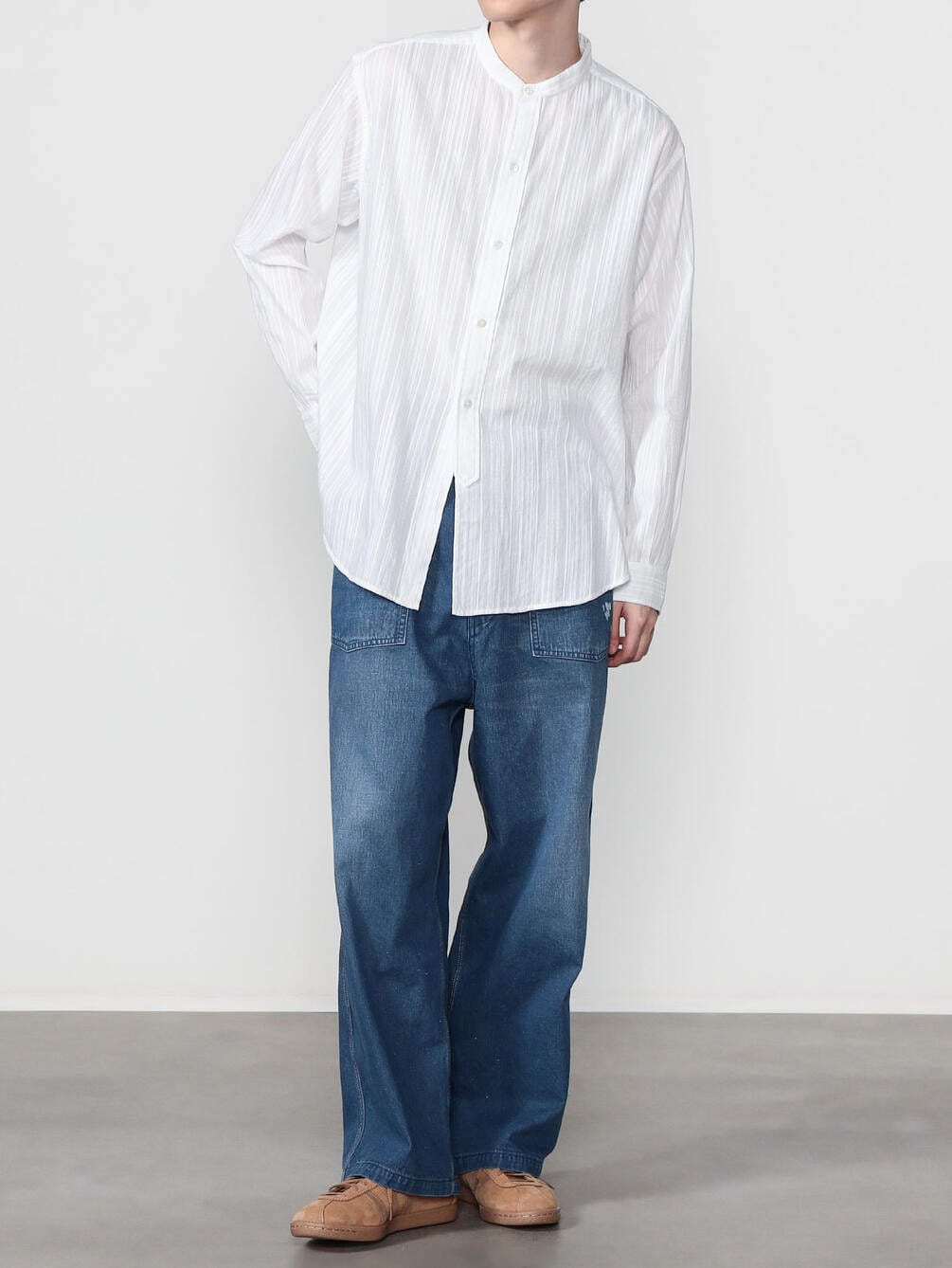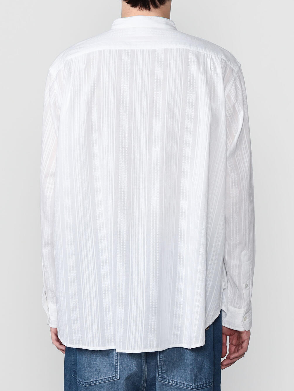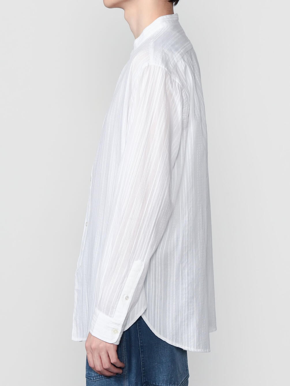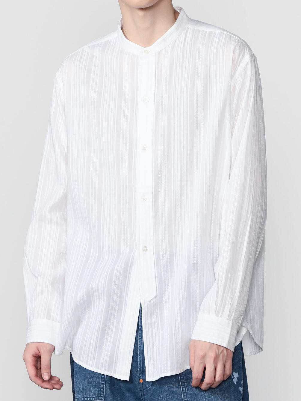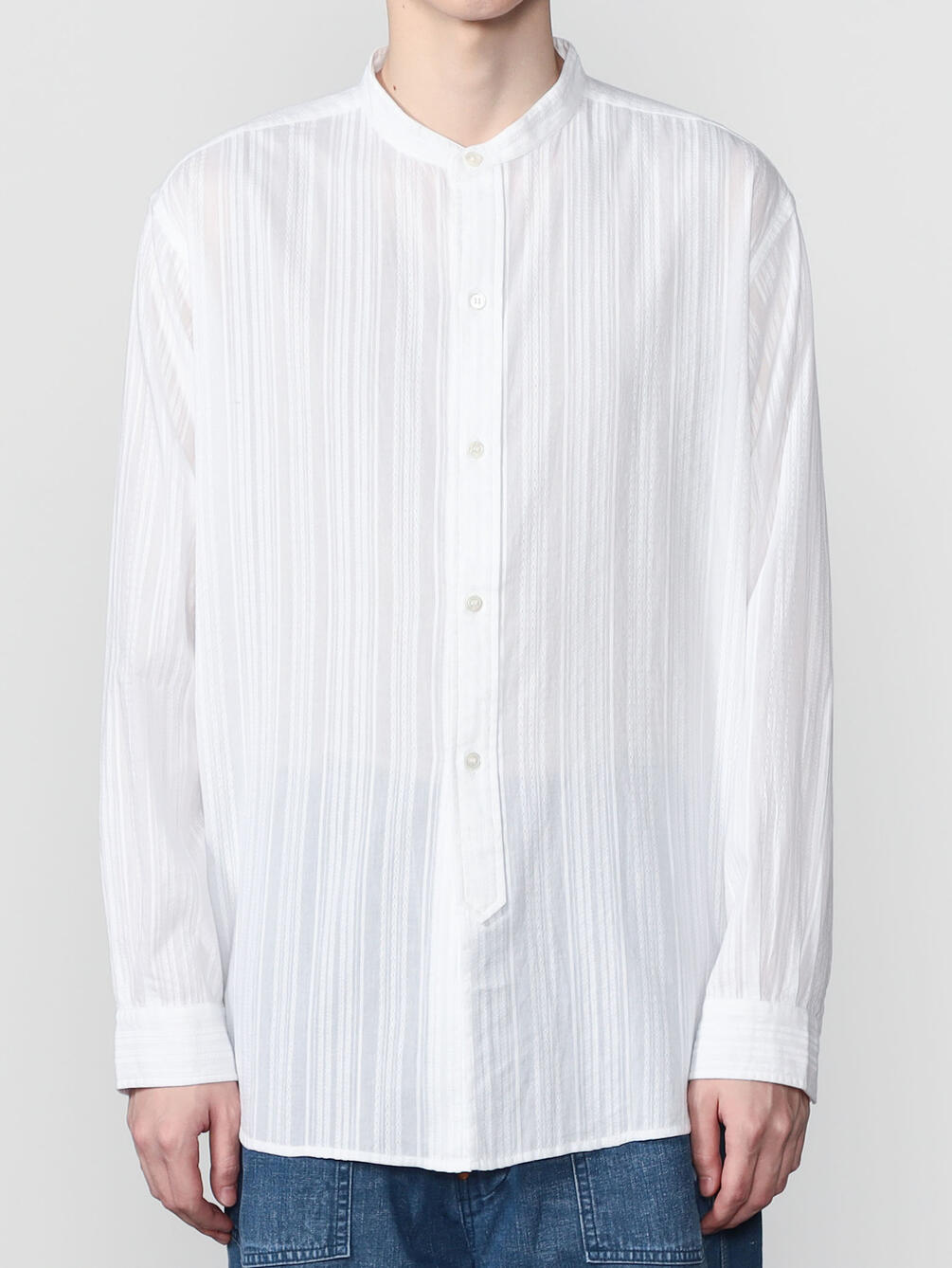 - 長袖のバンドカラーシャツ