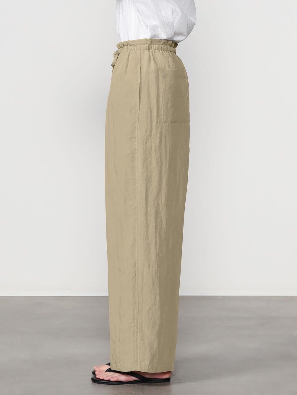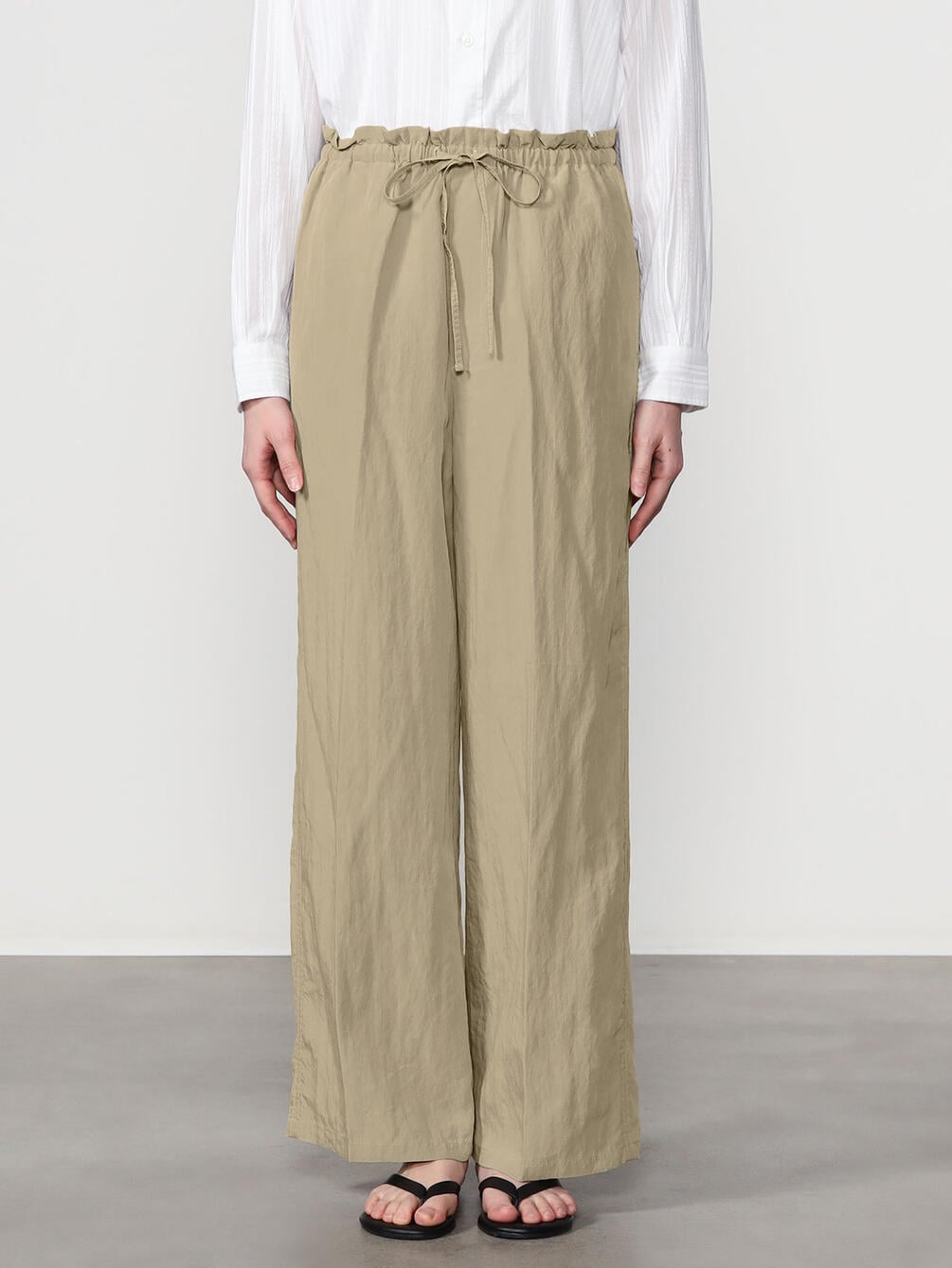 - ゴムウエストにドローコードを通したイージー仕様