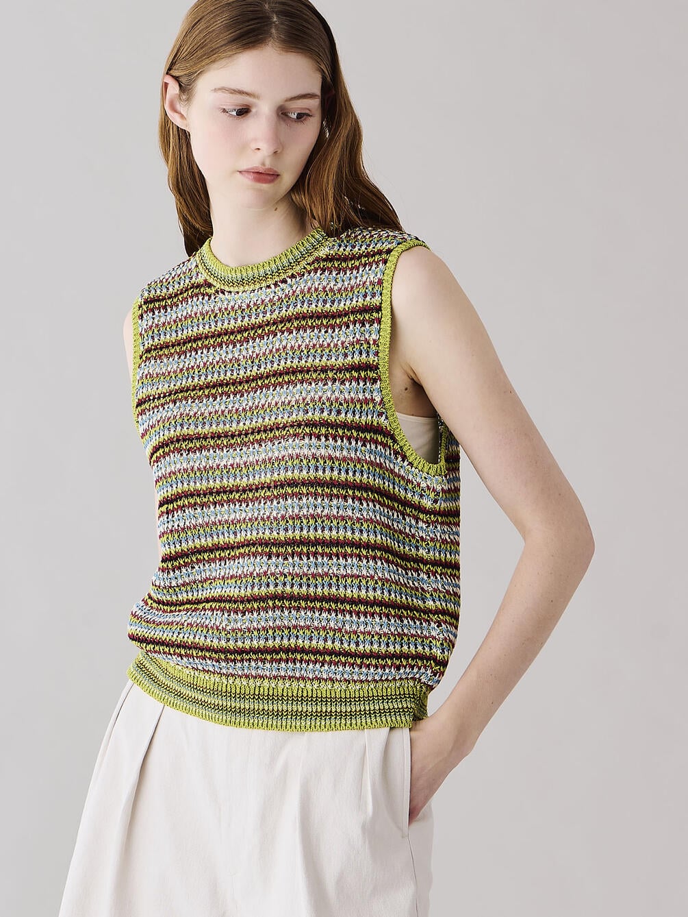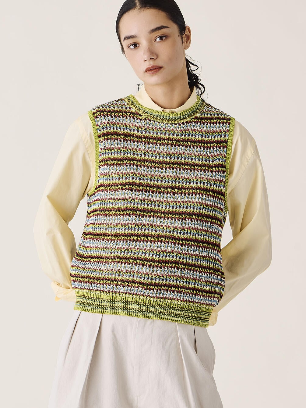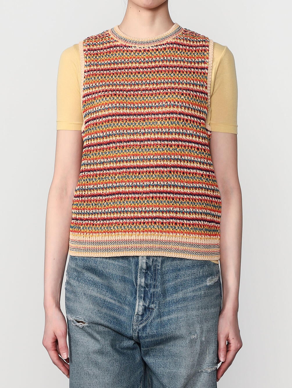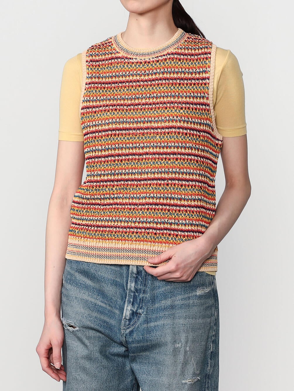 - クルーネックのニットベスト