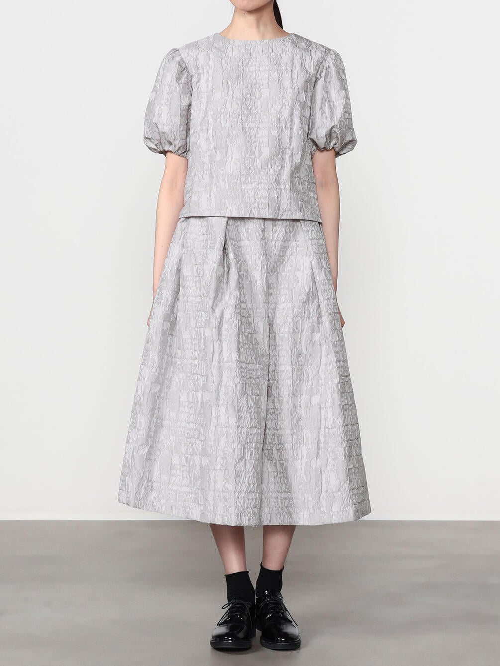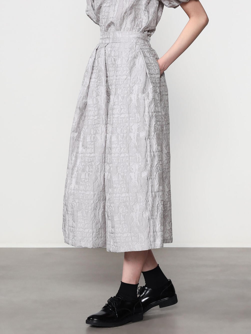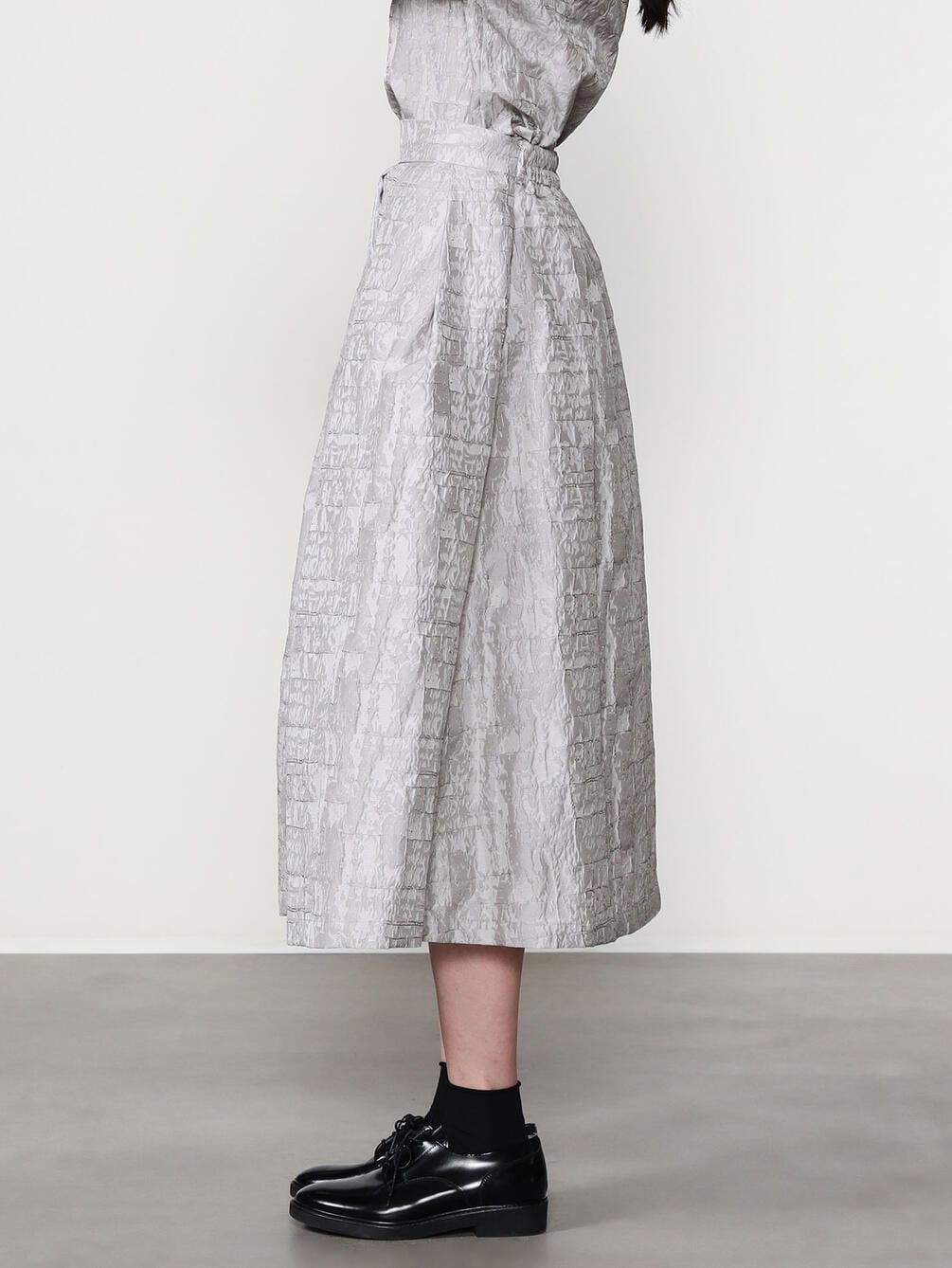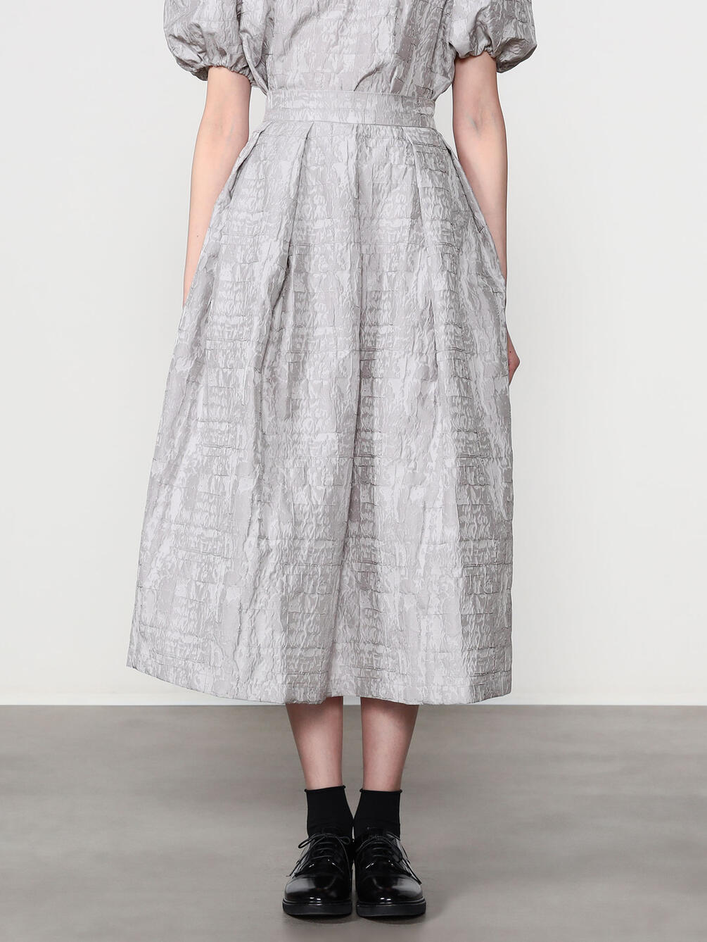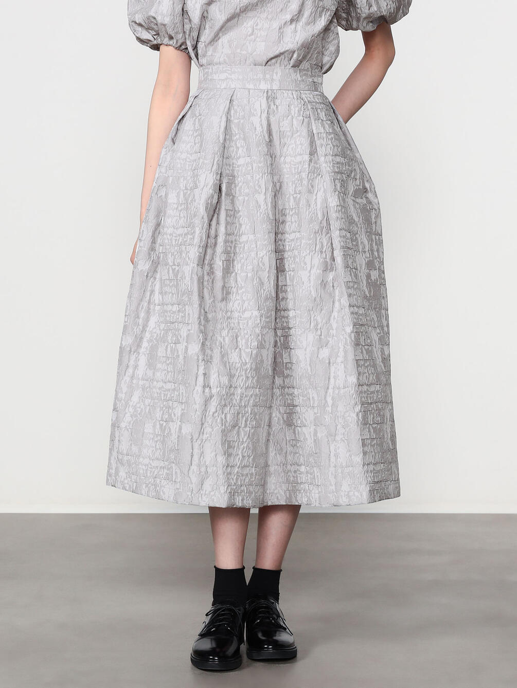 - フェミニンなシルエットを演出するタックスカート