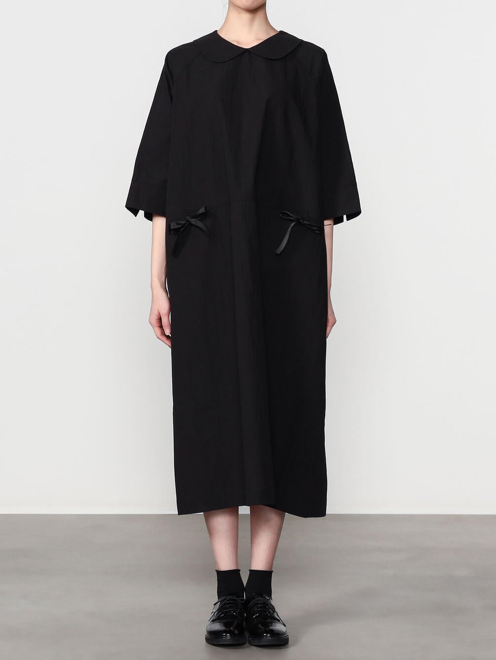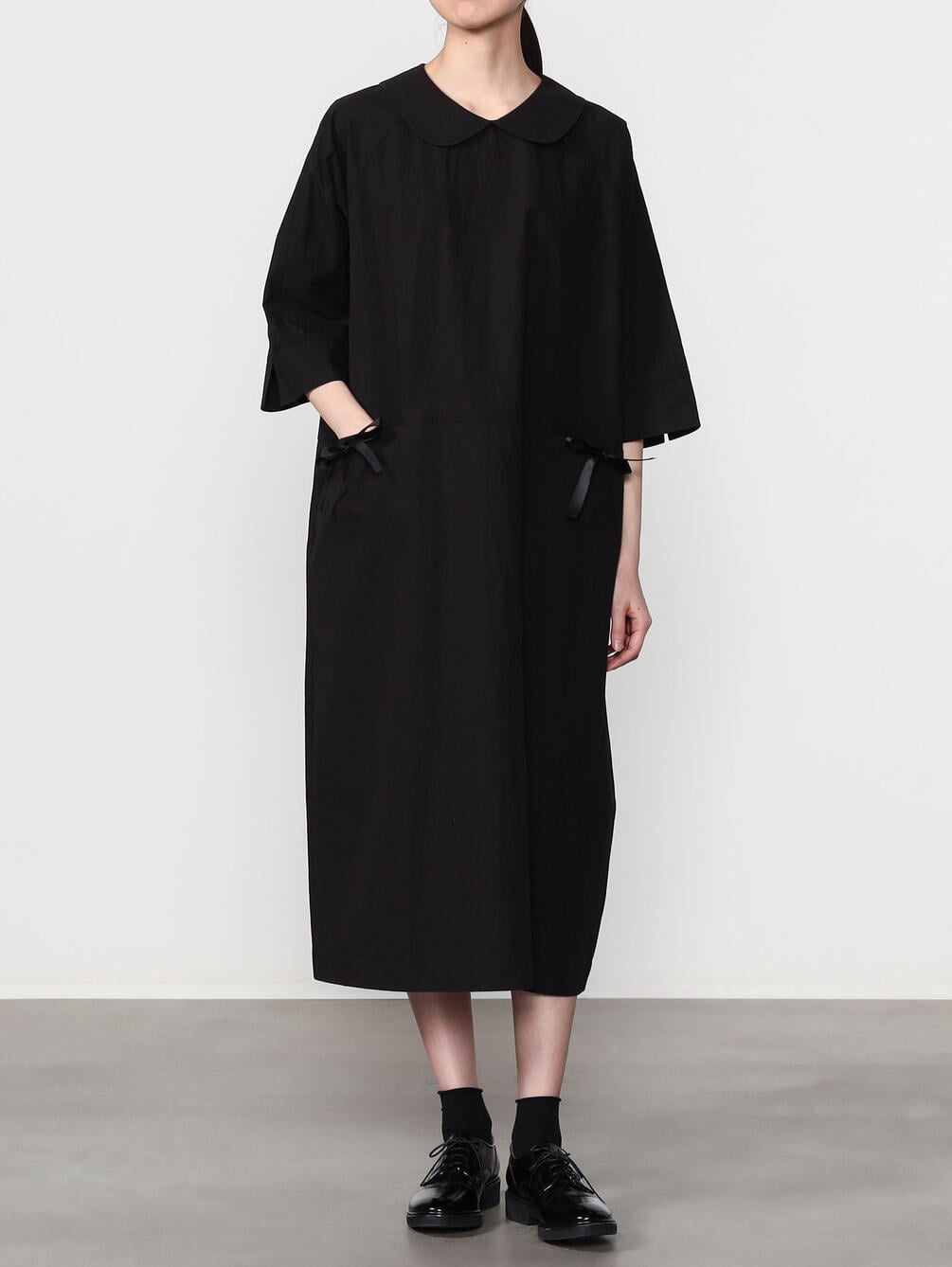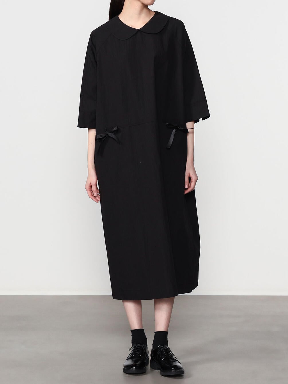 - フェミニンな印象のラウンドカラーのドレス