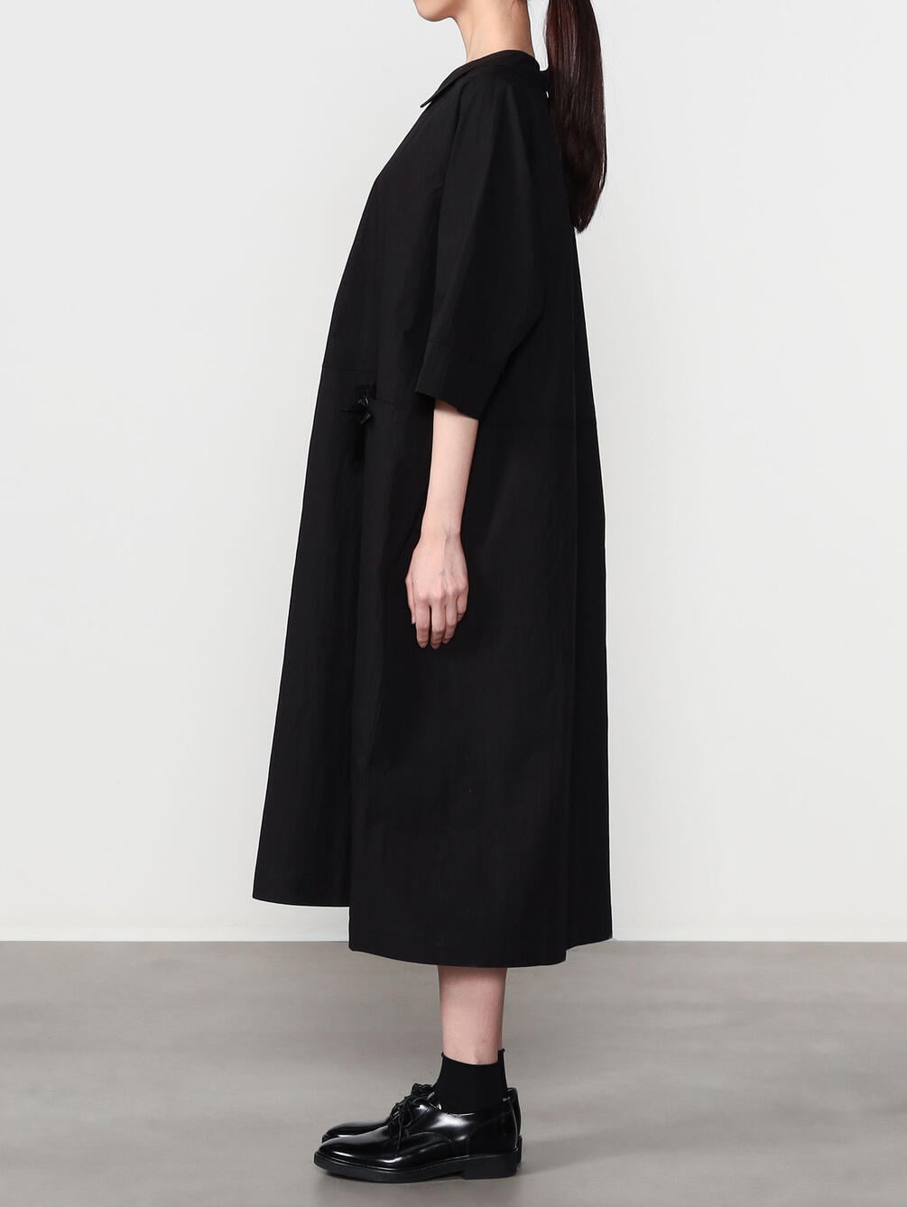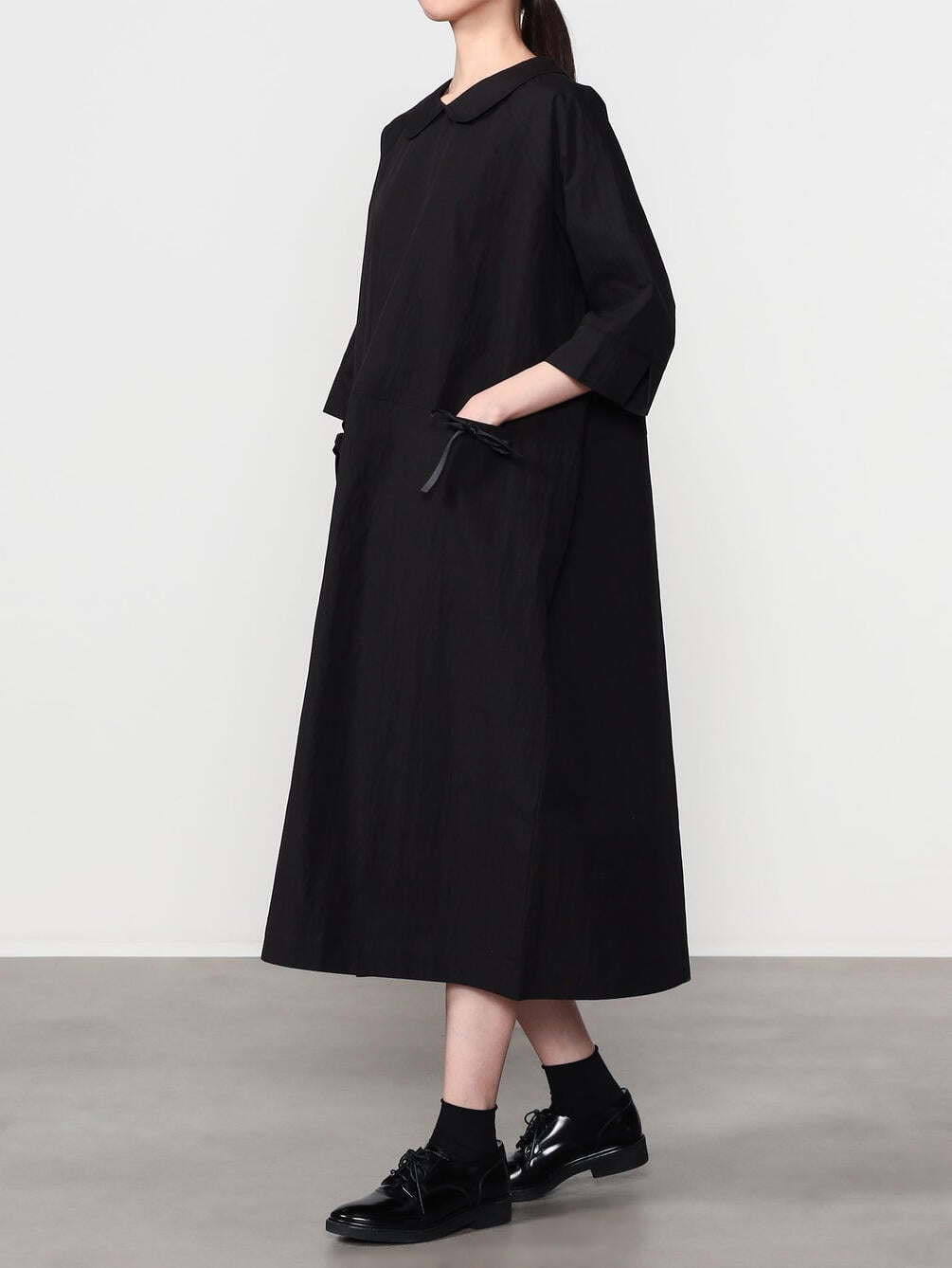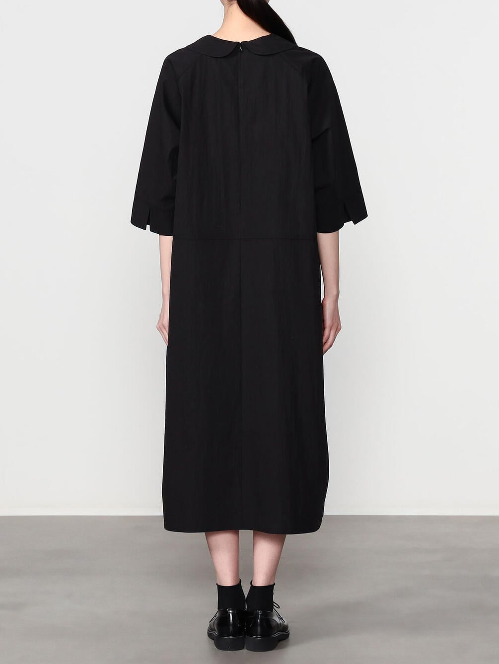 - フェミニンな印象のラウンドカラーのドレス