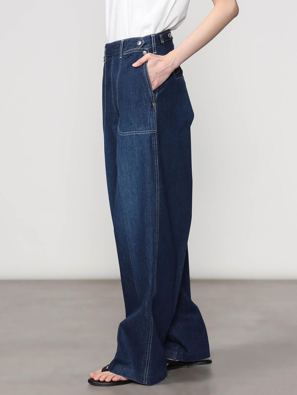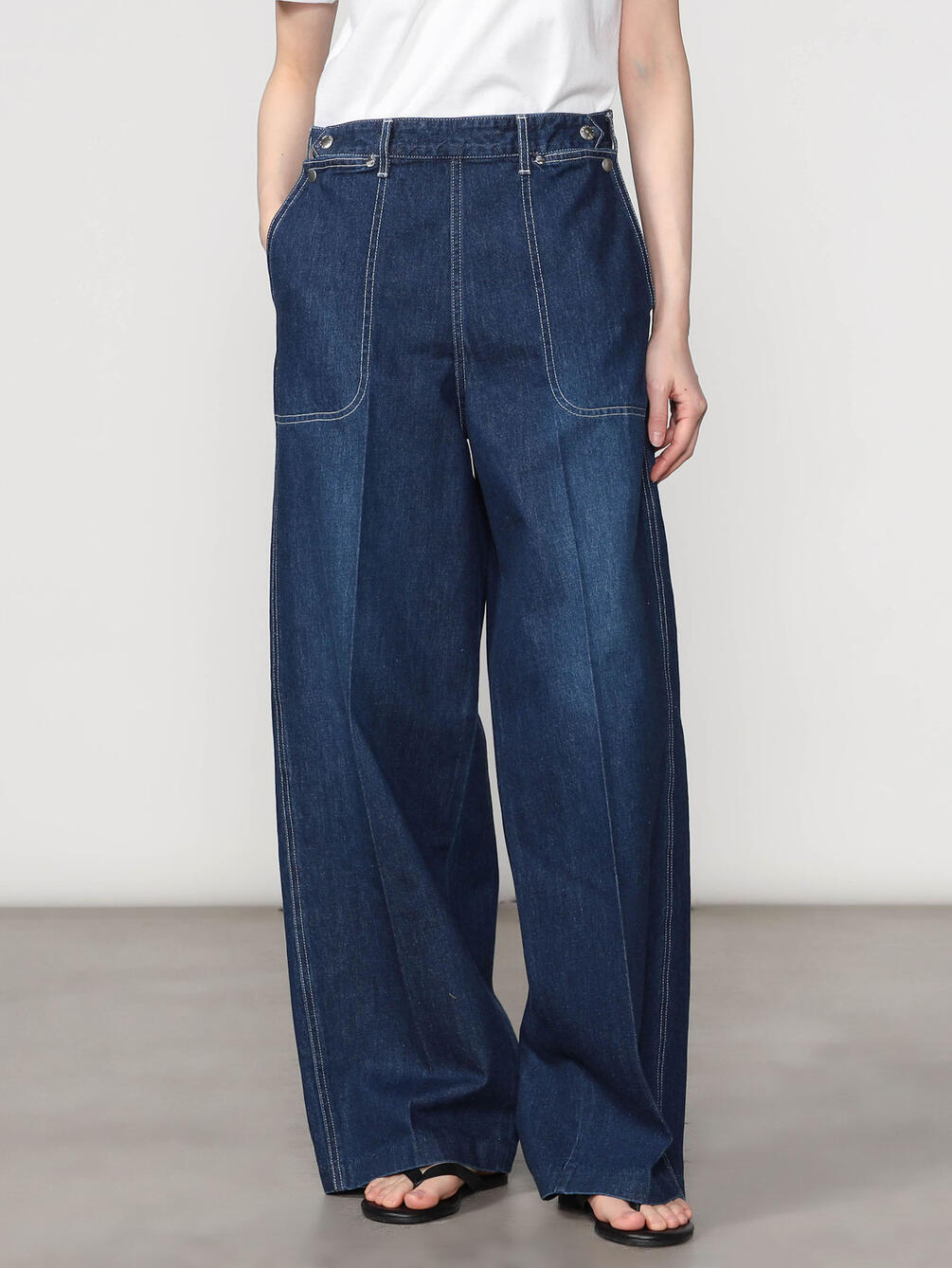 - ワイドシルエットのデニムパンツ
