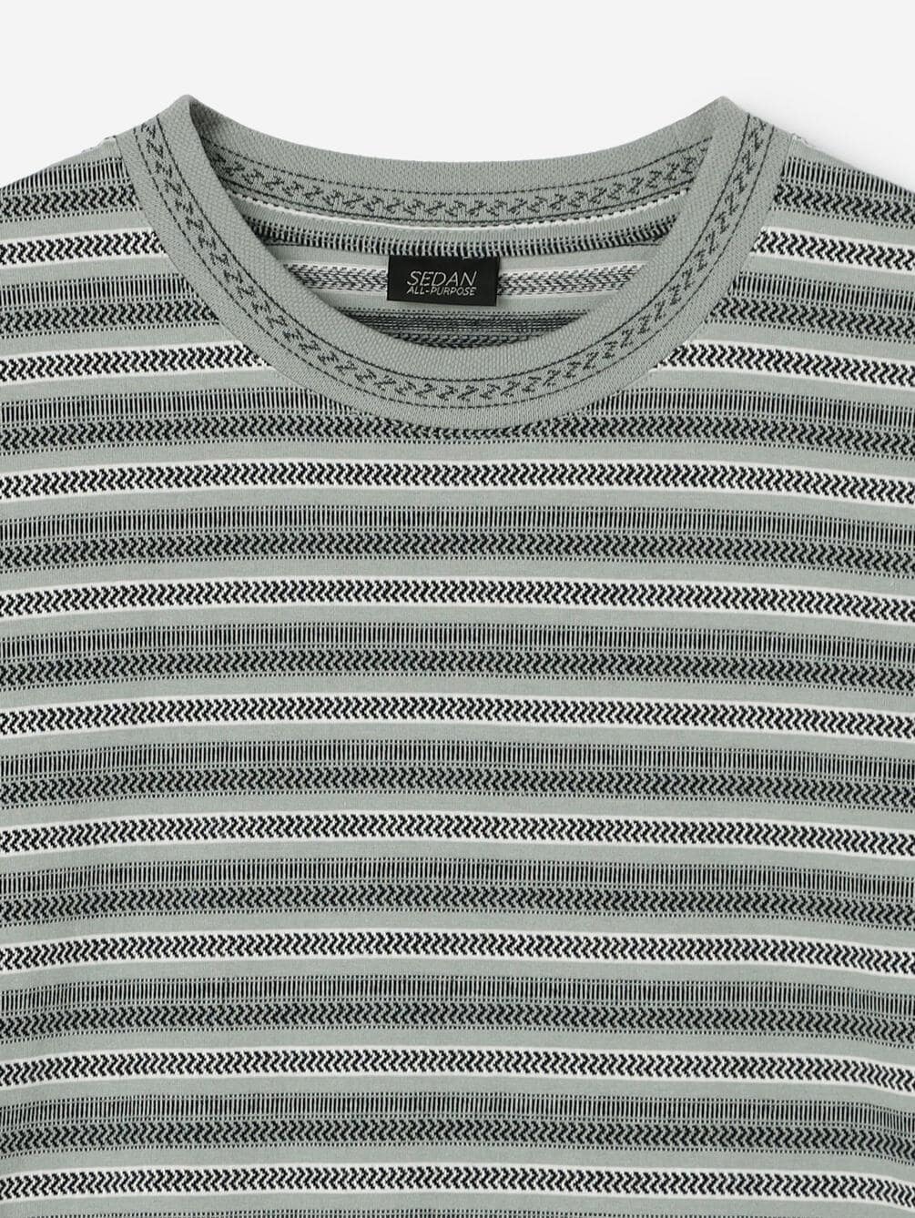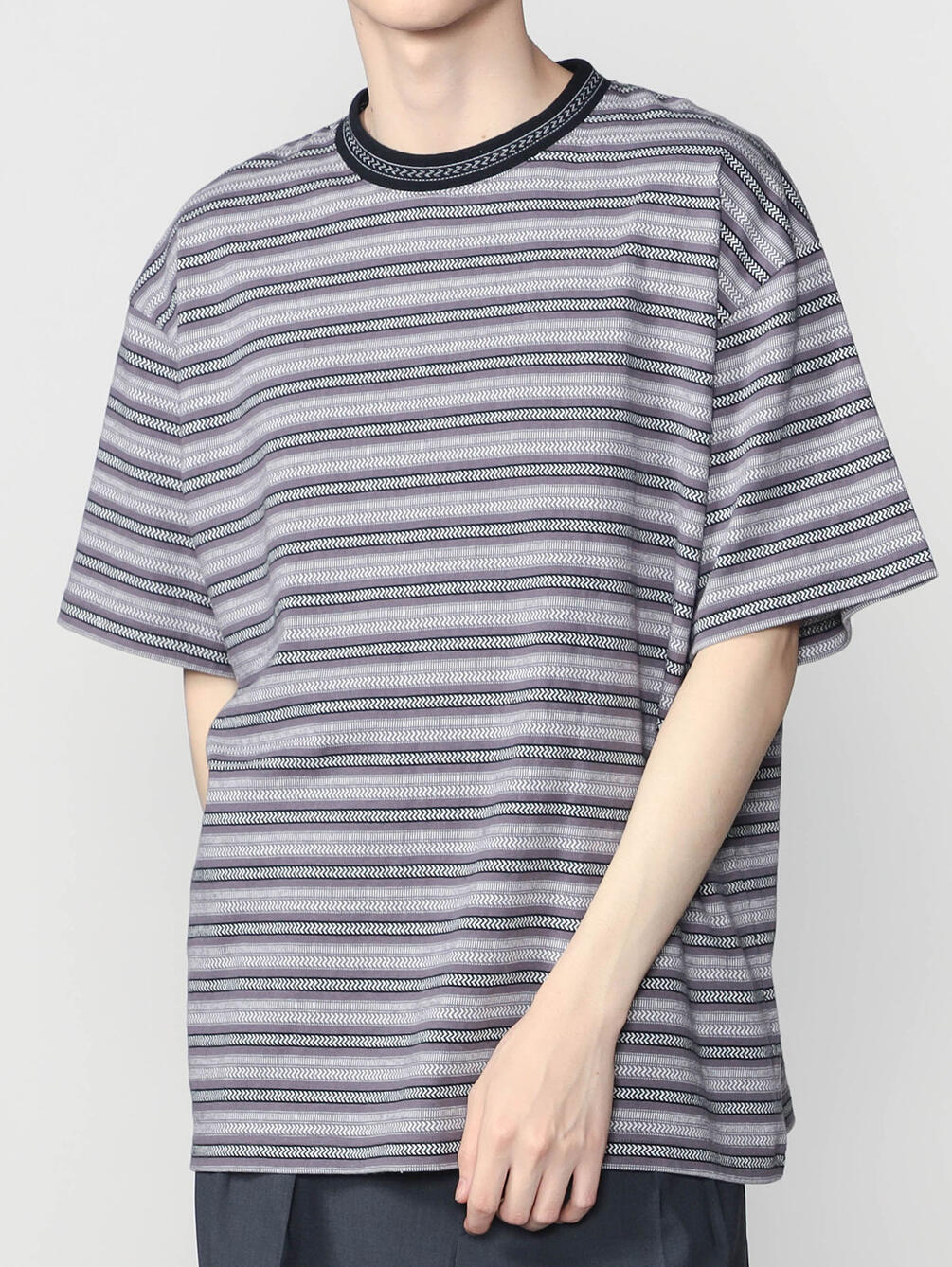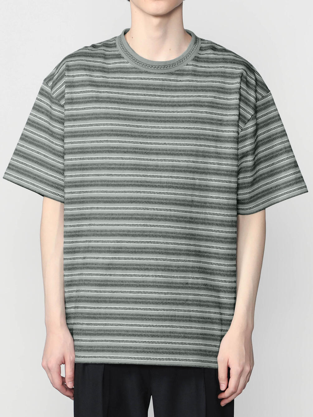 - クルーネックのジャガード柄半袖Tシャツ