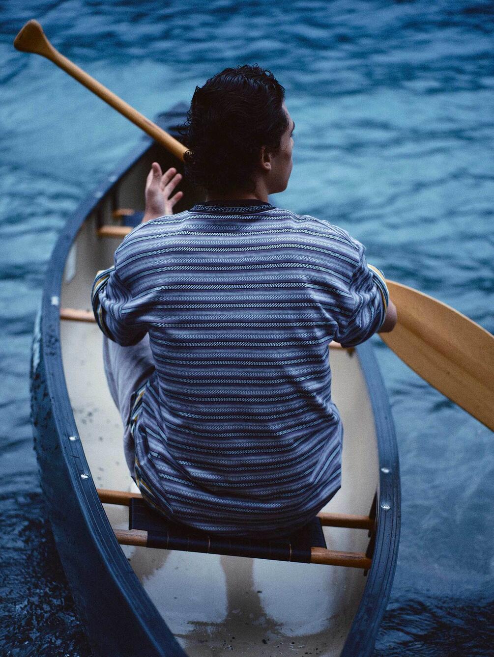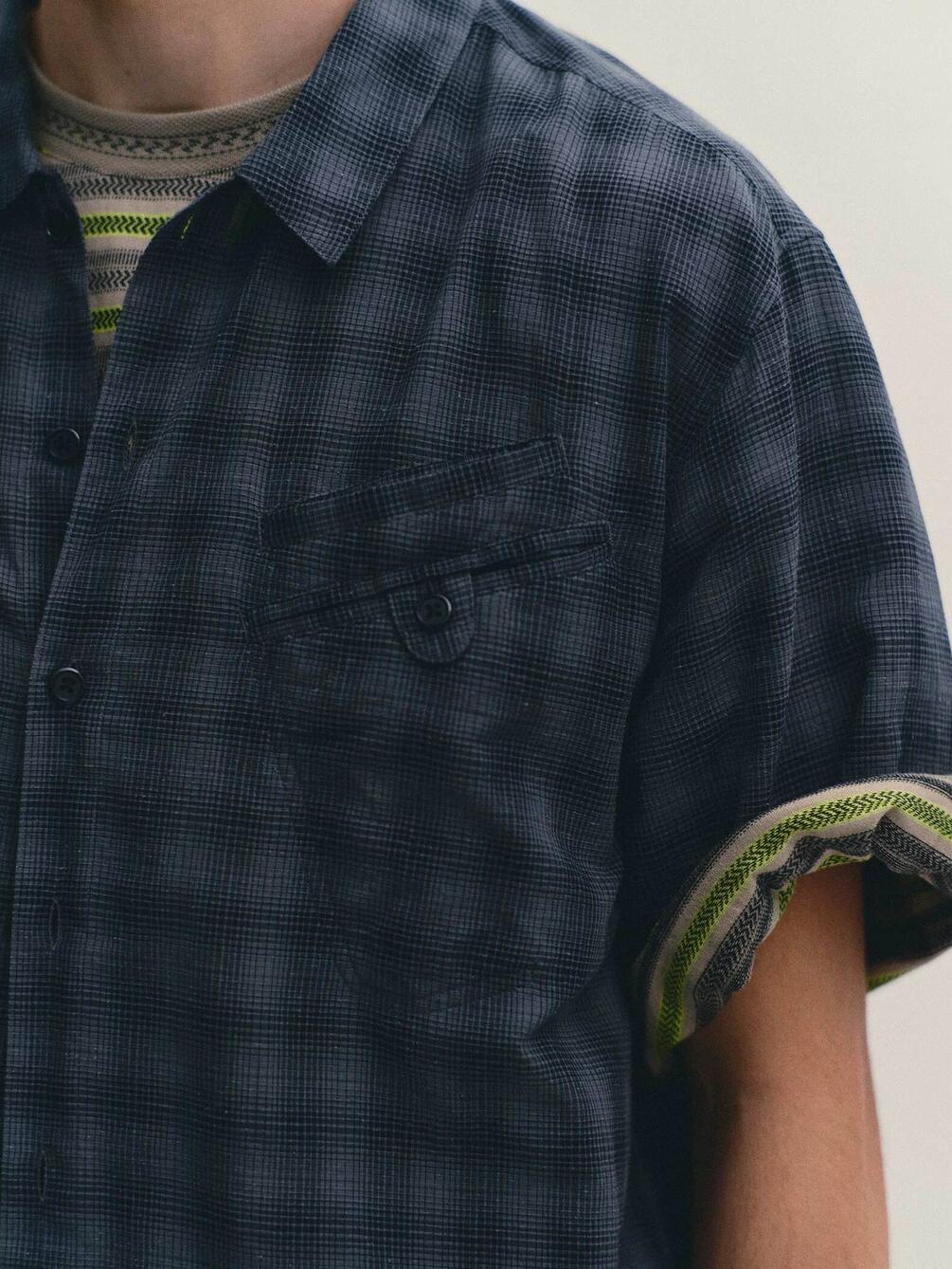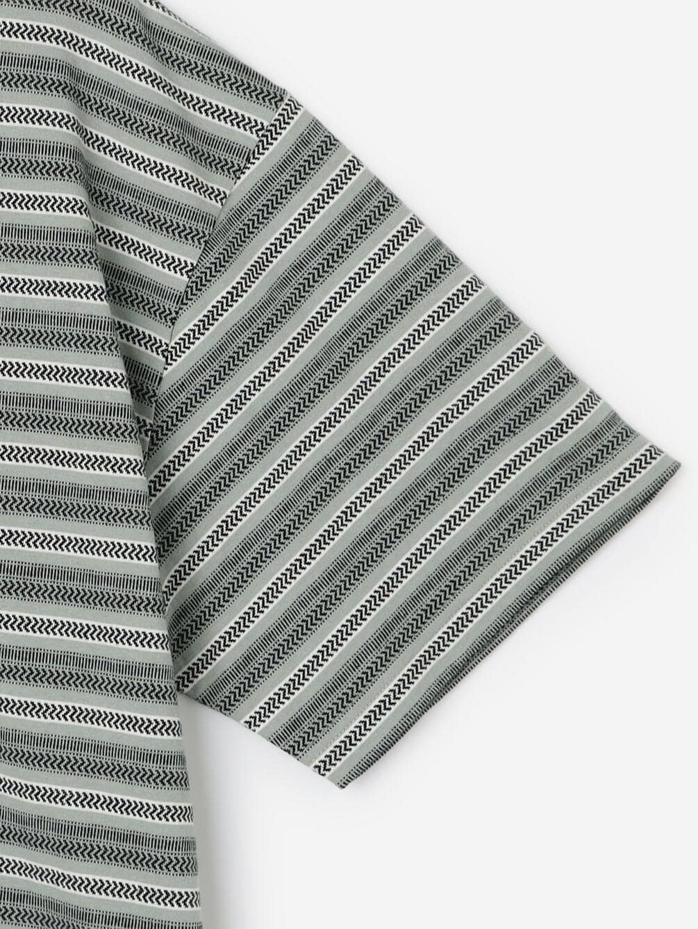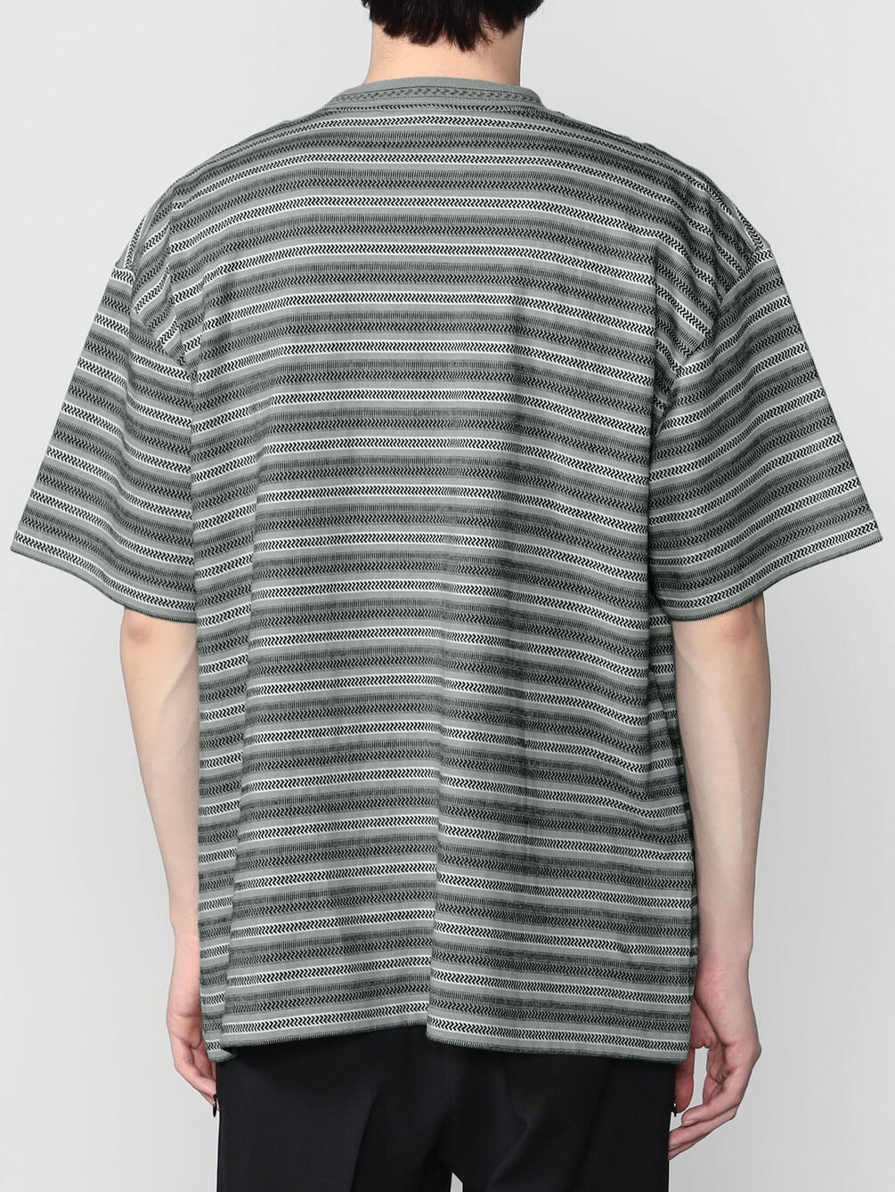 - クルーネックのジャガード柄半袖Tシャツ