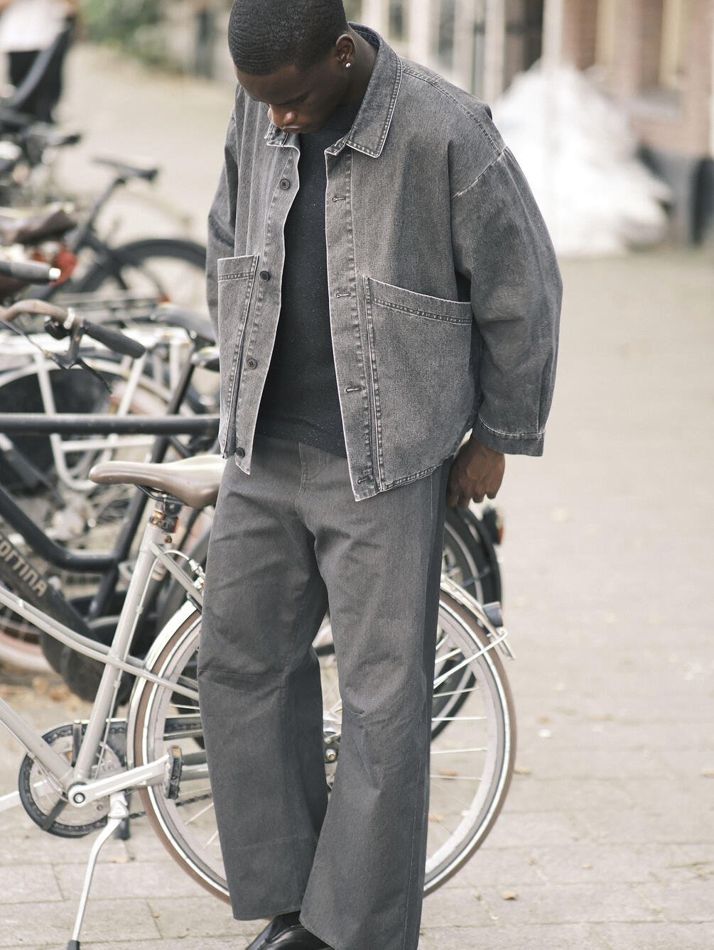- ミニマルなシャツジャケット