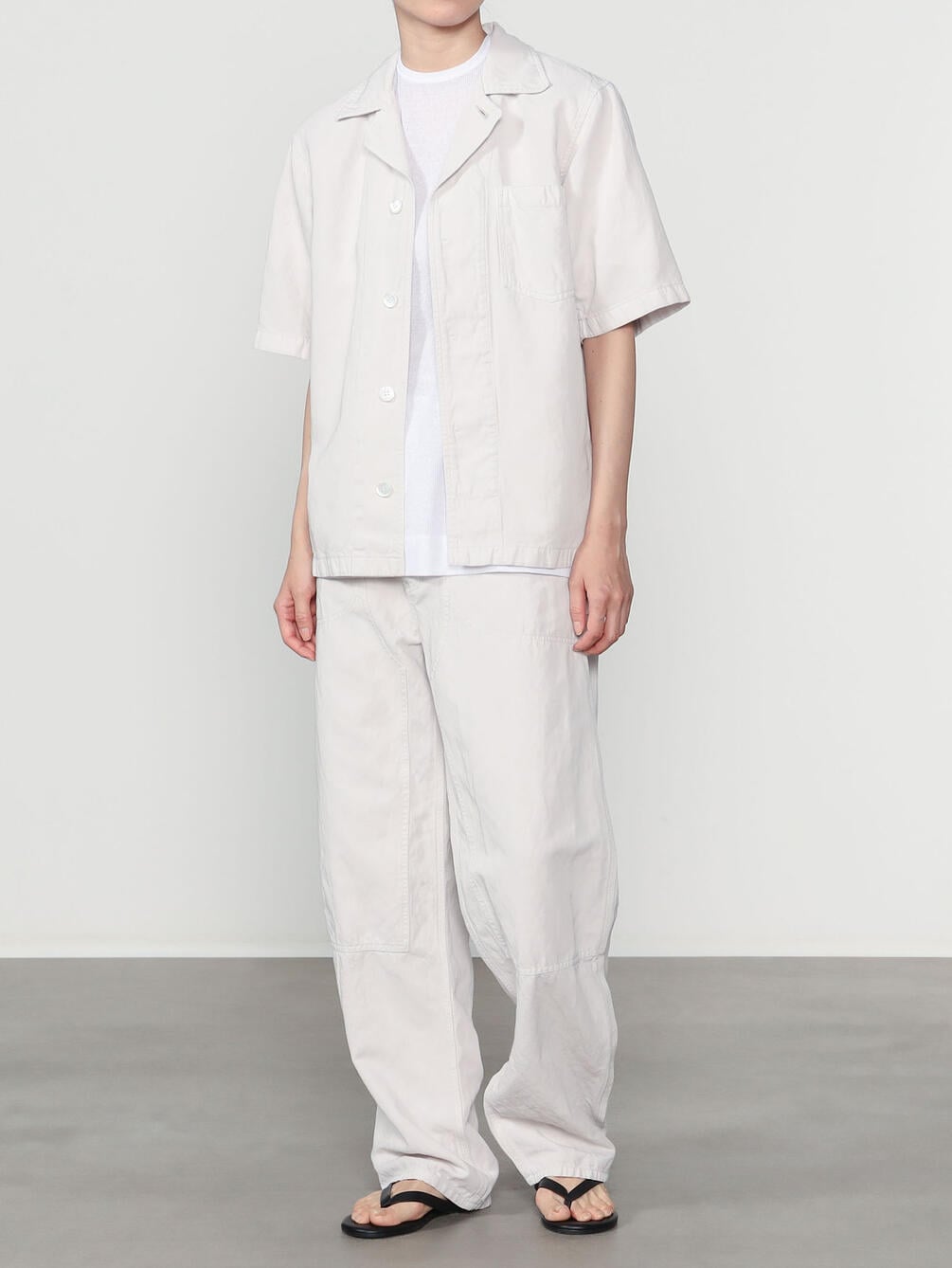 - カバーオールから着想を得たオープンカラーシャツ