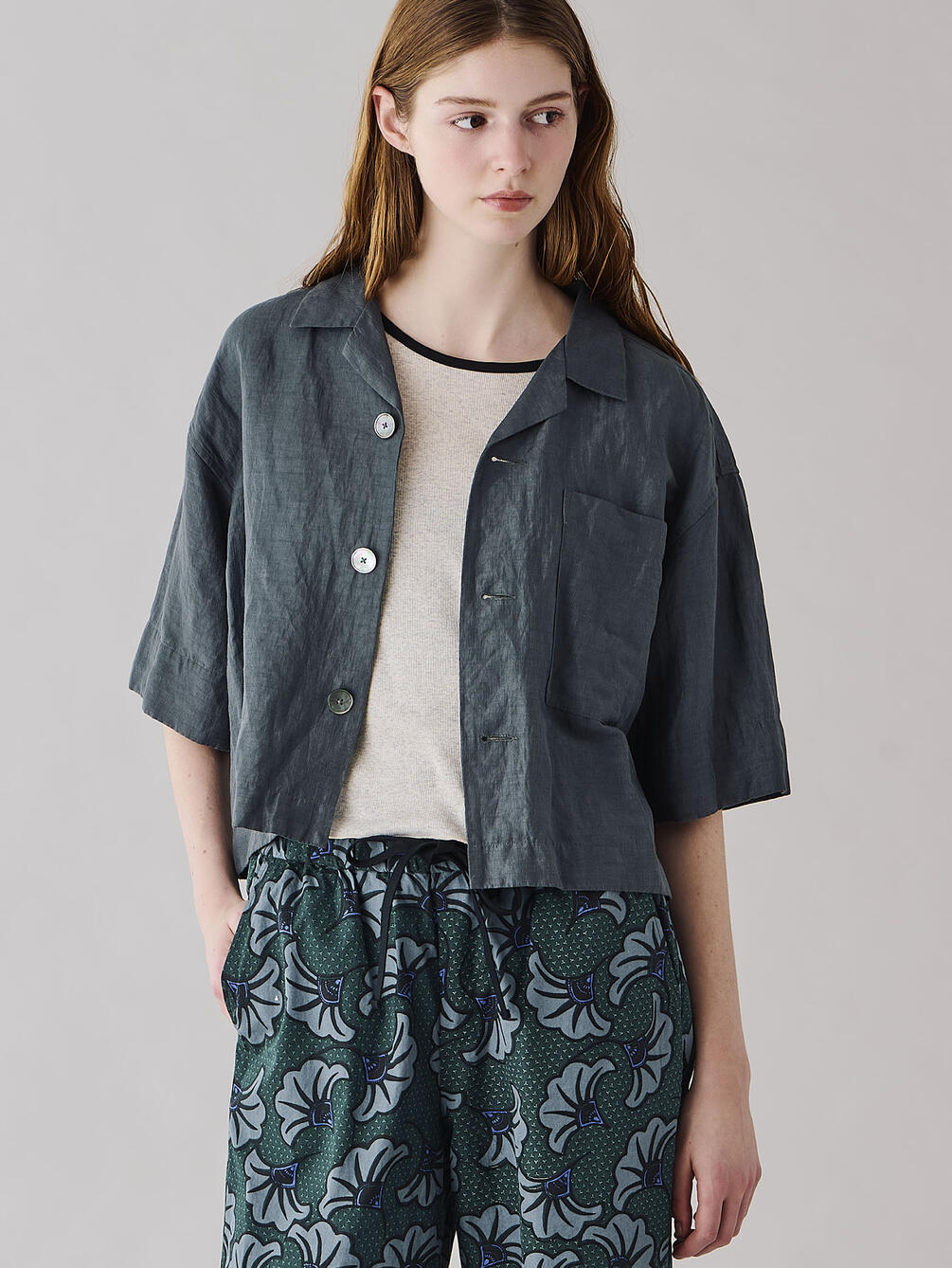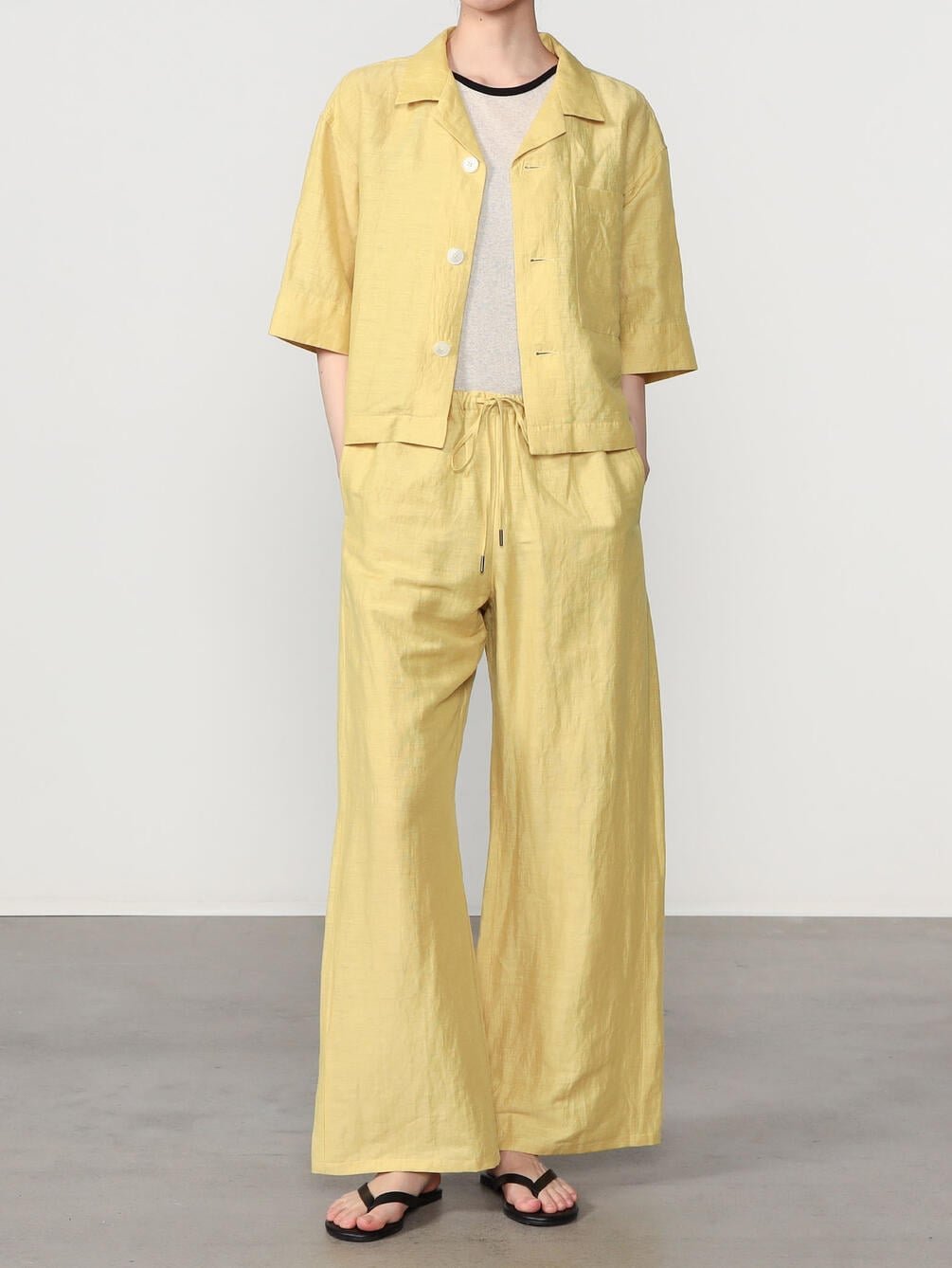 - 製品洗いをすることでリネンのナチュラルな表情感を演出