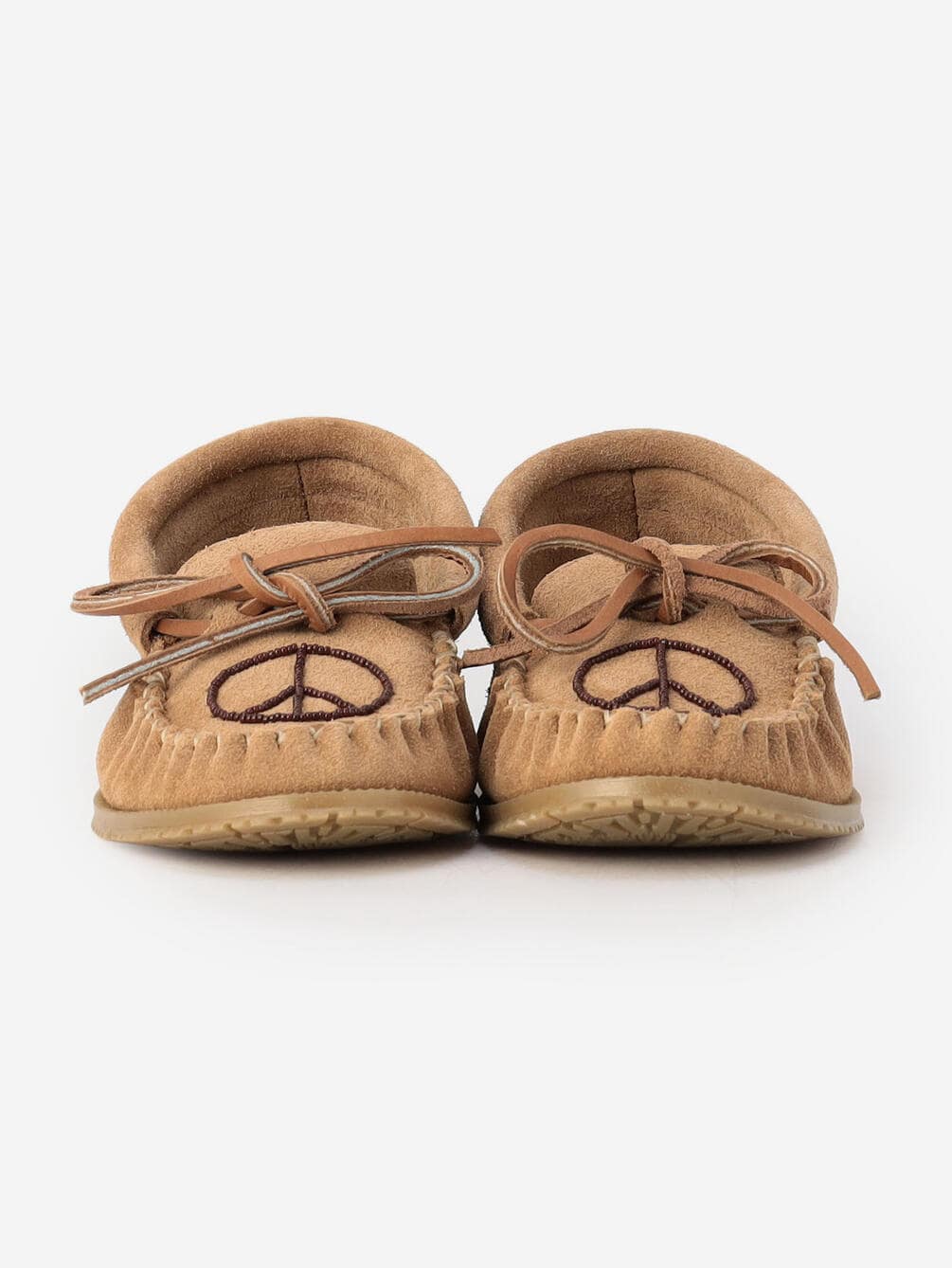 - カナダの先住民族であるヒューロン族職人の手で作られるモカシン