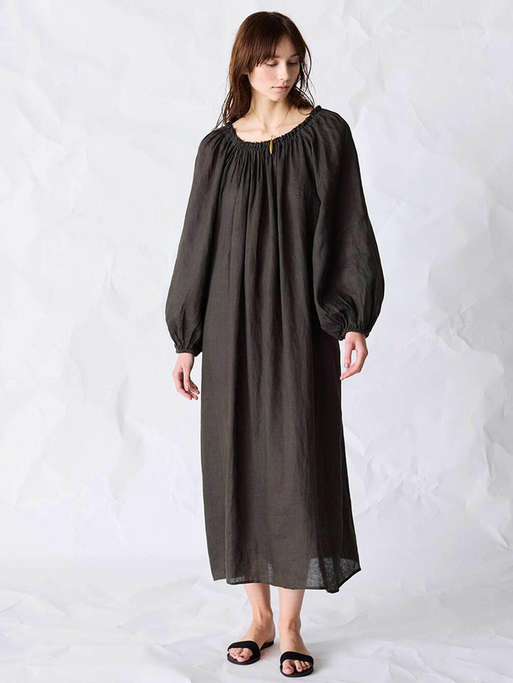- バルーンスリーブのロングドレス