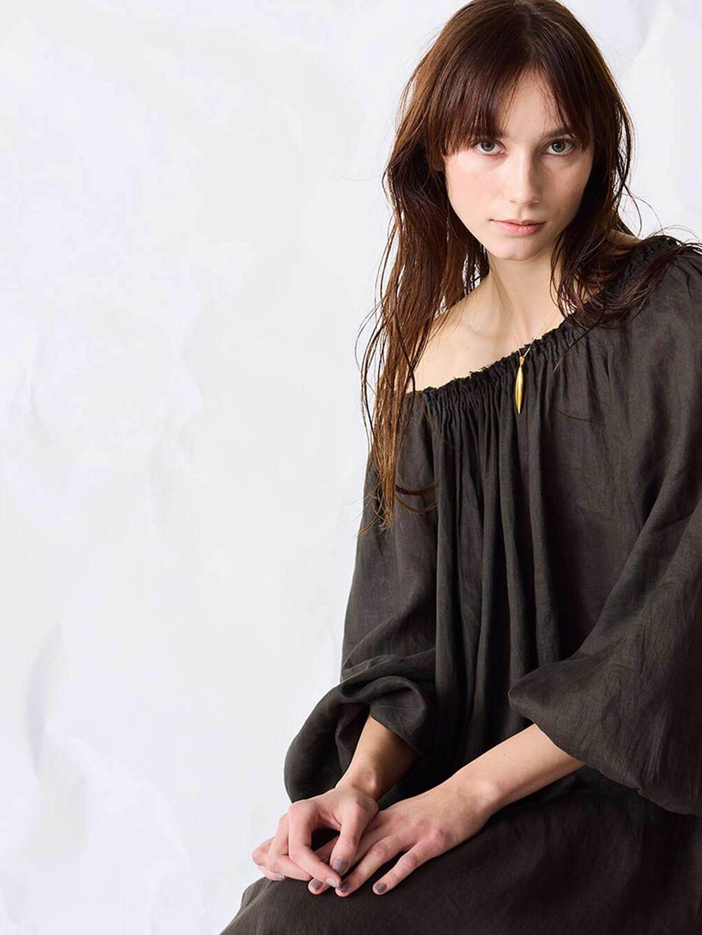 - リネン特有のシャリ感に、柔らかな光沢としなやかさがあるリネン地