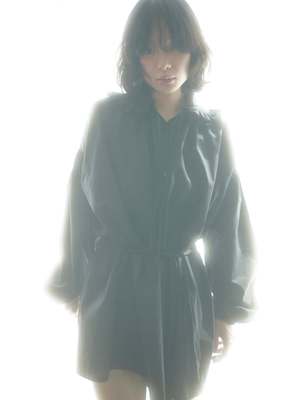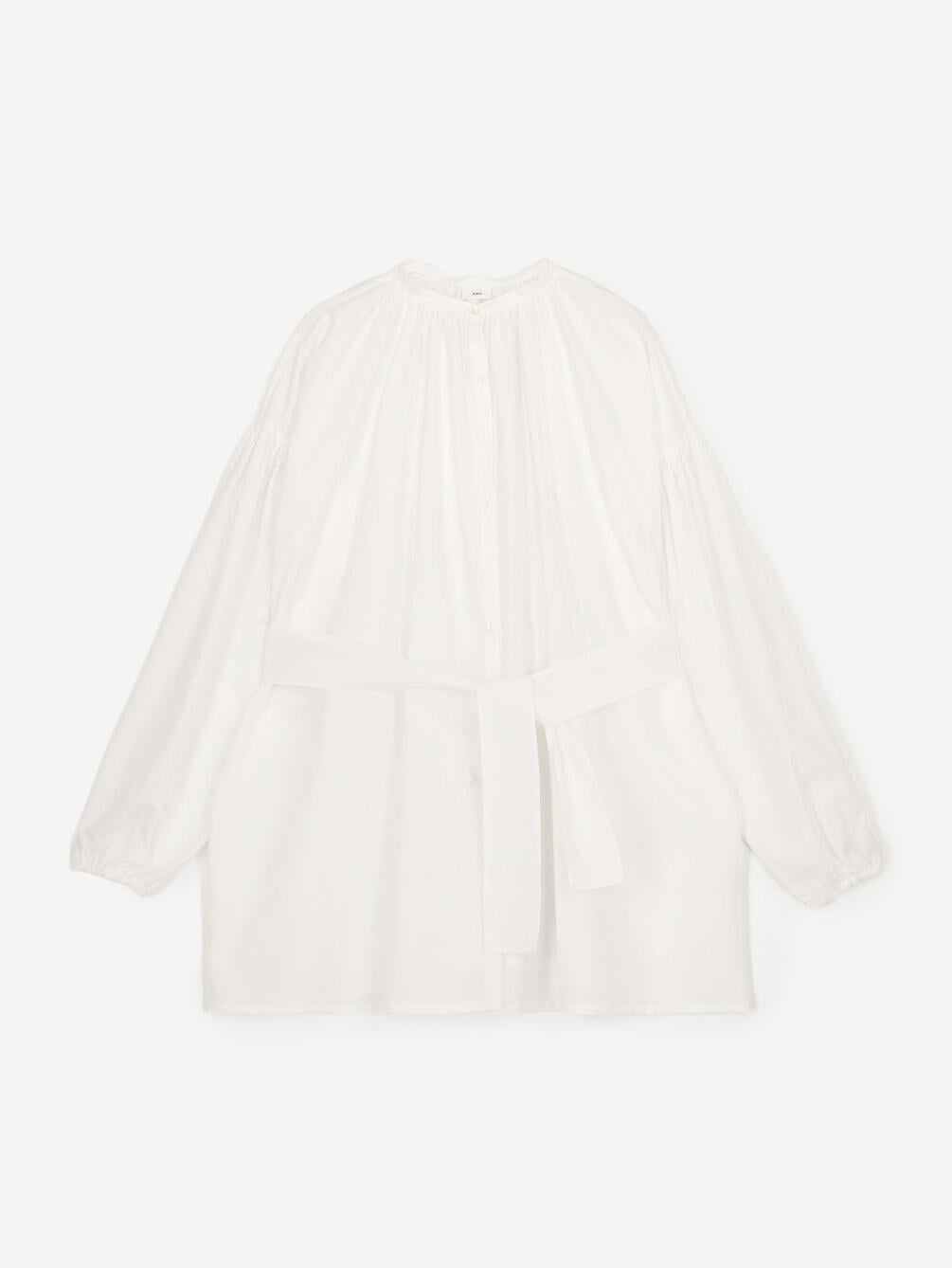 - ベルト付きの長袖ブラウス