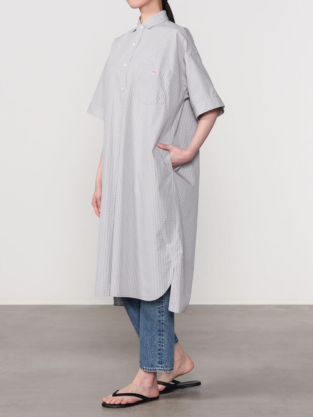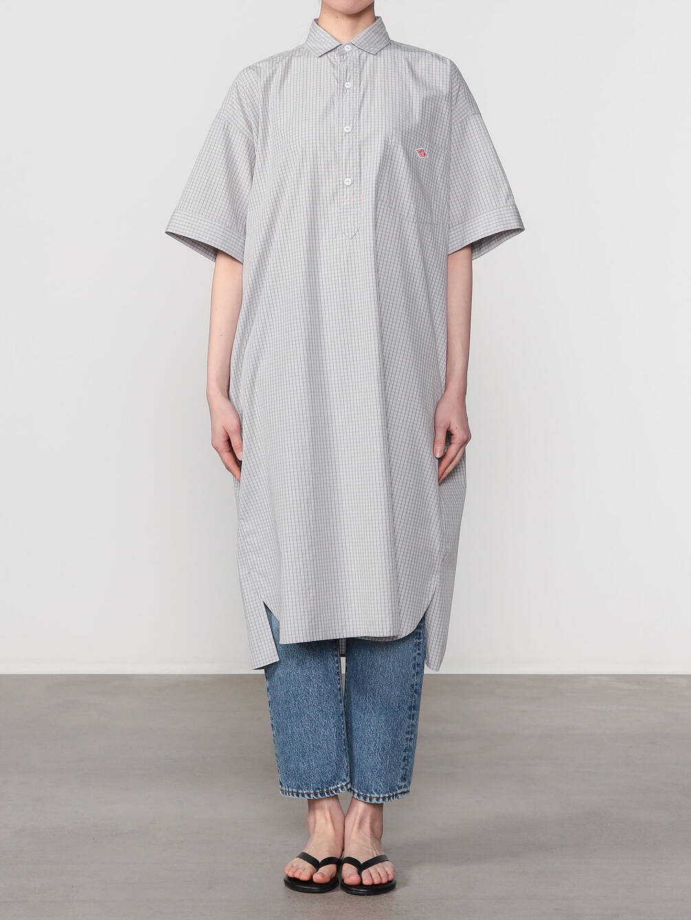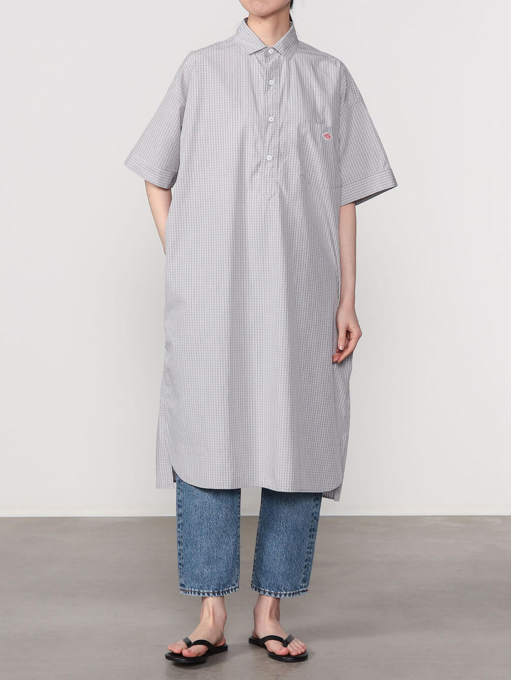 - プルオーバー型の半袖シャツワンピース