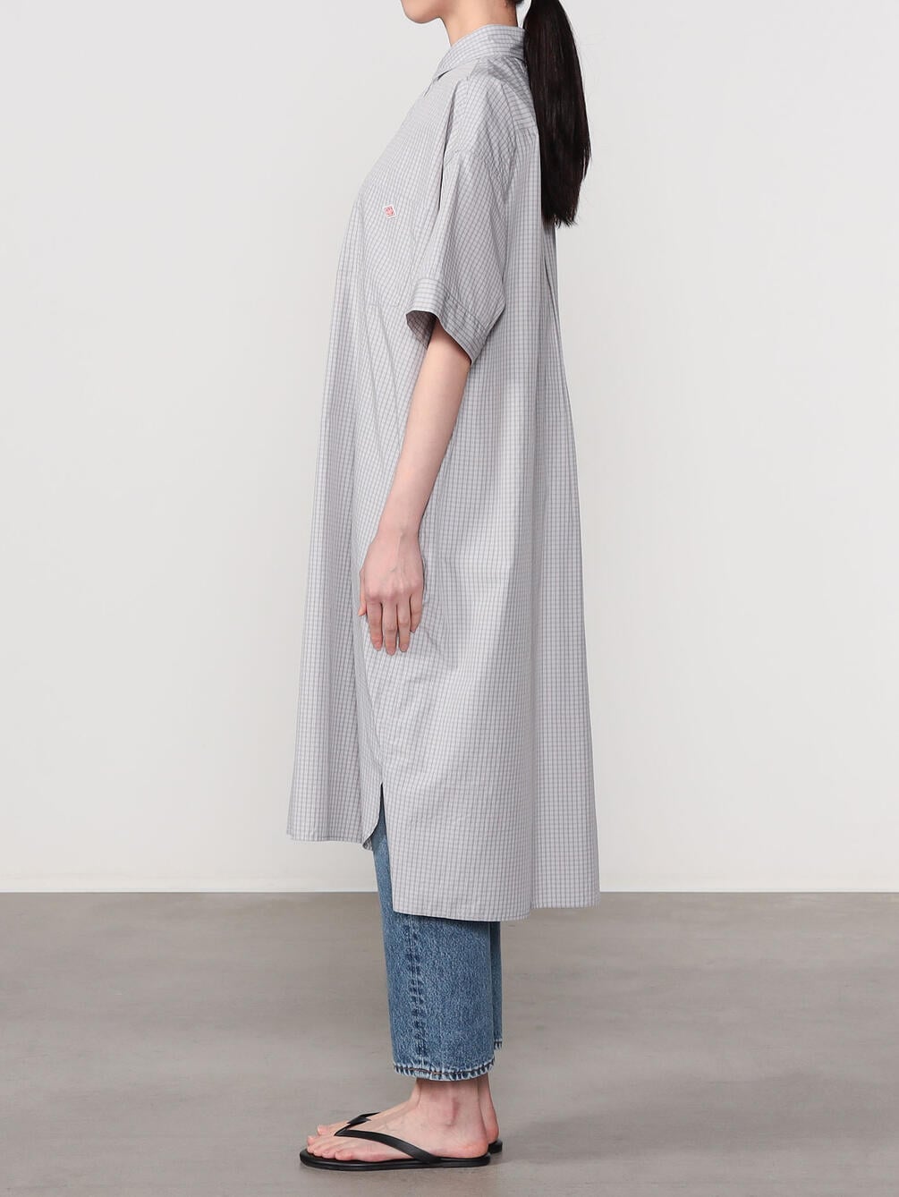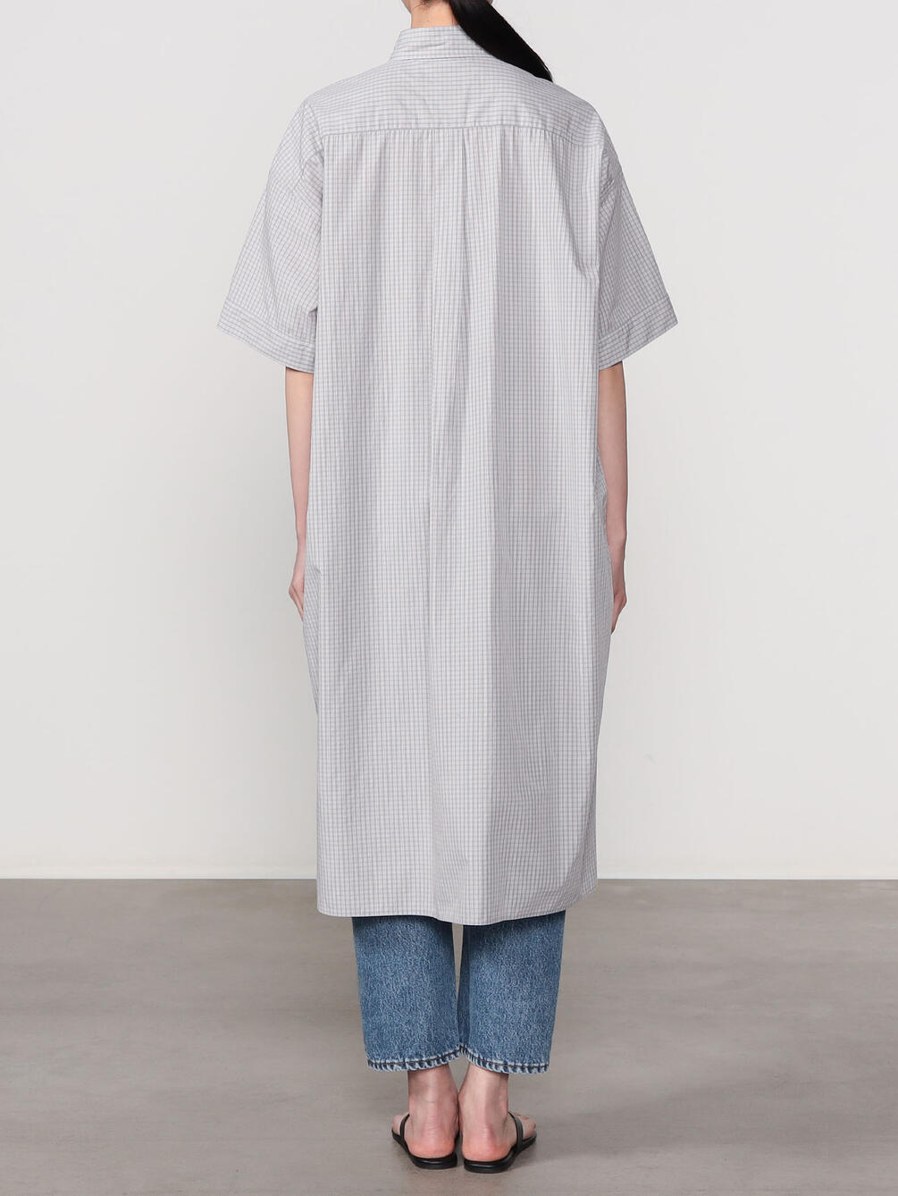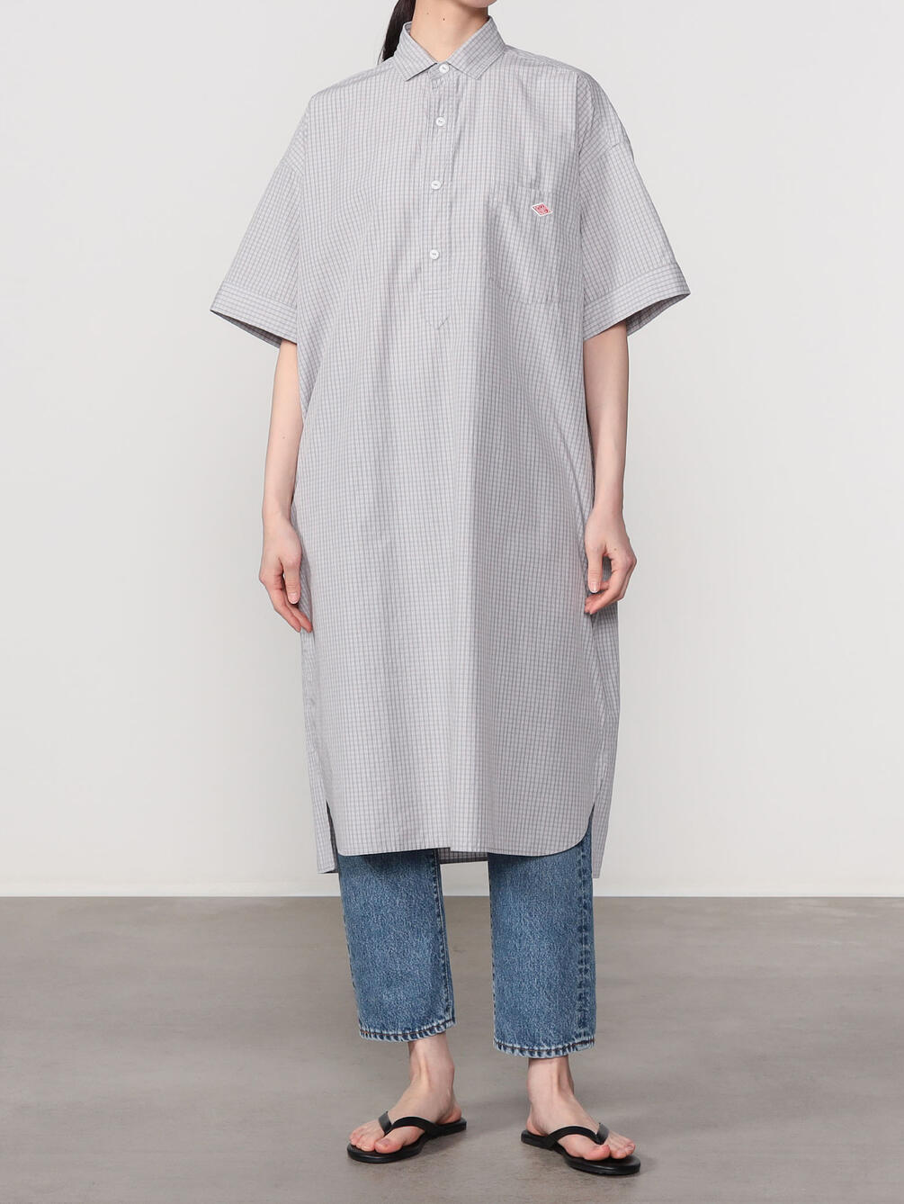 - プルオーバー型の半袖シャツワンピース