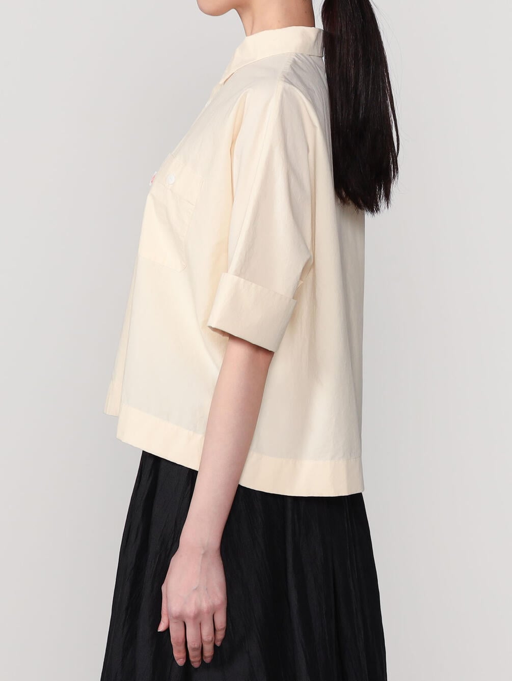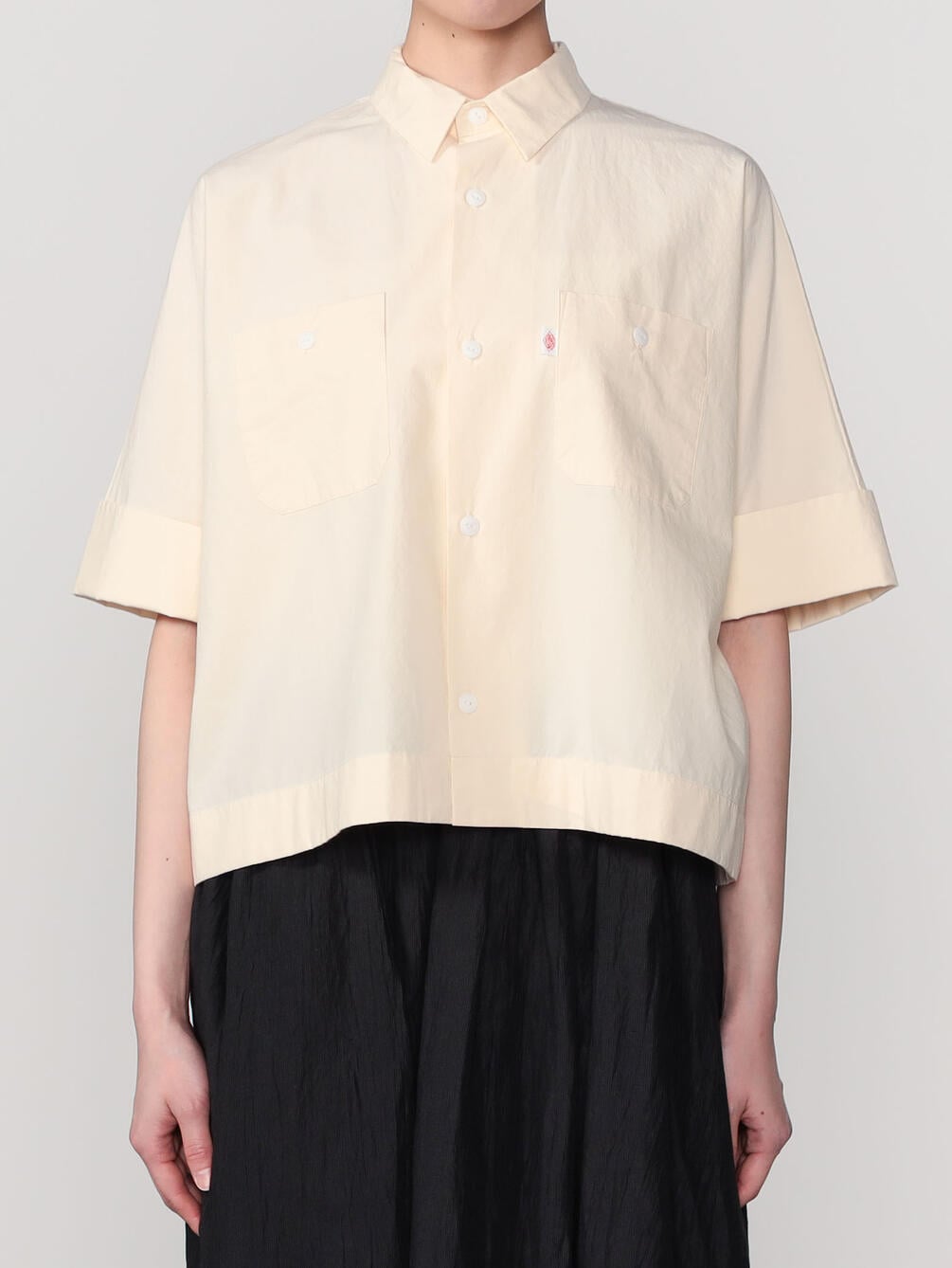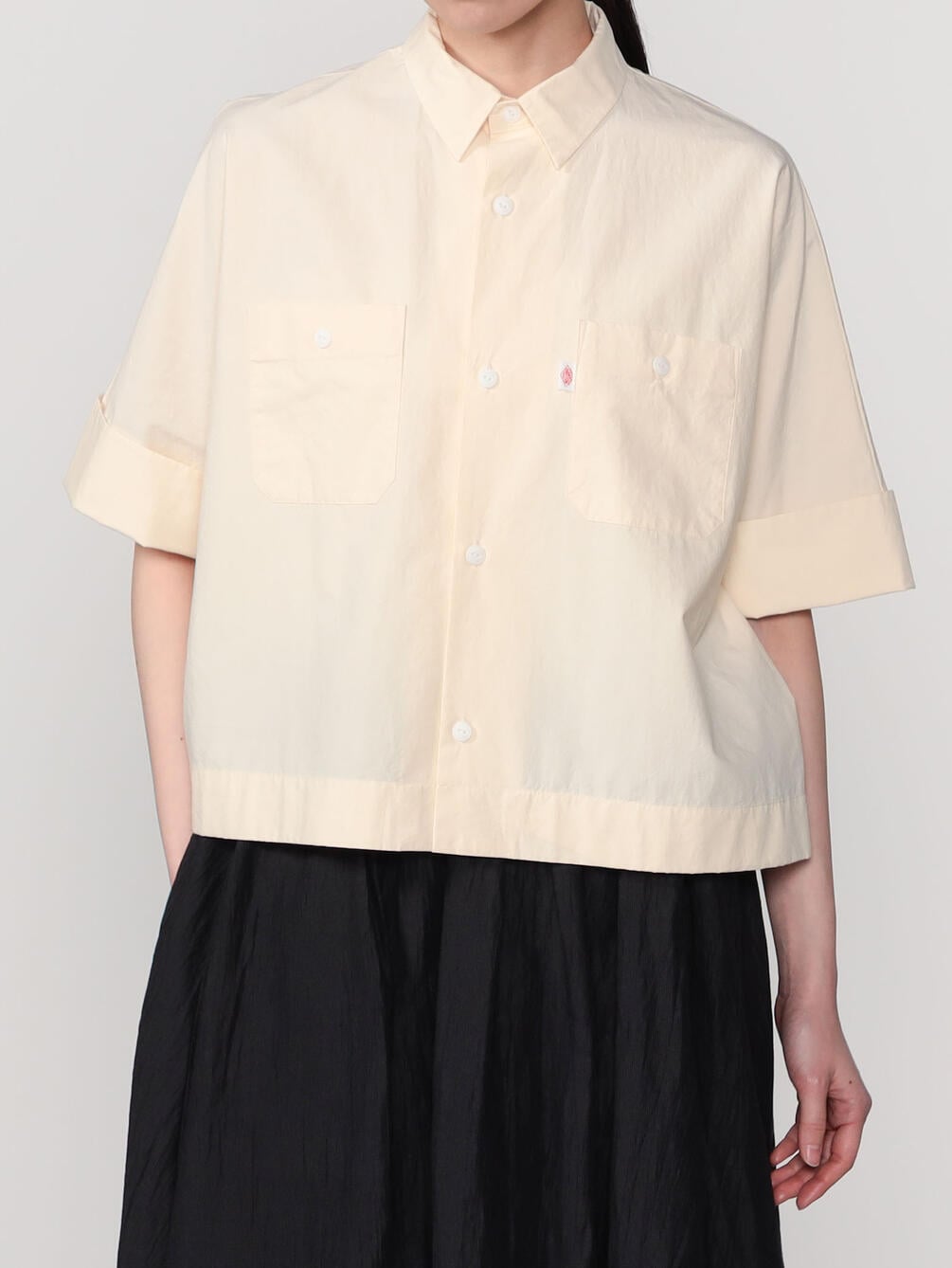 - ドルマンスリーブの半袖ワークシャツ