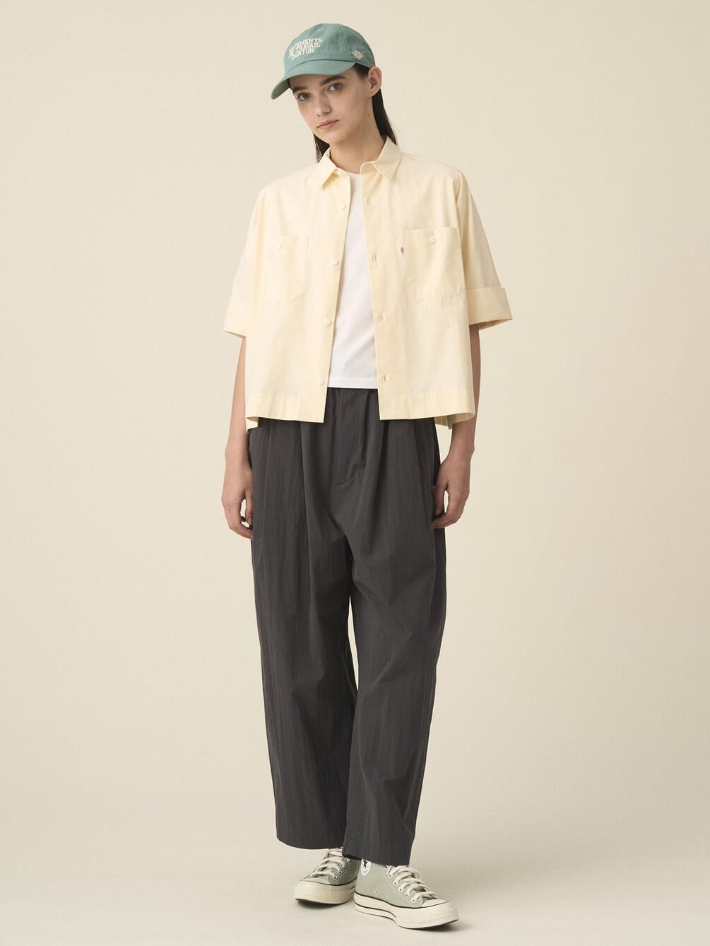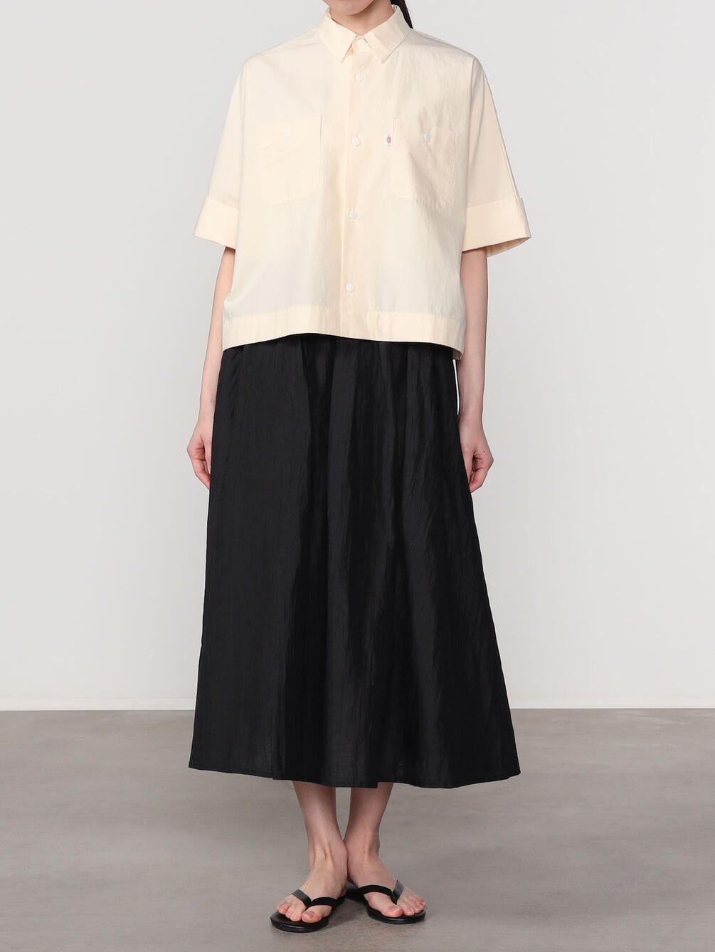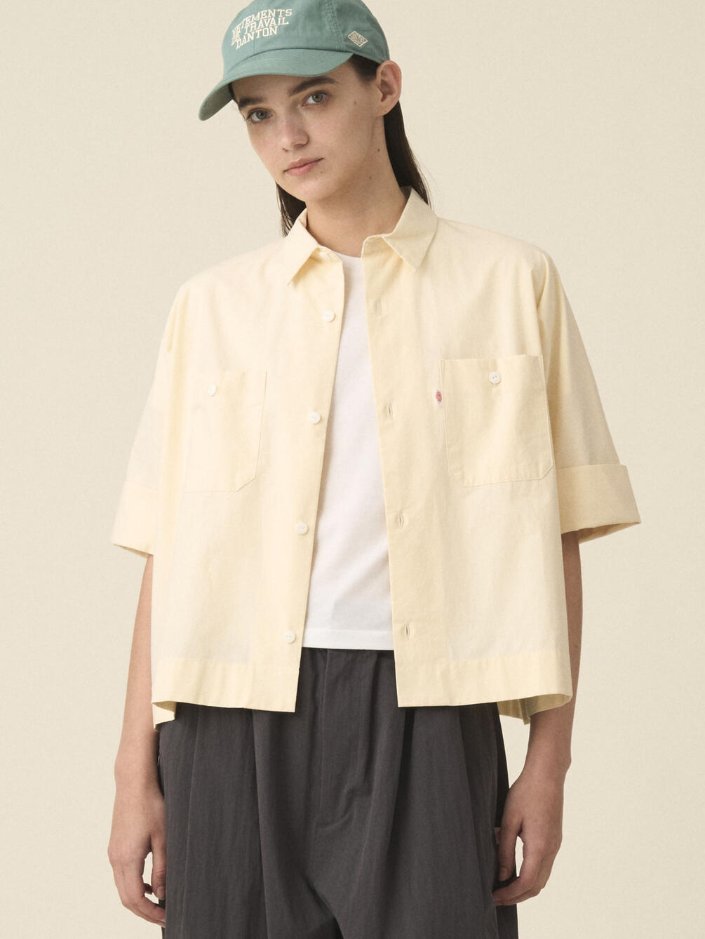 - ドルマンスリーブの半袖ワークシャツ