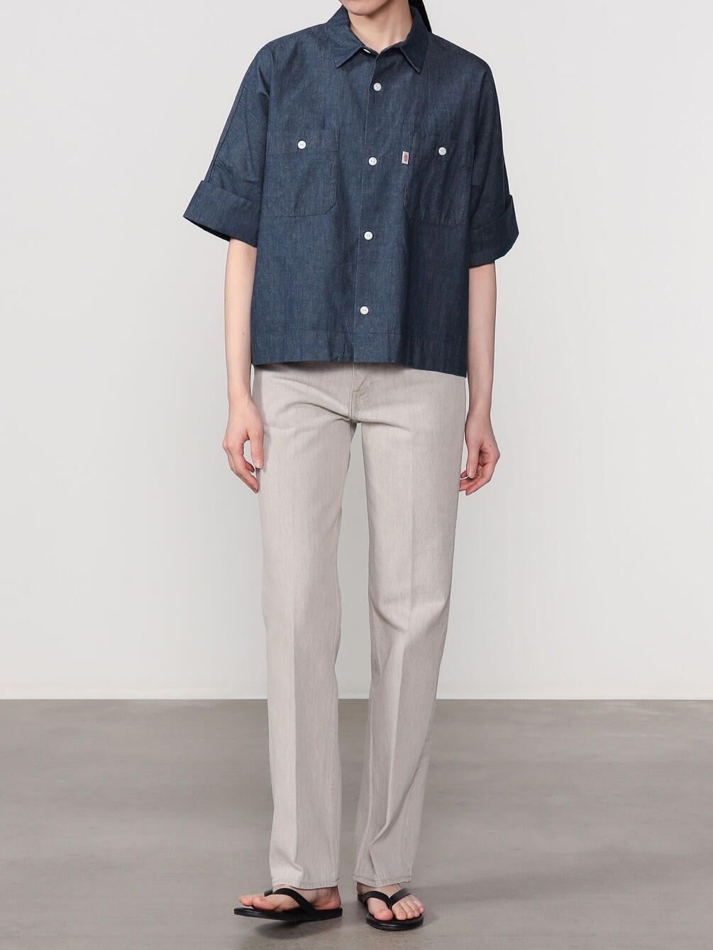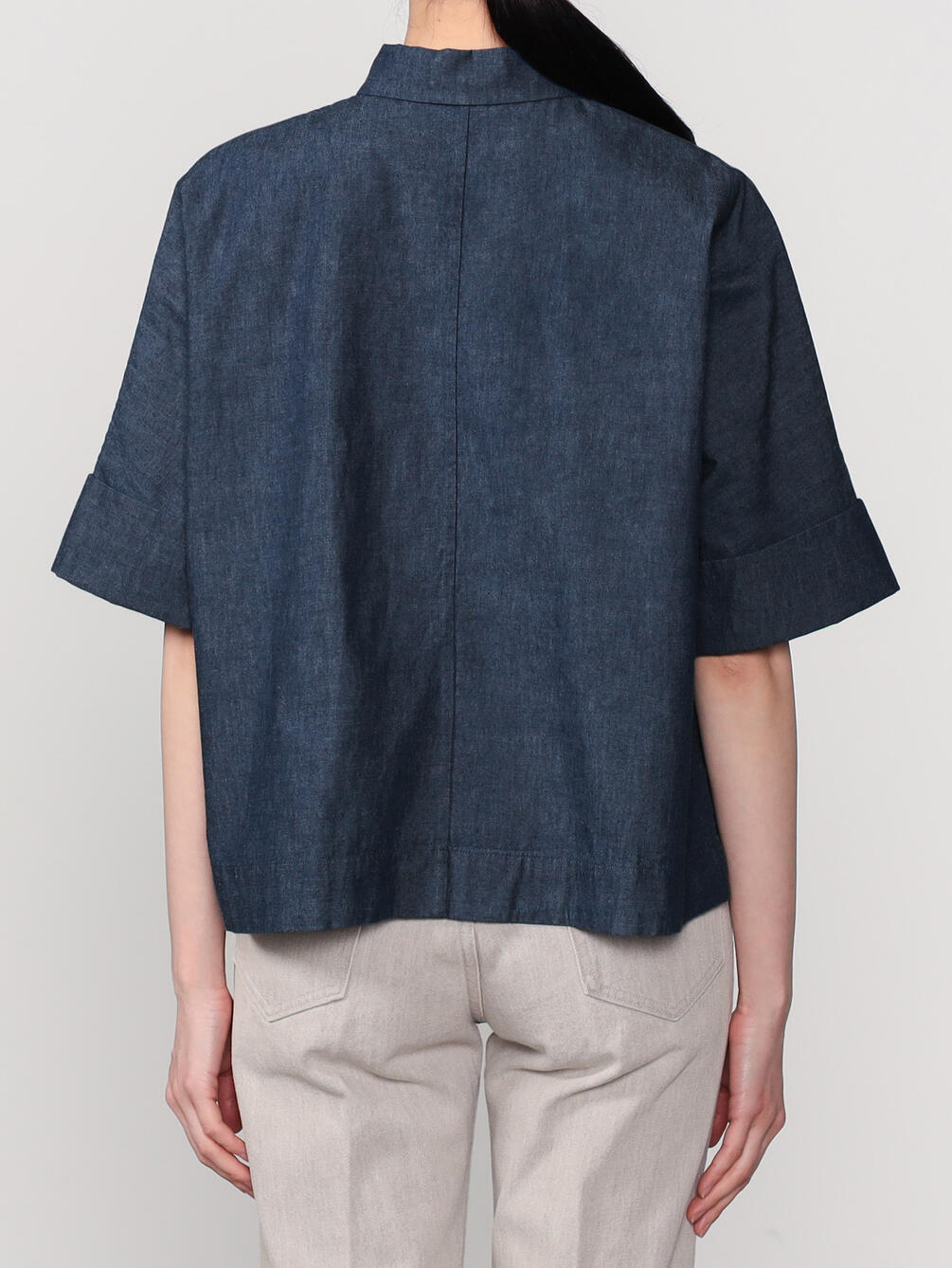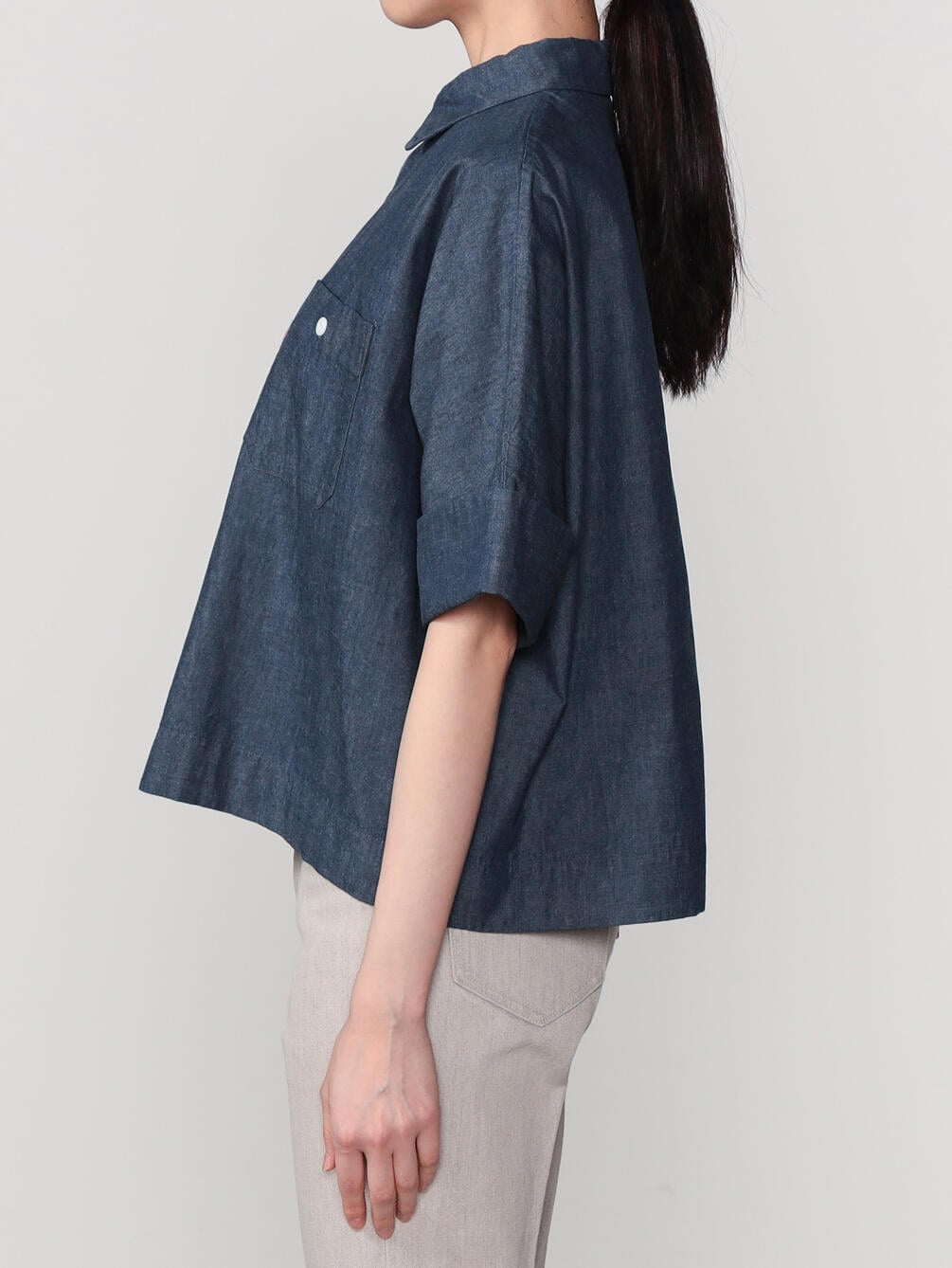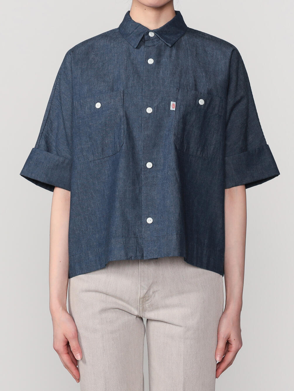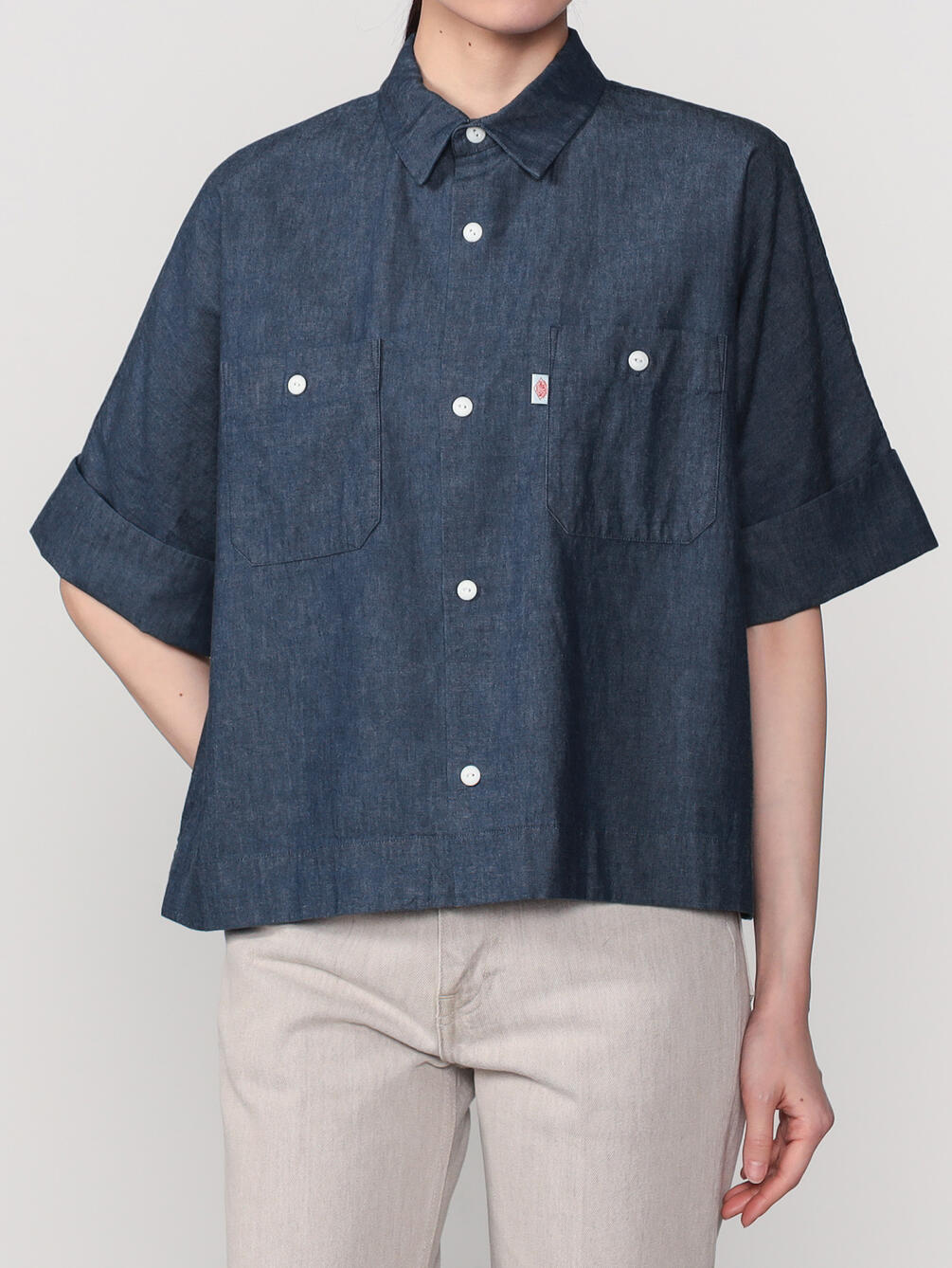 - ドルマンスリーブの半袖ワークシャツ