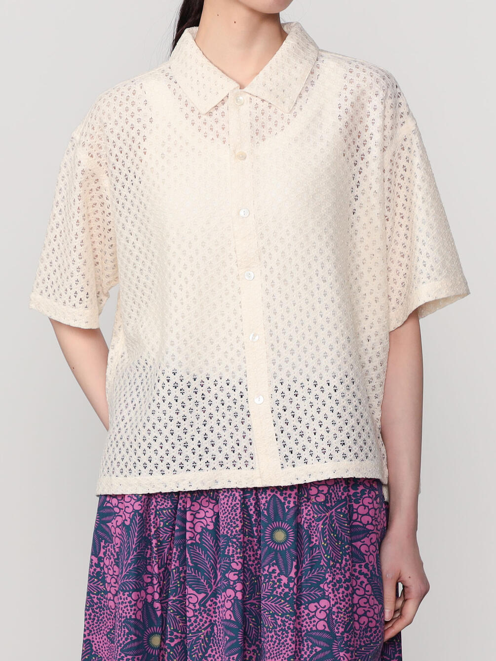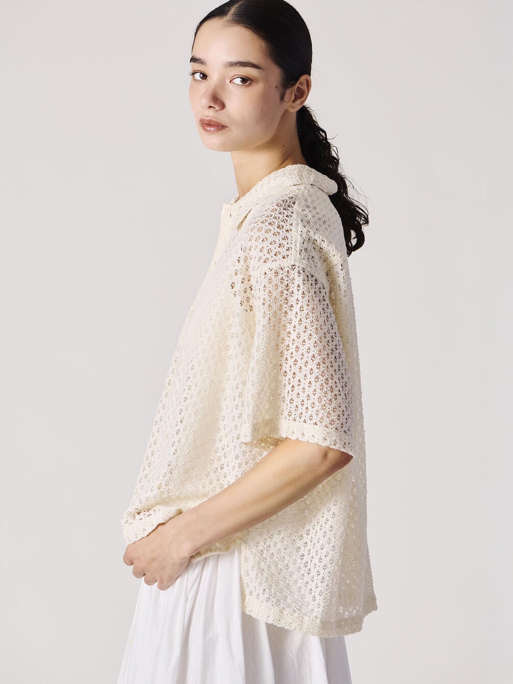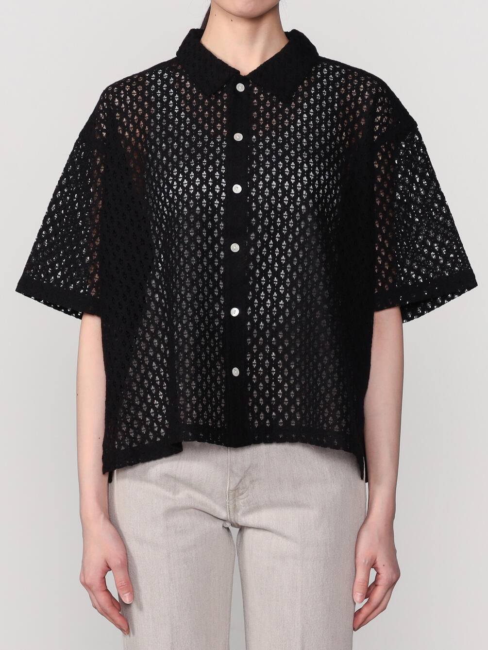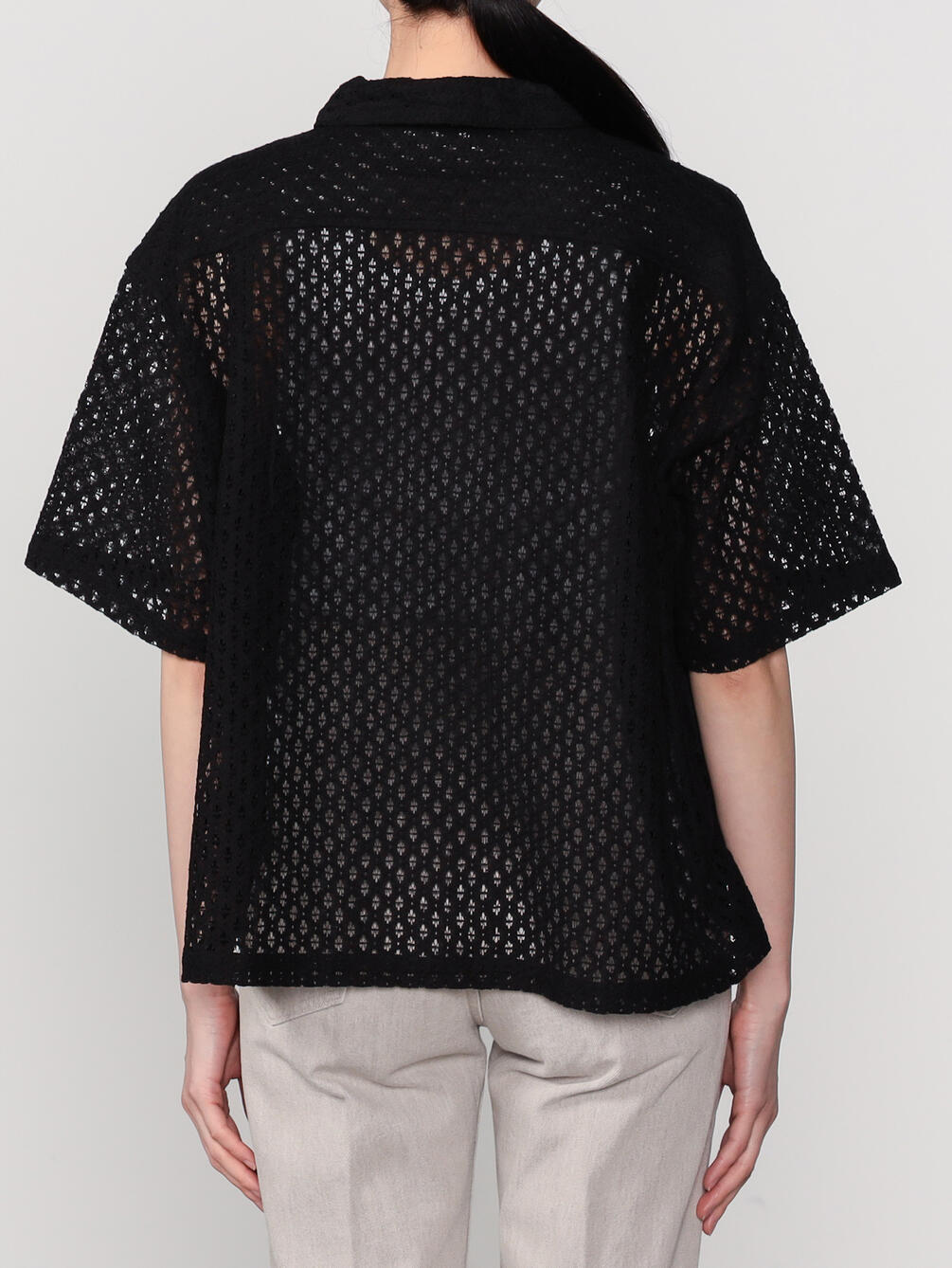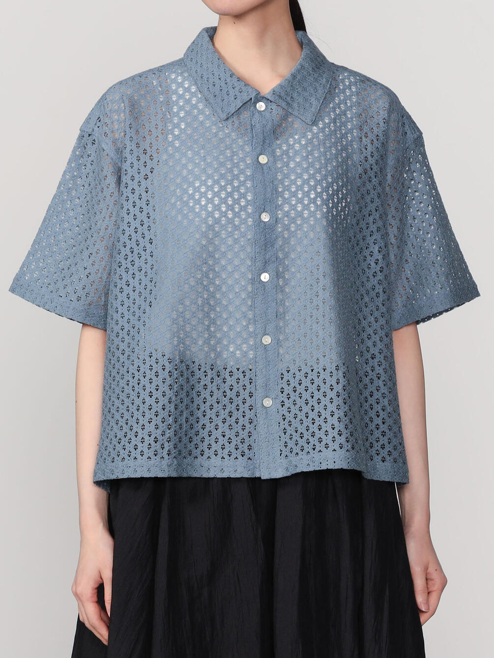 - 総レースの衿付き半袖シャツ