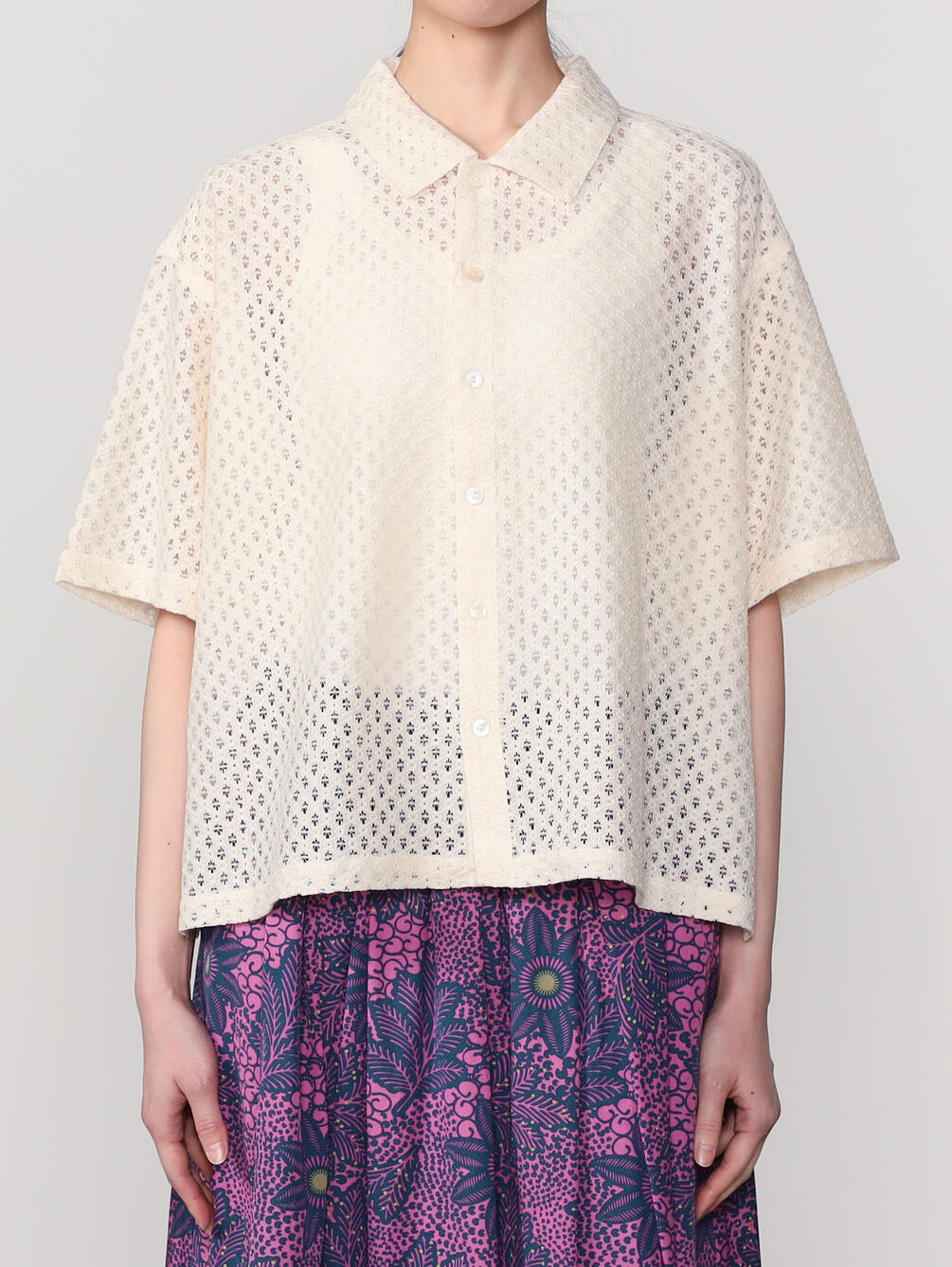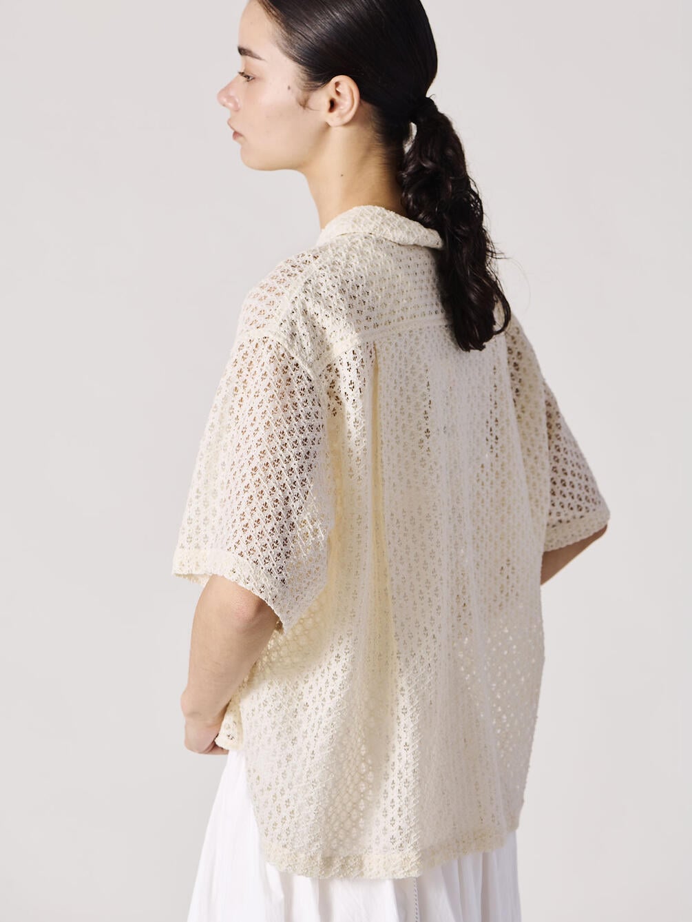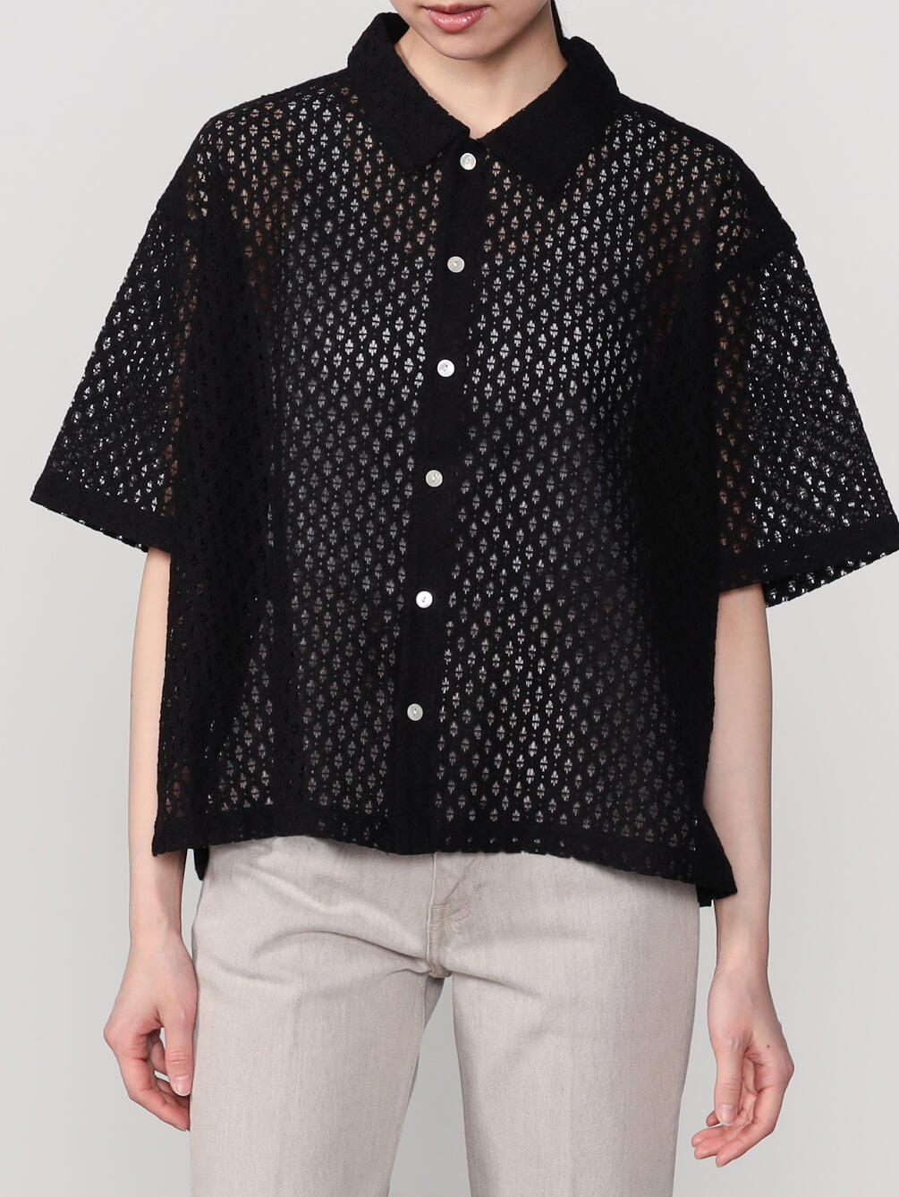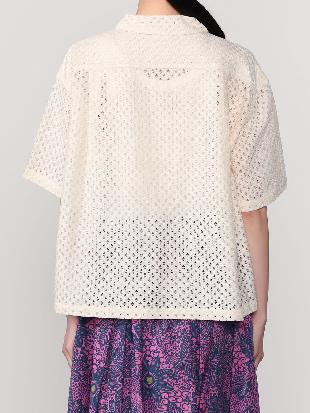 - 総レースの衿付き半袖シャツ