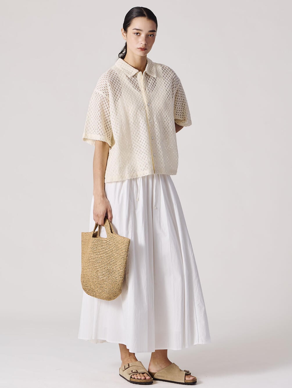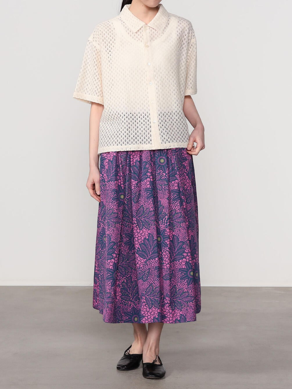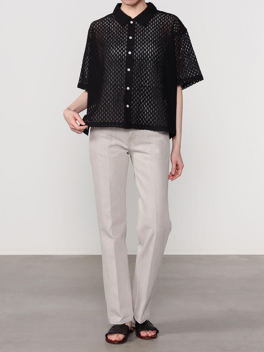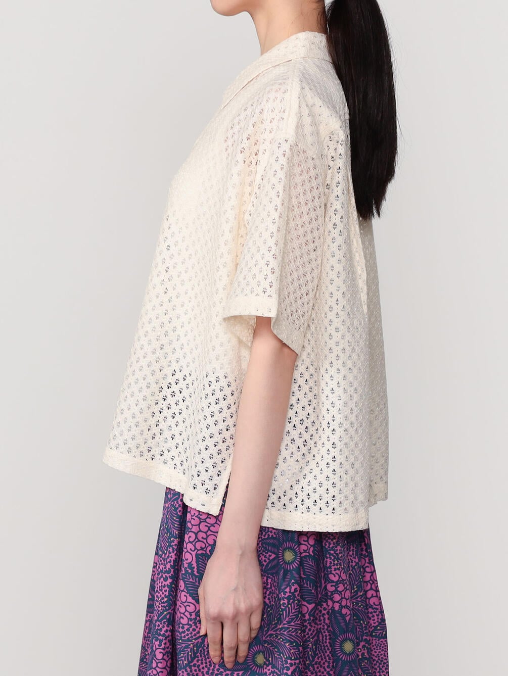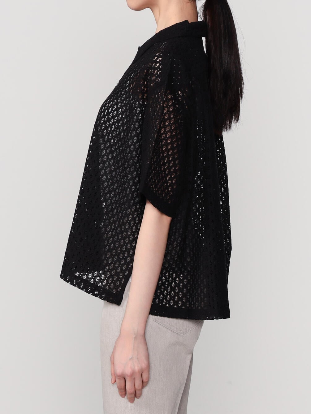- 総レースの衿付き半袖シャツ