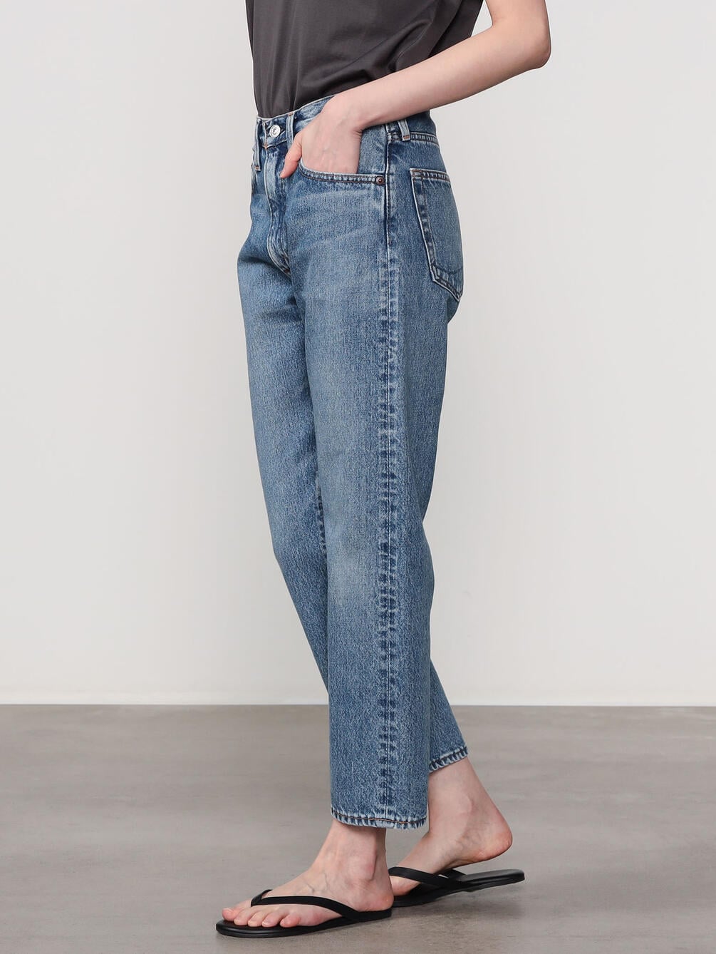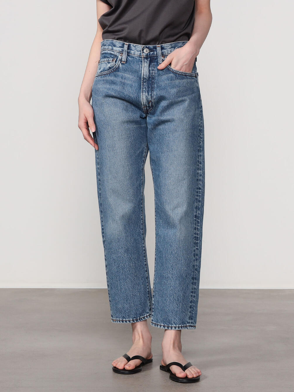 - ベーシックな5ポケットデニムパンツ