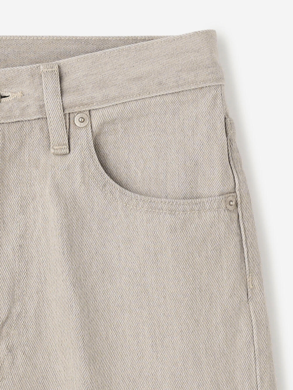 - 生デニムのようなカリッとした風合いを追求したオリジナルのデニム地