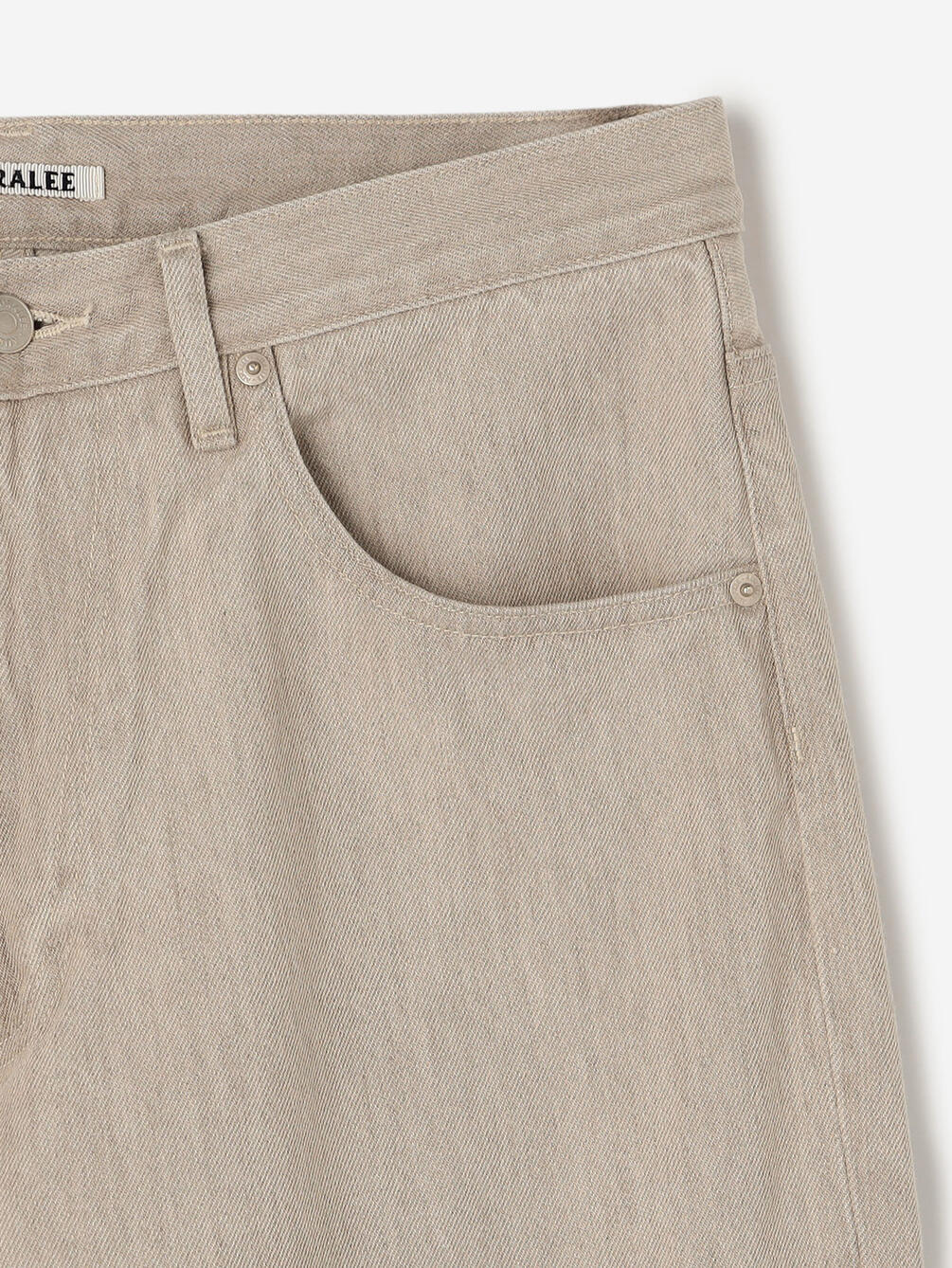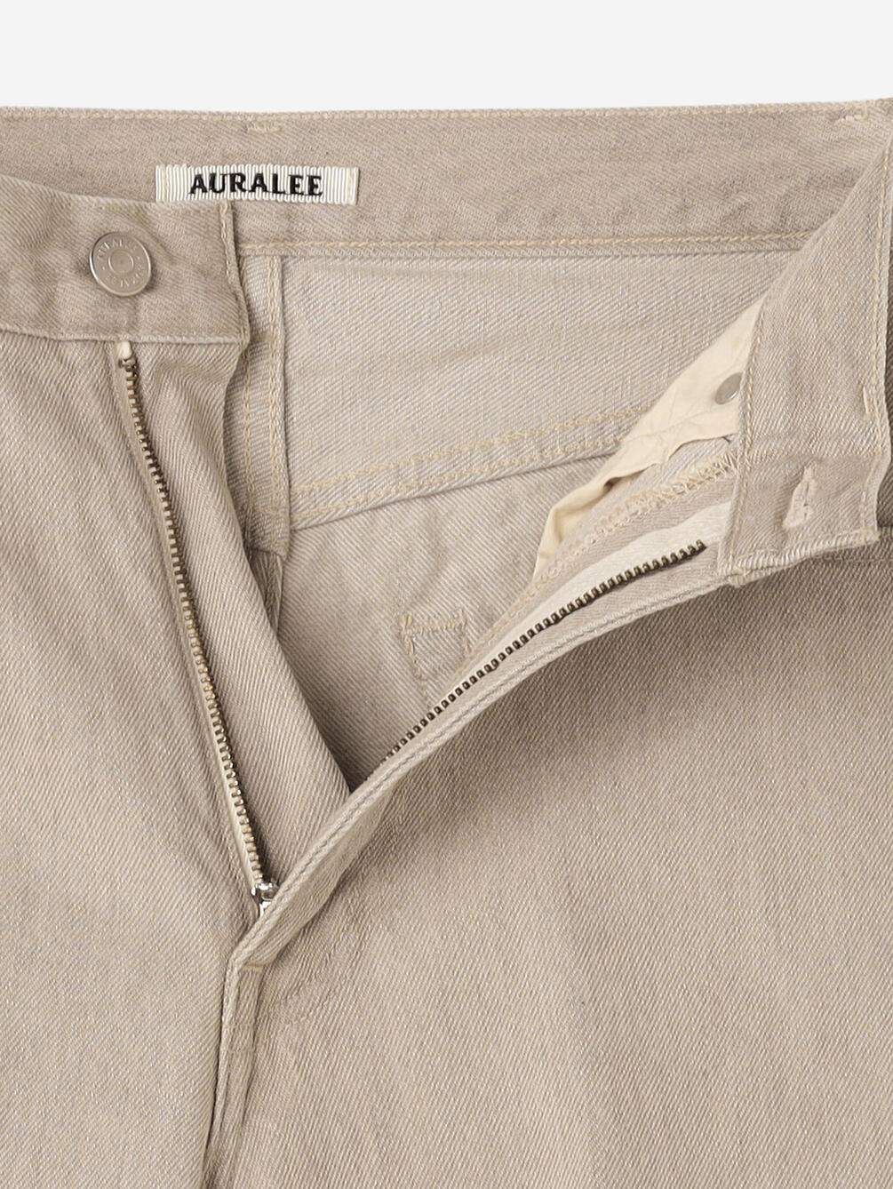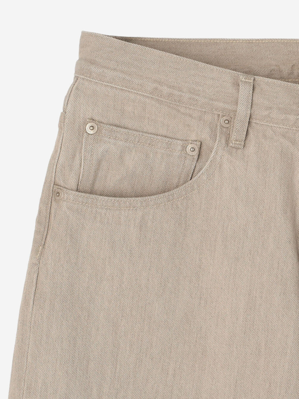 - 生デニムのようなカリッとした風合いを追求したオリジナルのデニム地