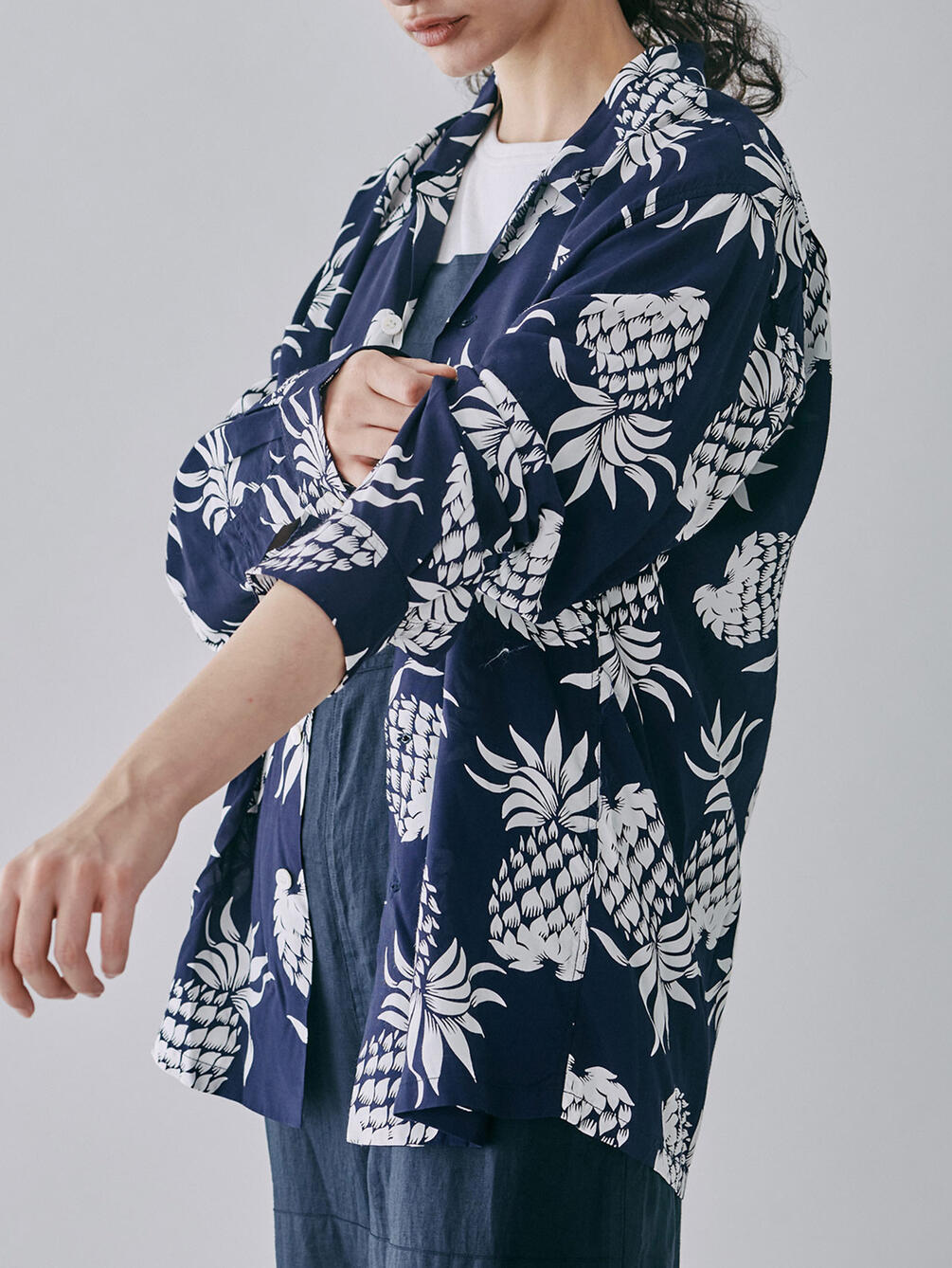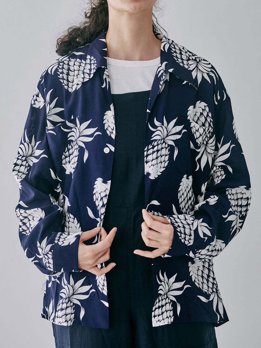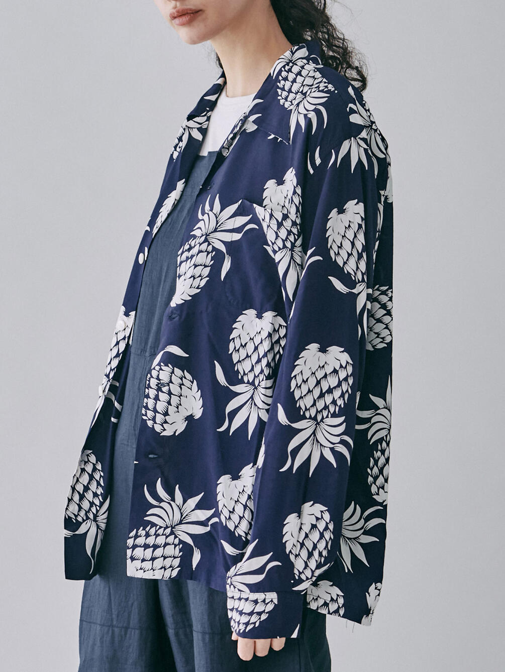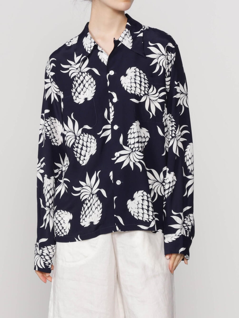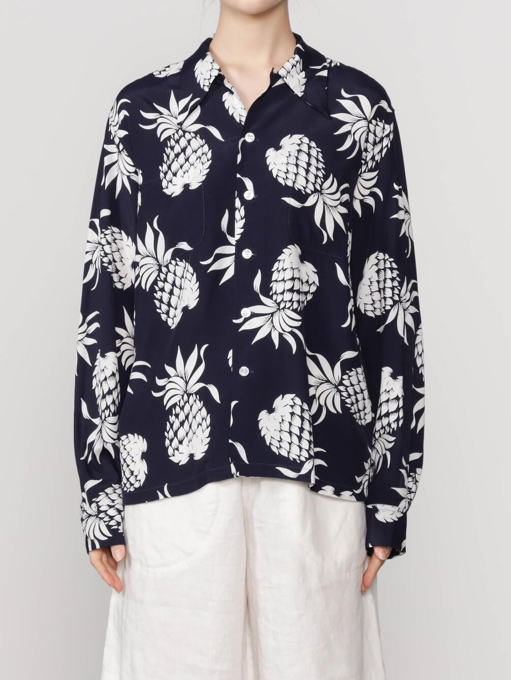 - ブランド定番パイナップル柄の長袖アロハシャツ