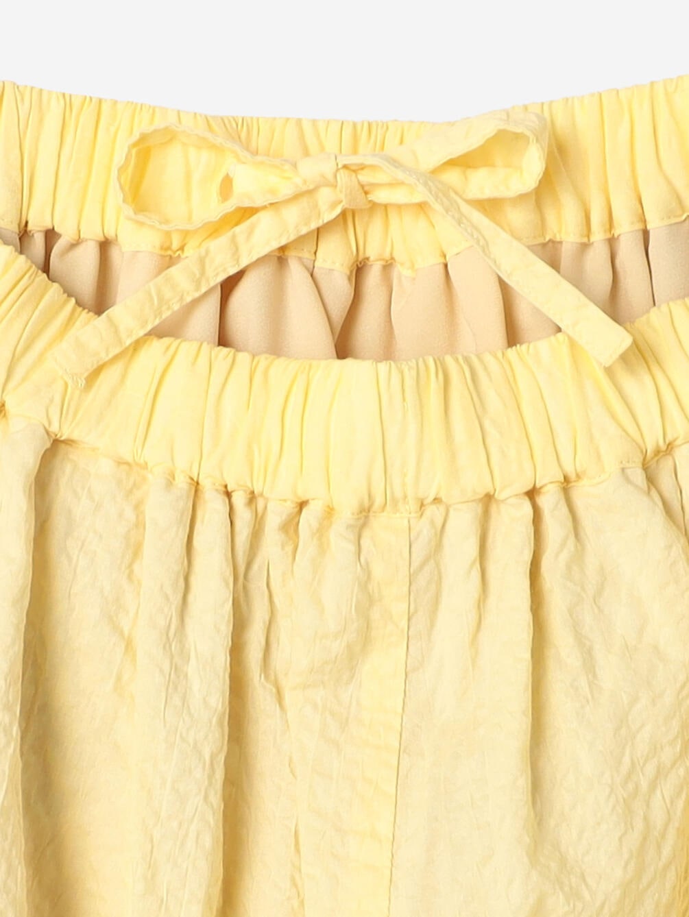 - ゴムウエストにドローコードを通したイージー仕様