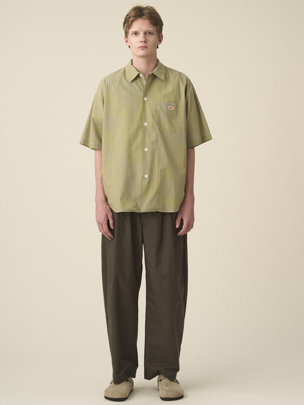 - ワイドシルエットの半袖ワークシャツ
