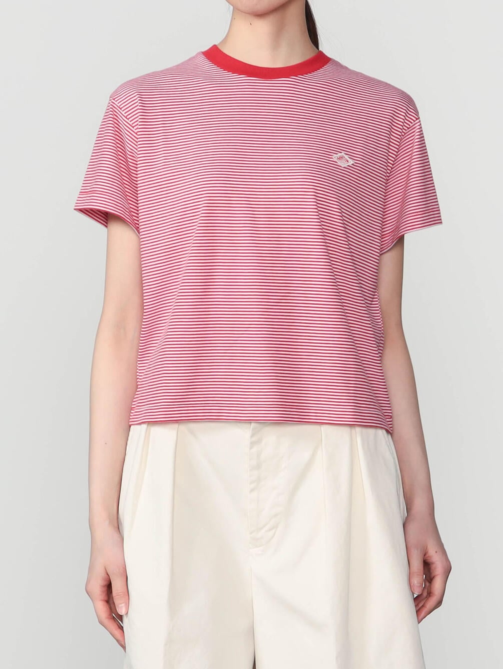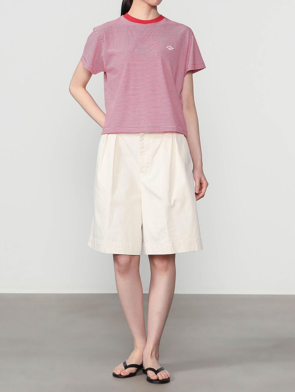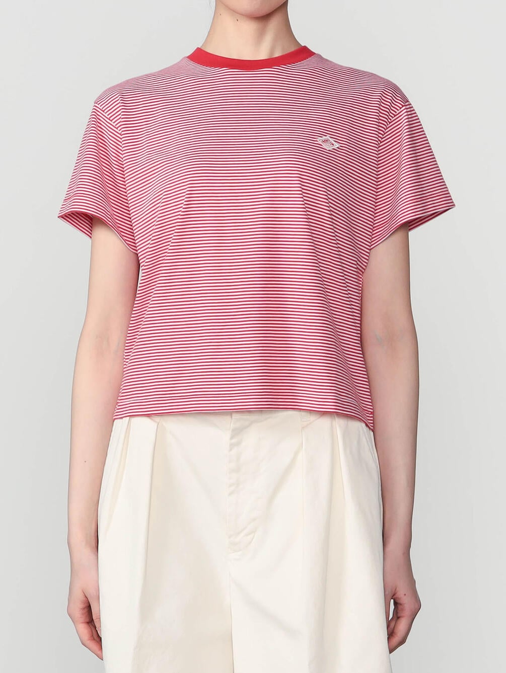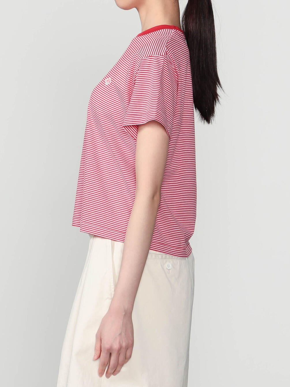 - ショート丈の半袖Tシャツ